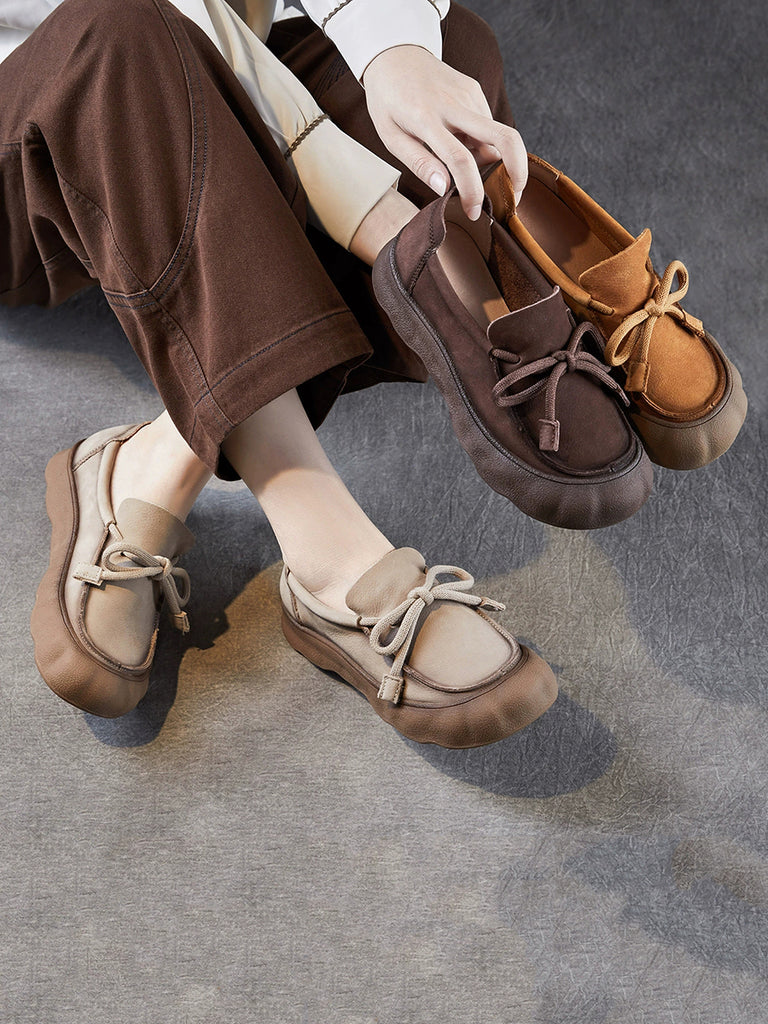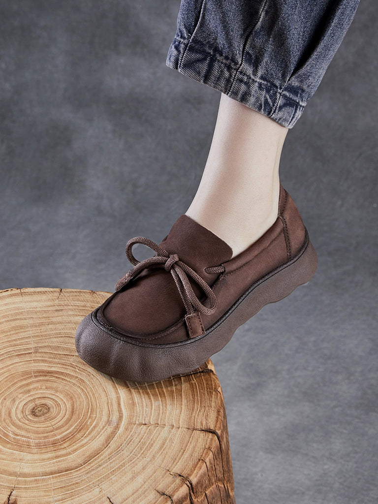 Zapatos planos vintage con correa de cuero genuino para mujer