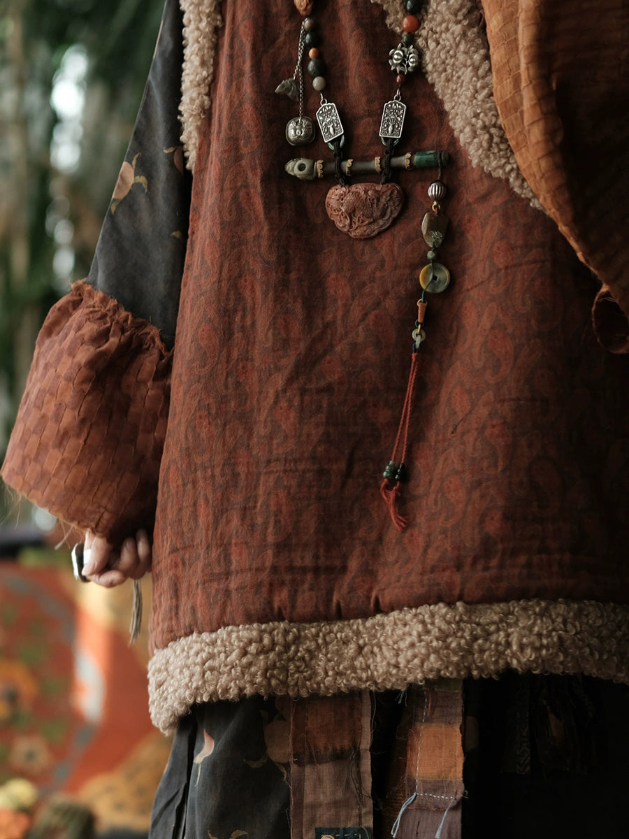 Este producto presenta un cuello en V y un diseño vintage, perfecto para invierno y otoño. Está hecho de algodón, con estampado floral y un cómodo forro polar.