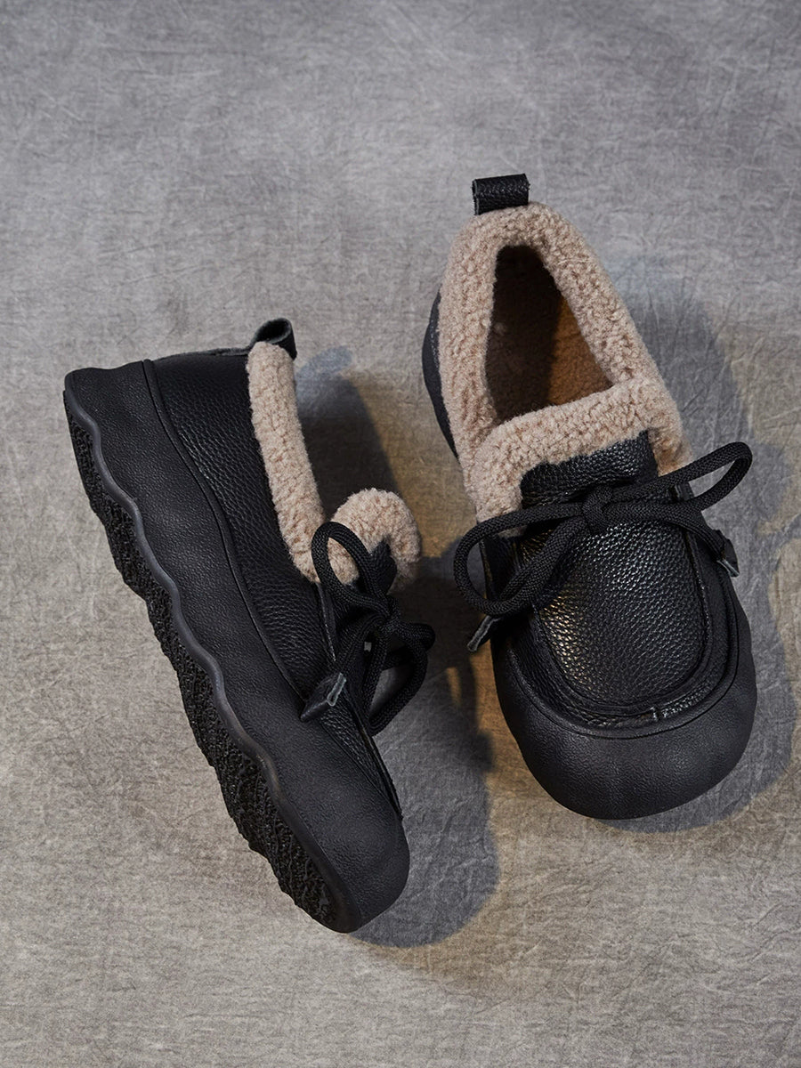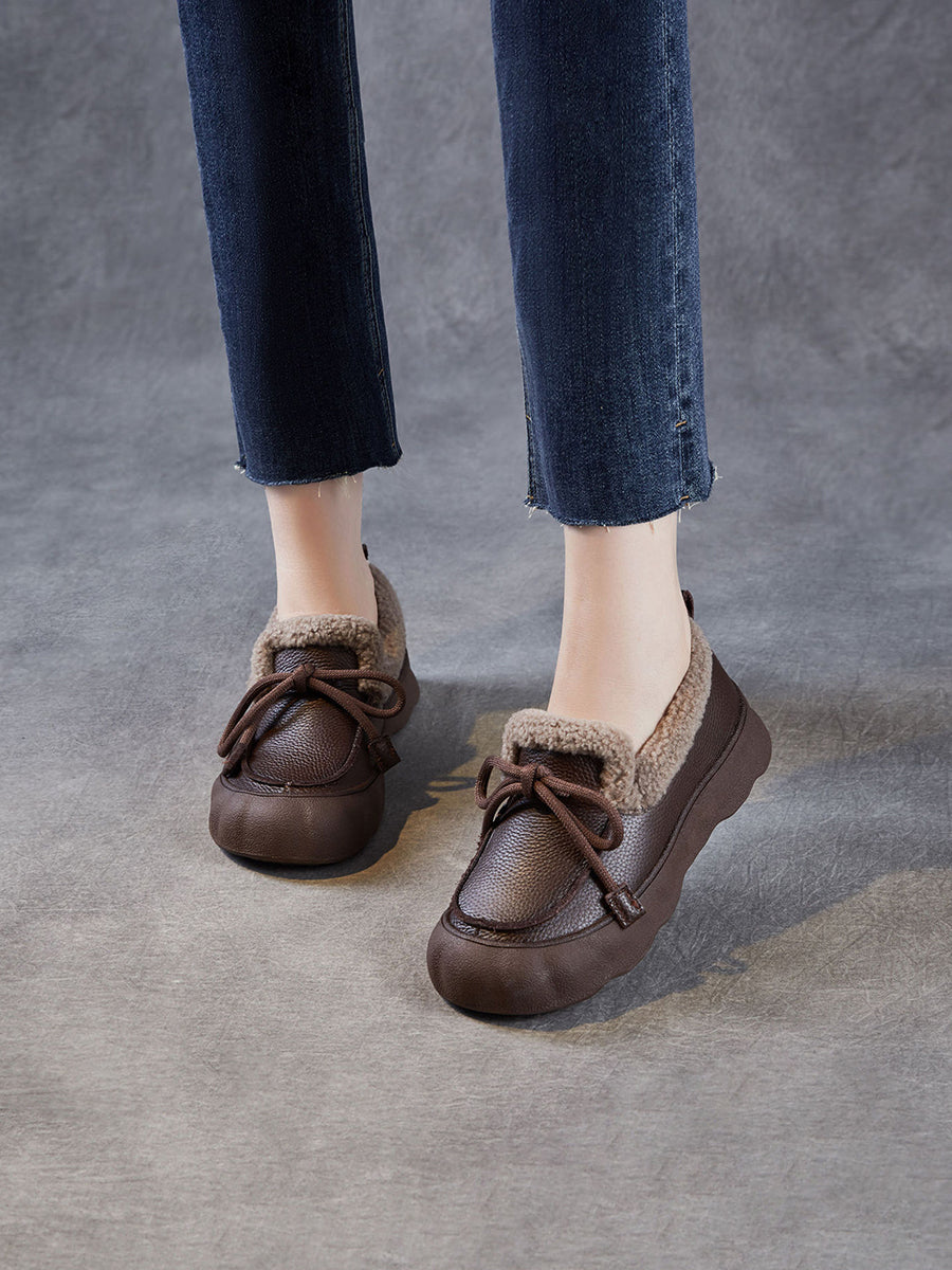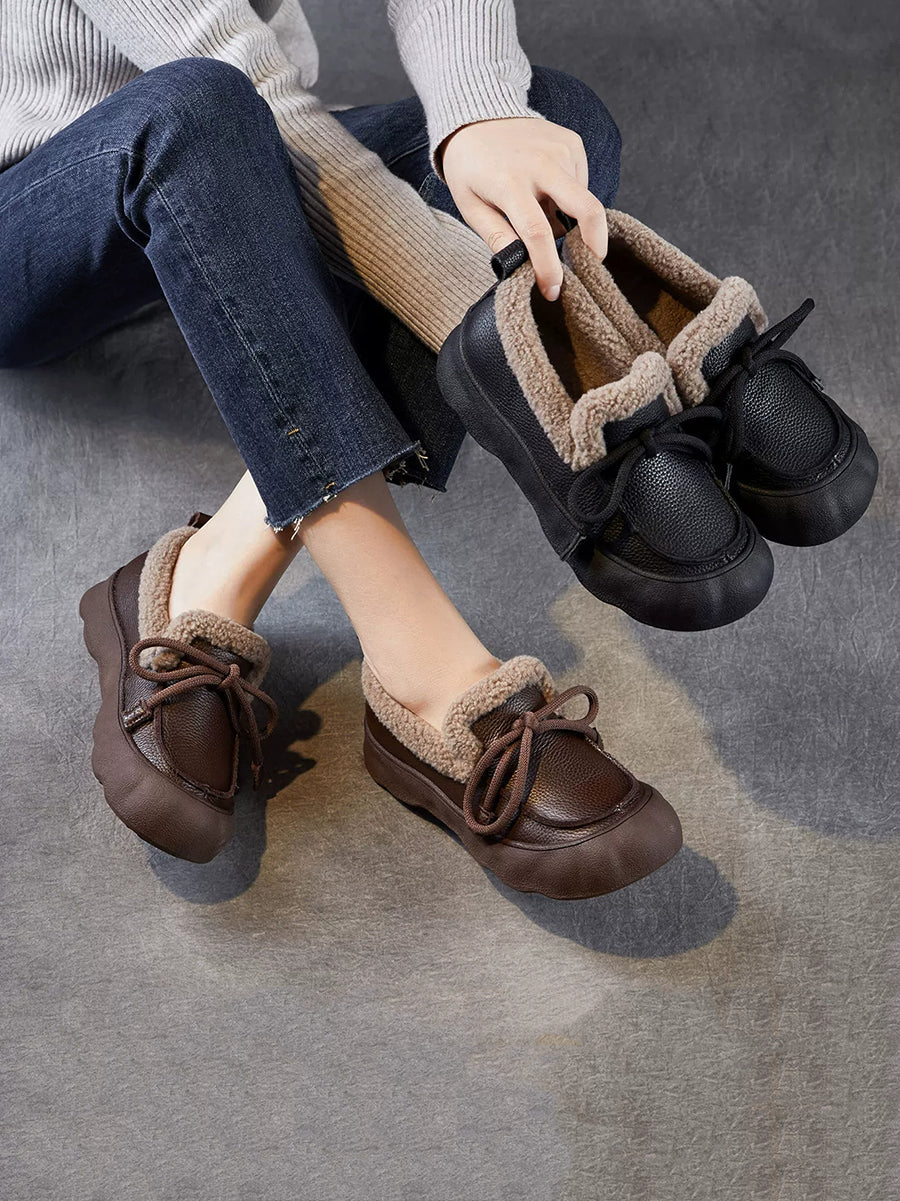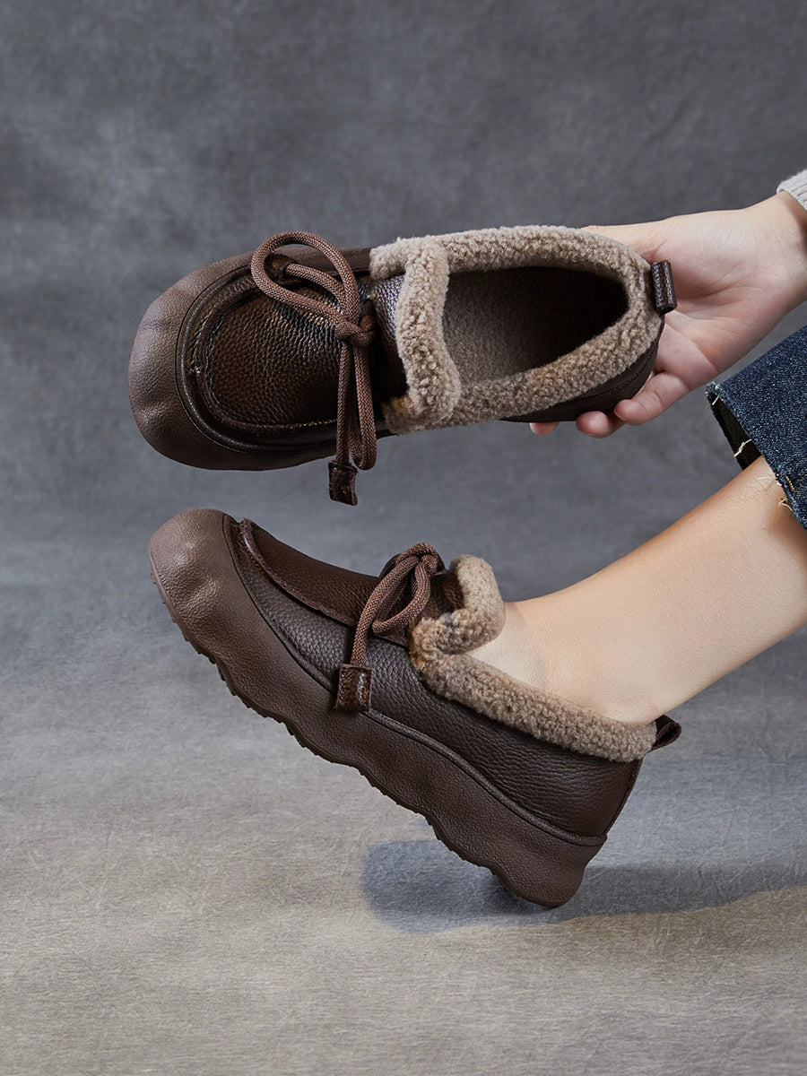 Zapatos vintage de piel con forro polar para mujer para invierno