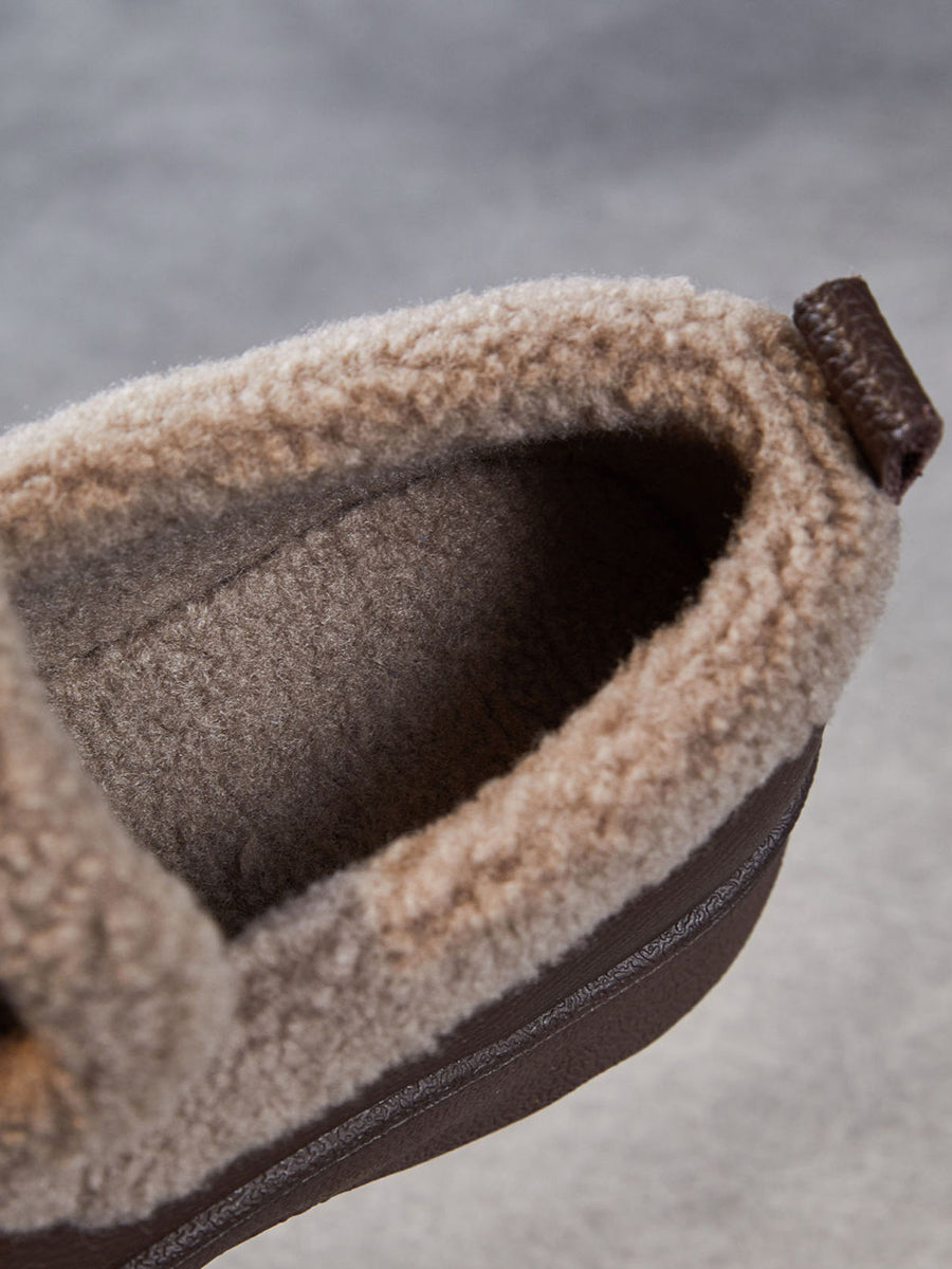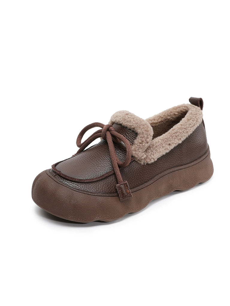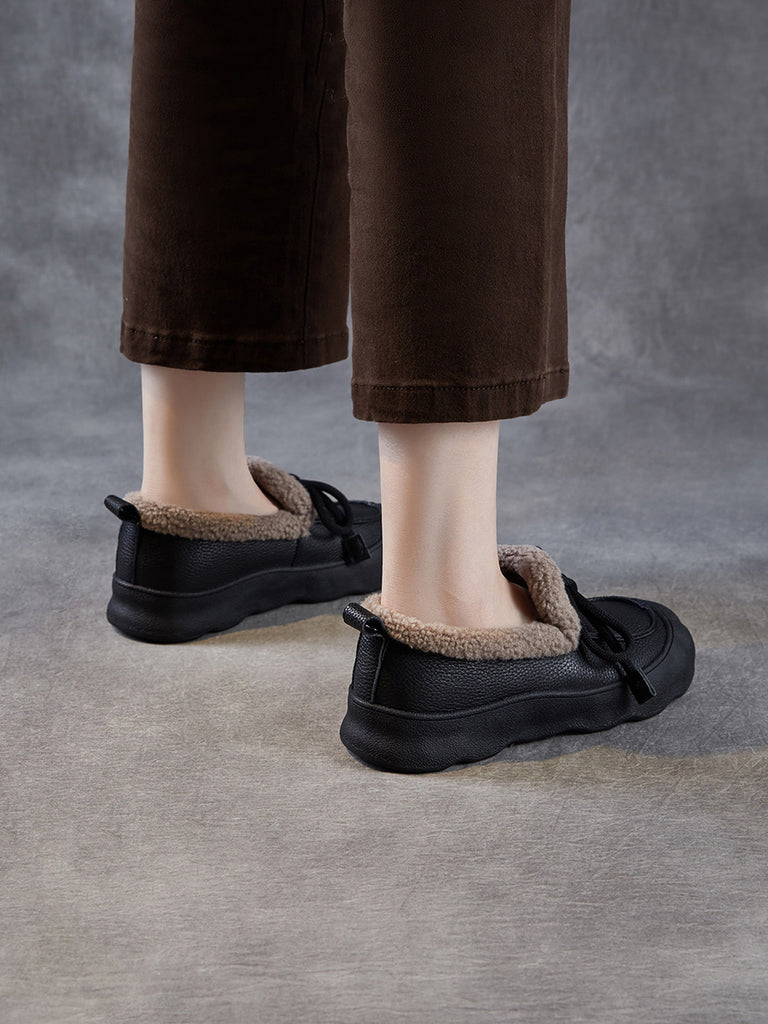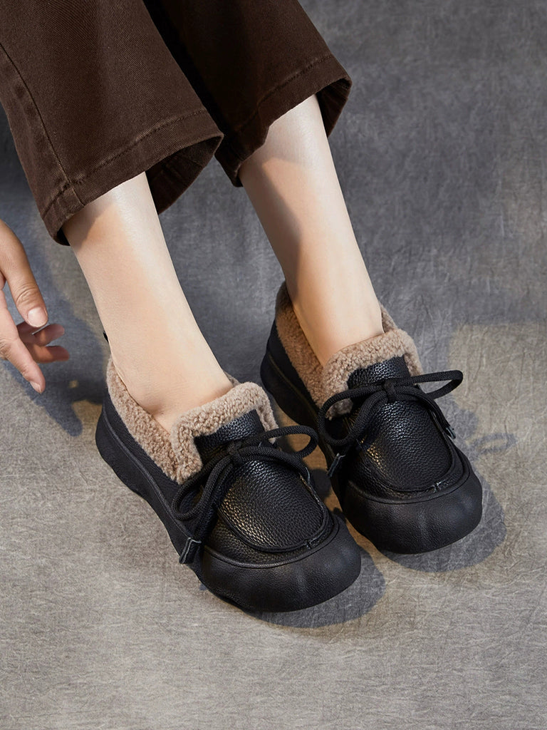 Zapatos vintage de piel con forro polar para mujer para invierno
