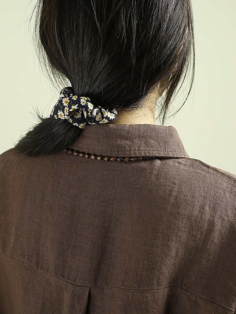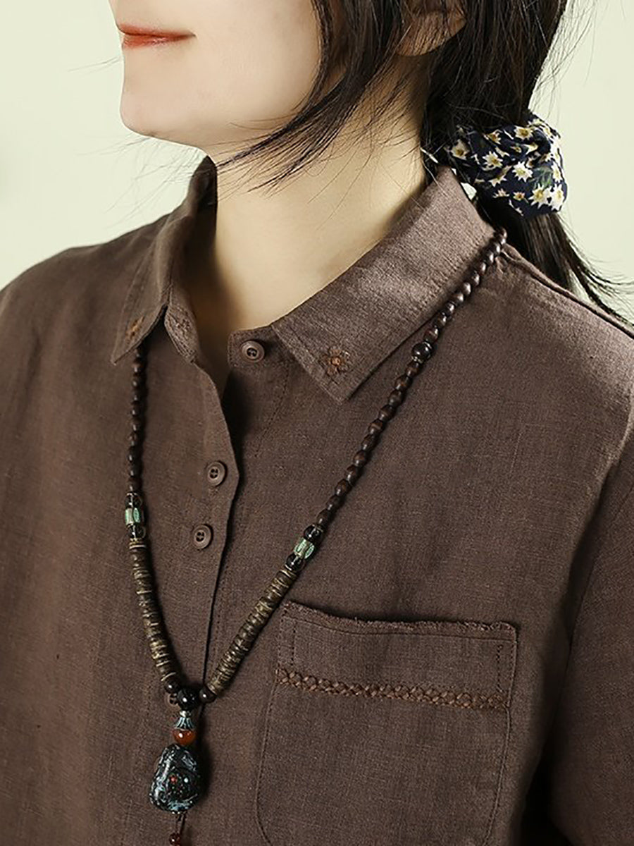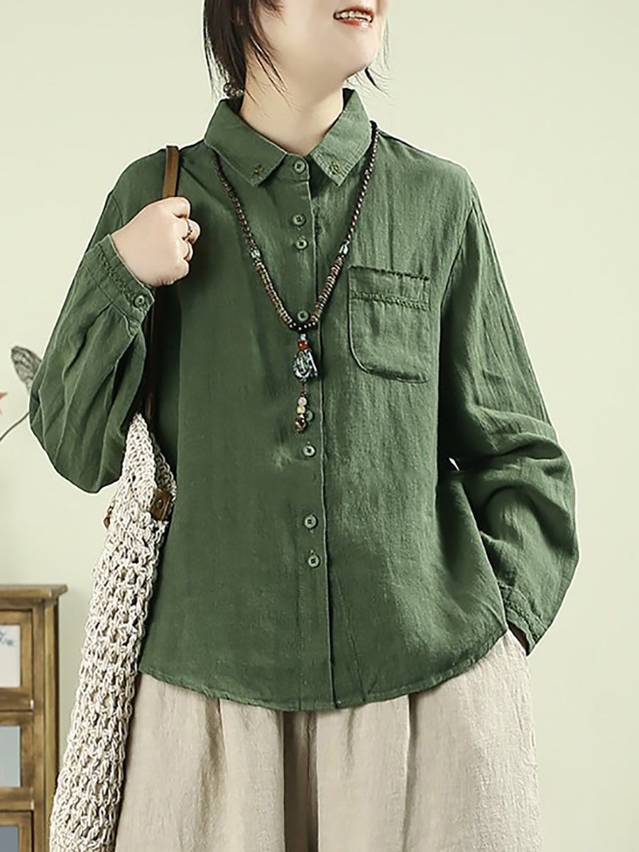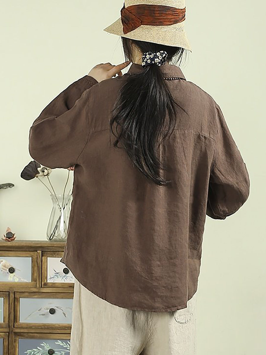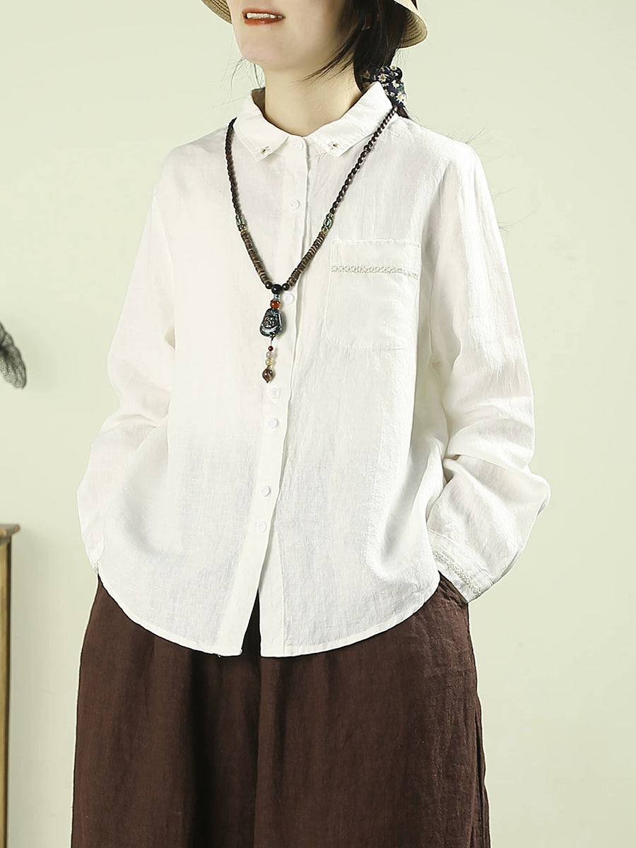 Camisa de mujer Artsy Spring de lino 100 % con cuello vuelto y color puro