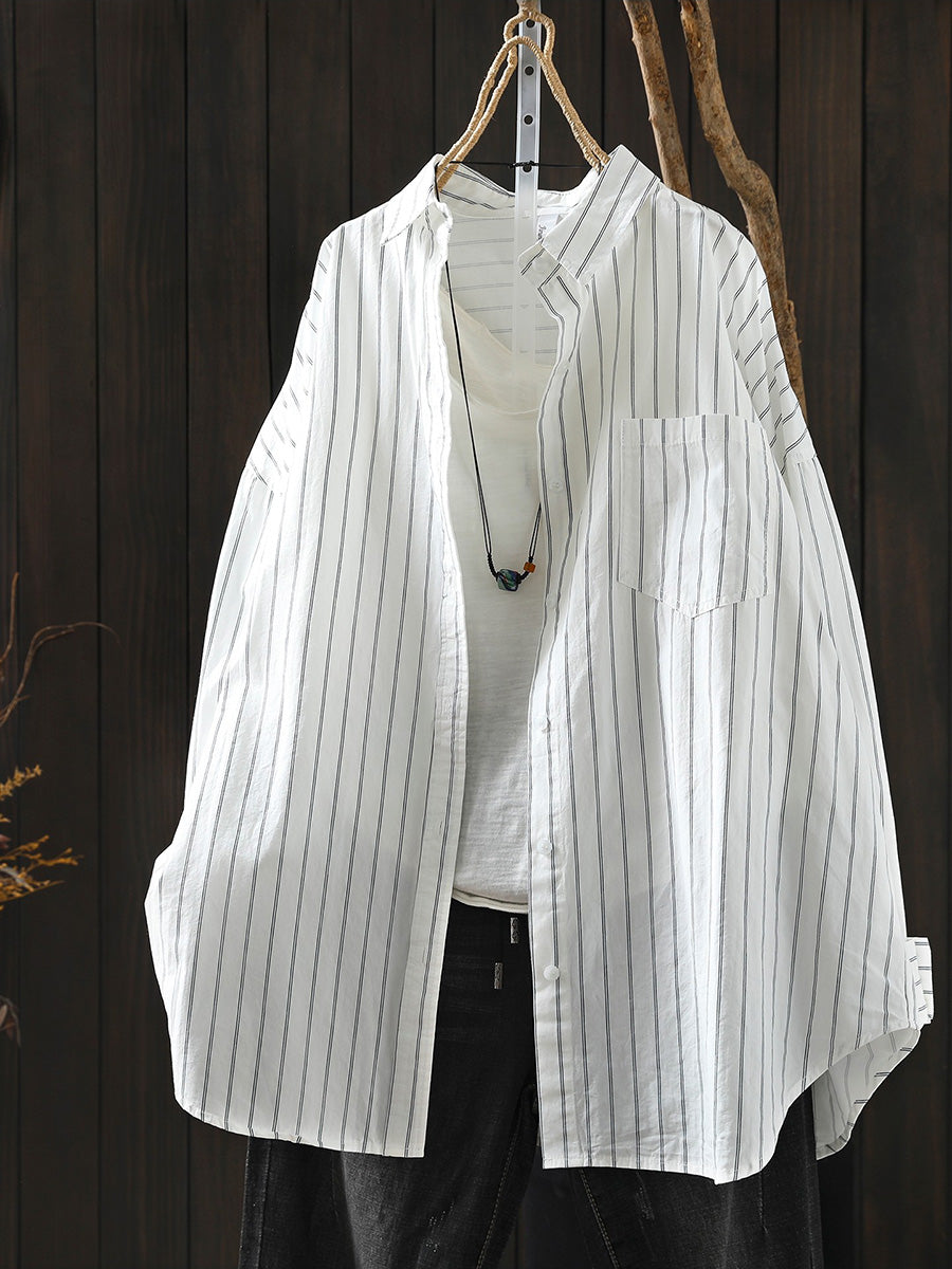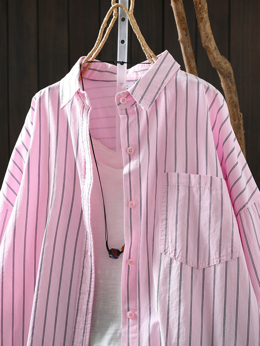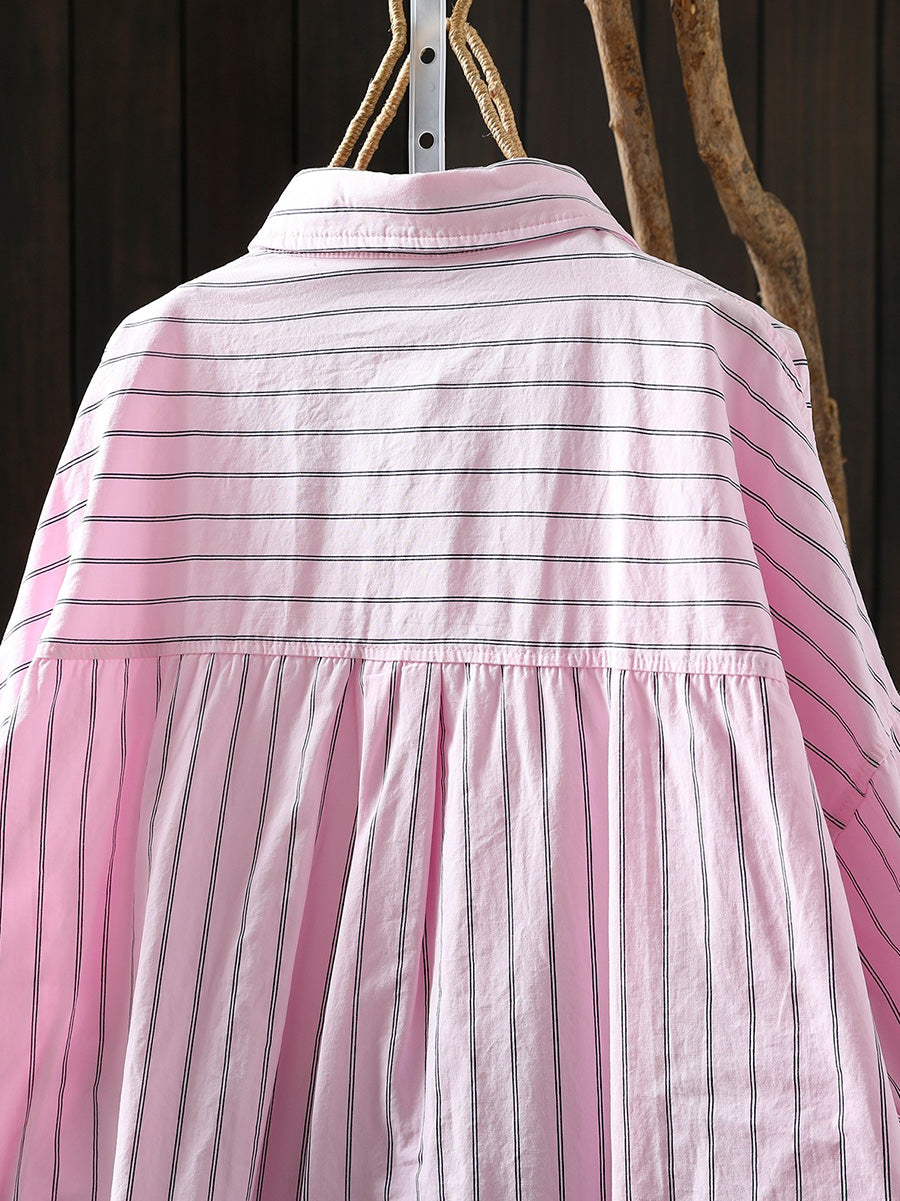 Camisa de cuello vuelto 100 % algodón con rayas Artsy Spring para mujer