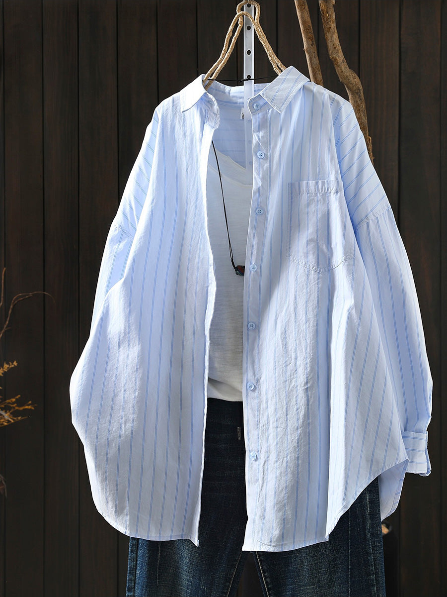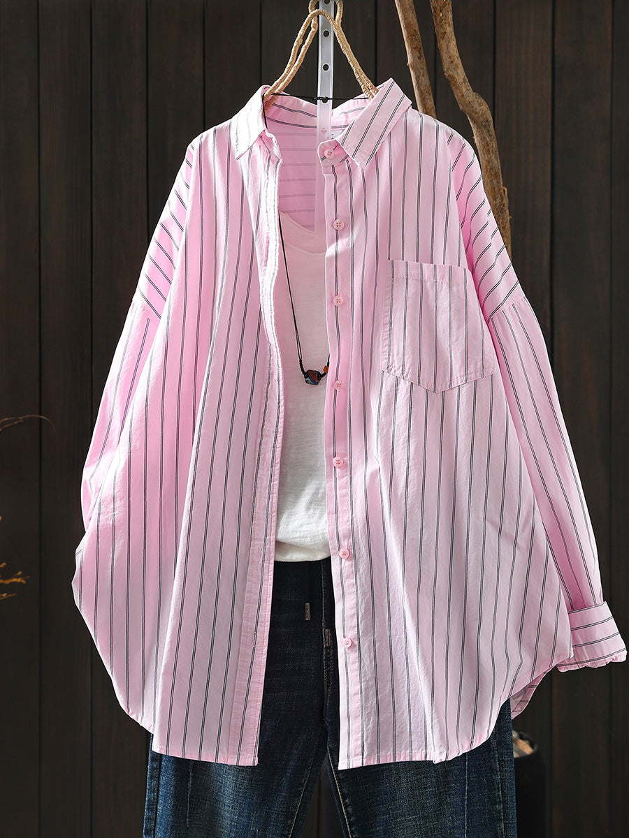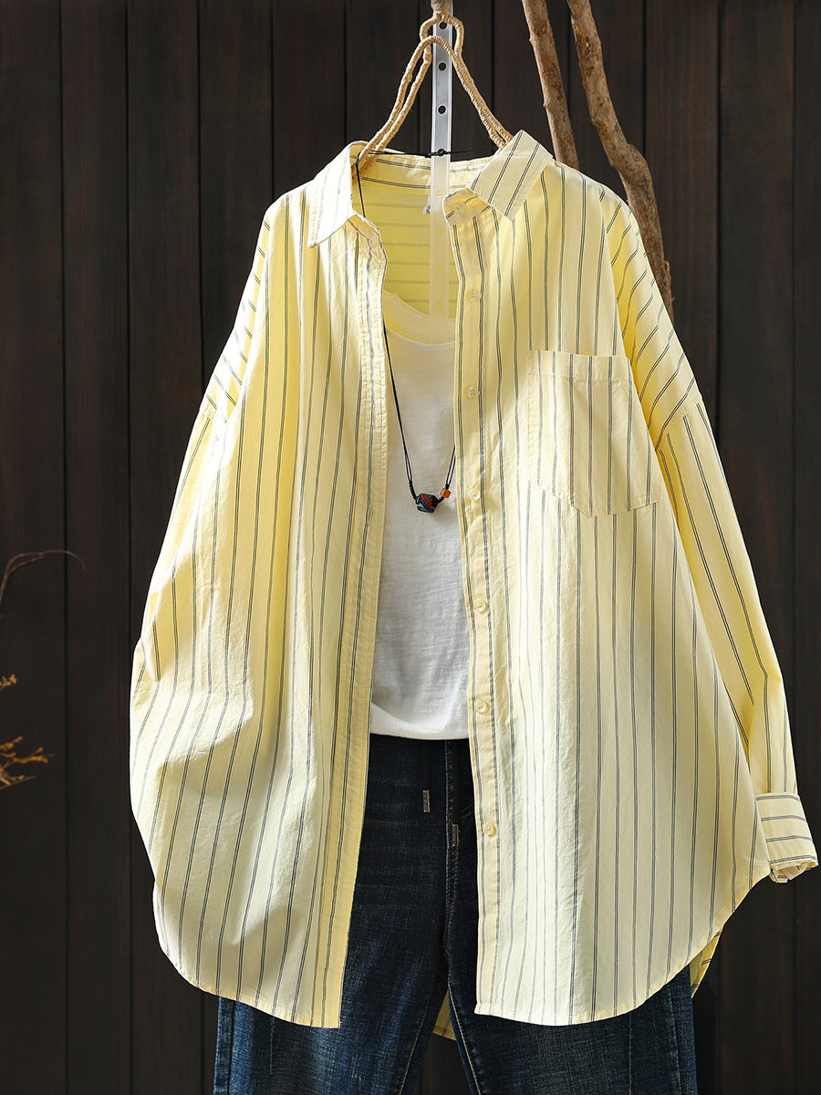 Camisa de cuello vuelto 100 % algodón con rayas Artsy Spring para mujer