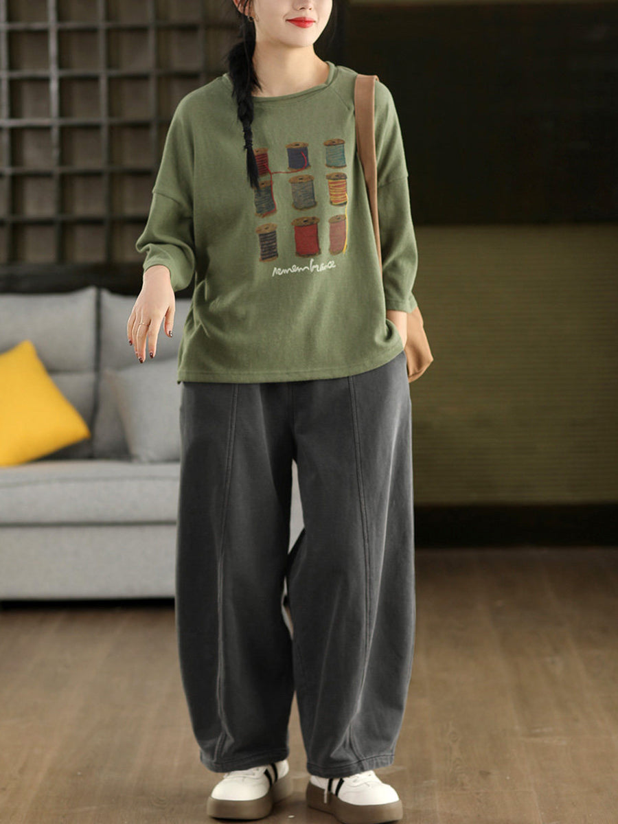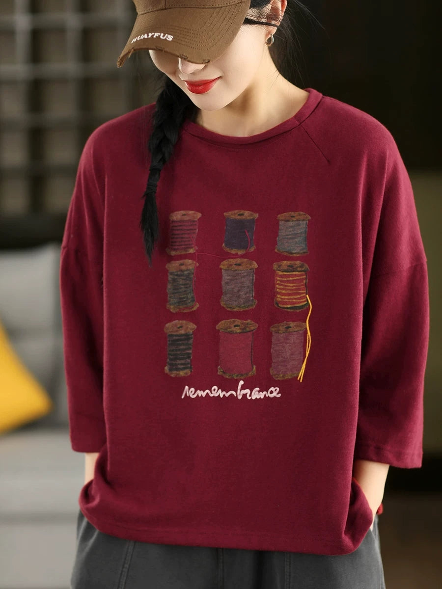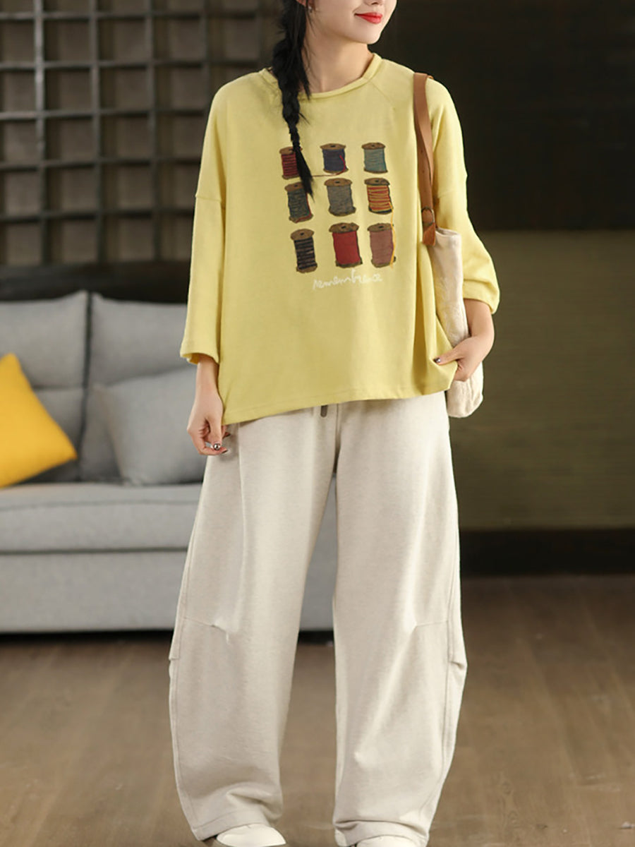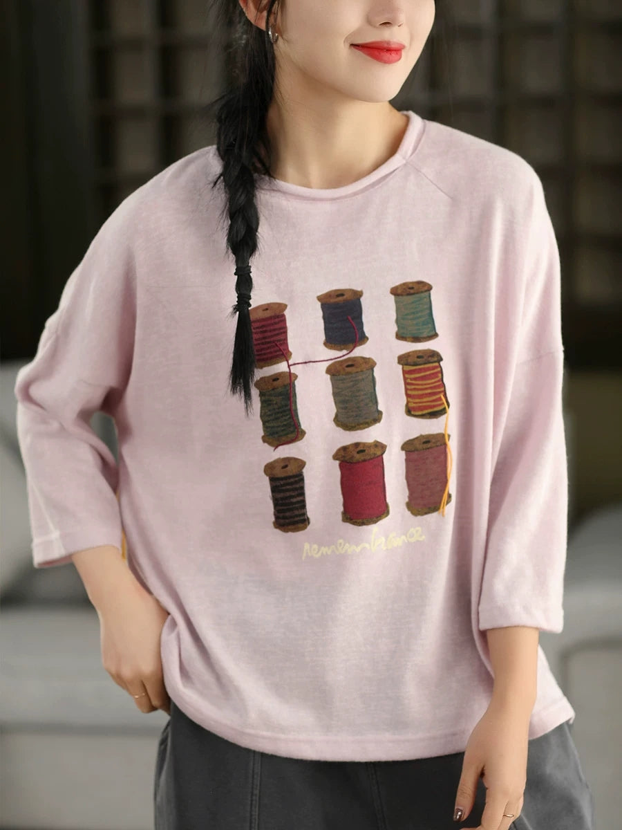 Blusa de algodón con cuello redondo y estampado artístico de primavera para mujer
