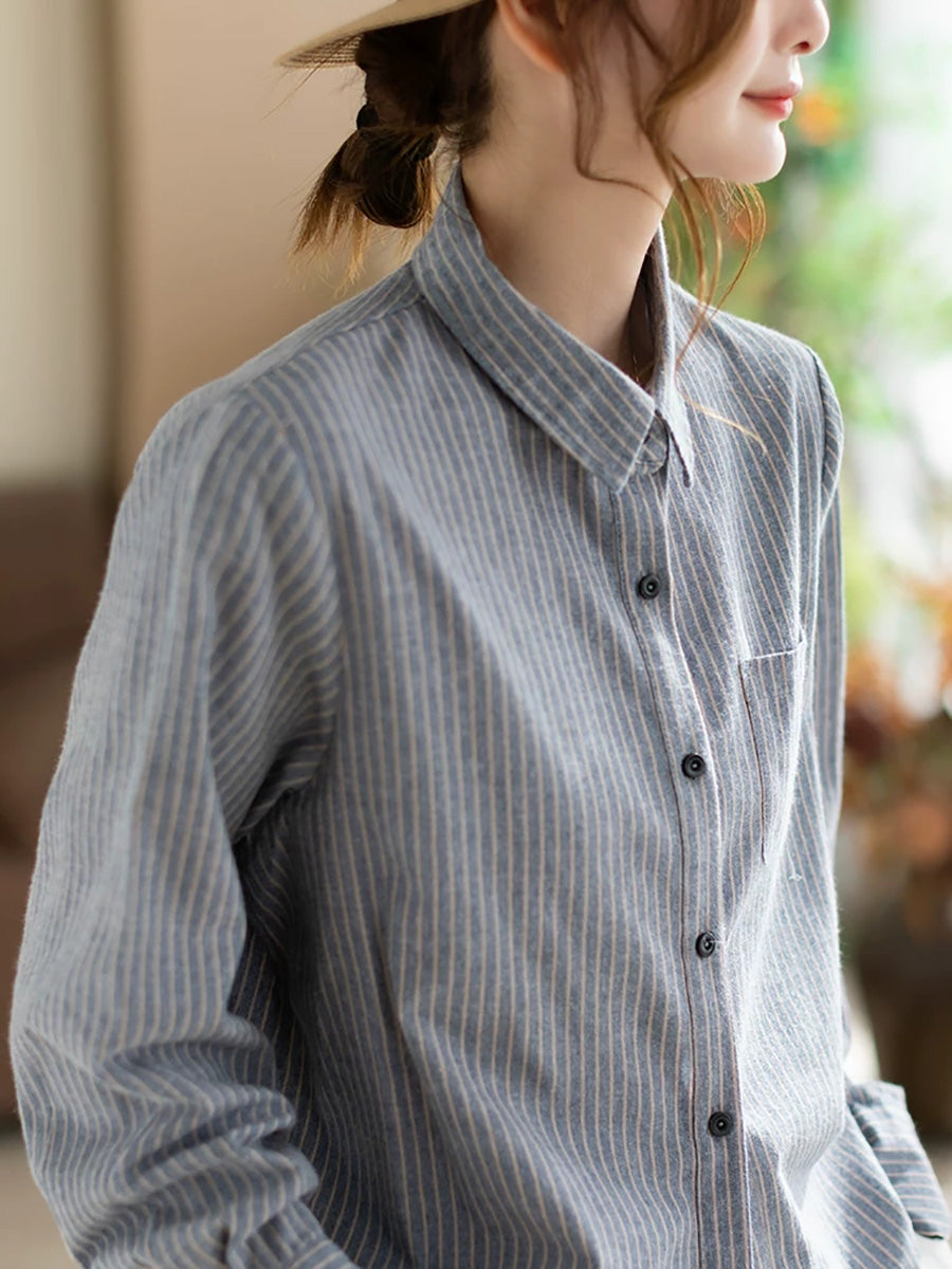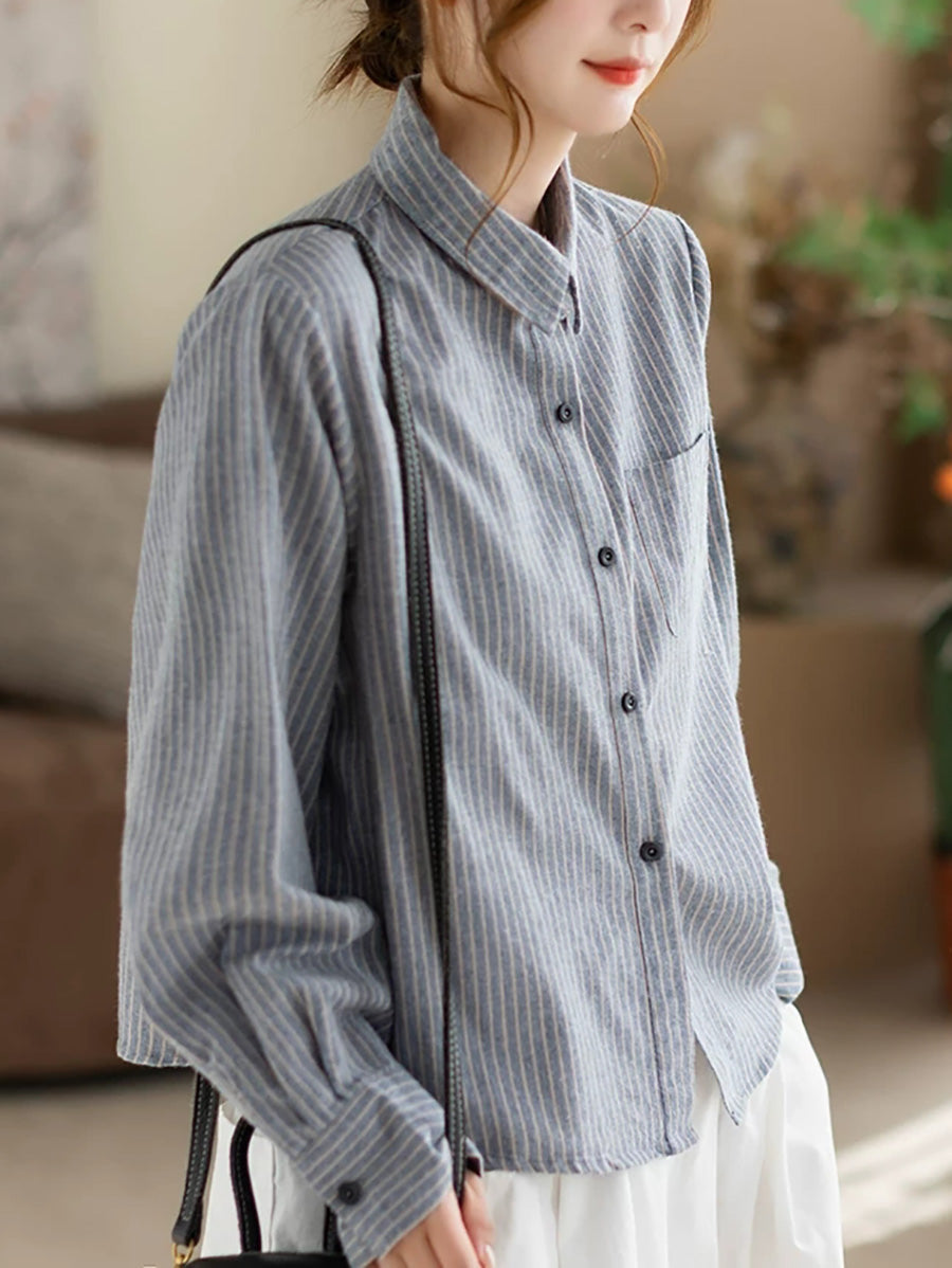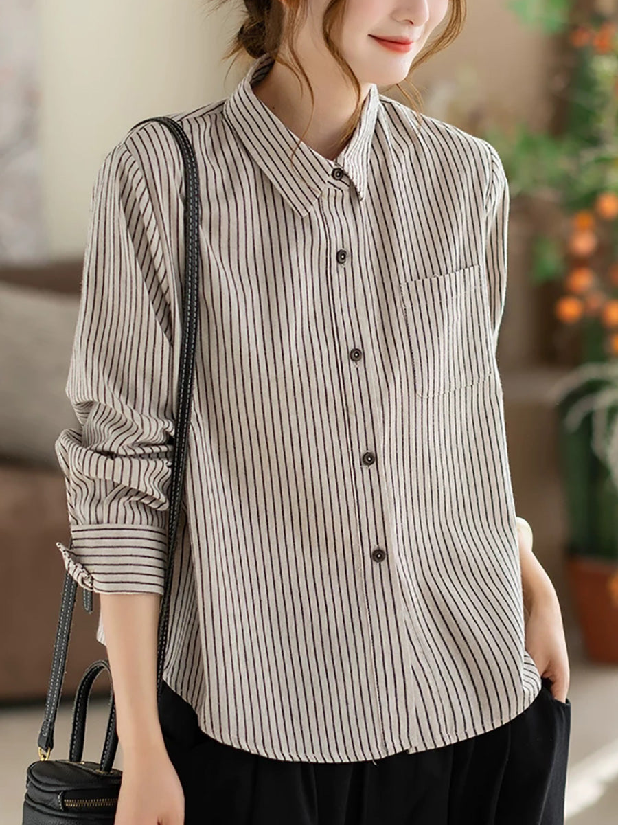 Camisa de algodón con rayas artísticas de primavera para mujer