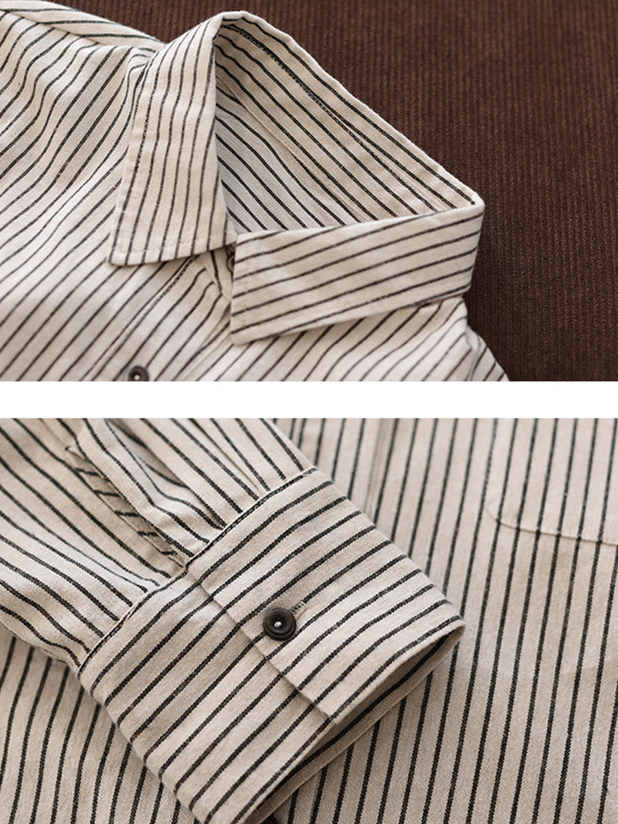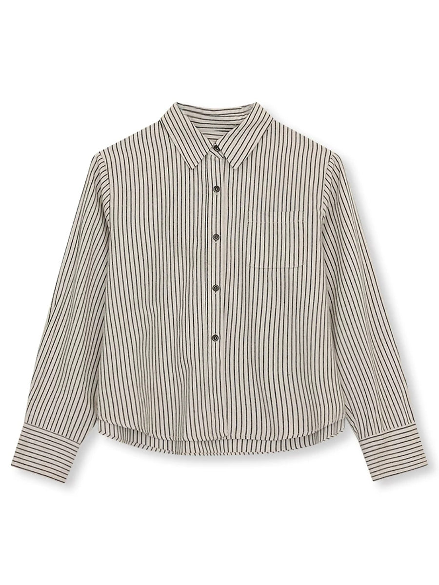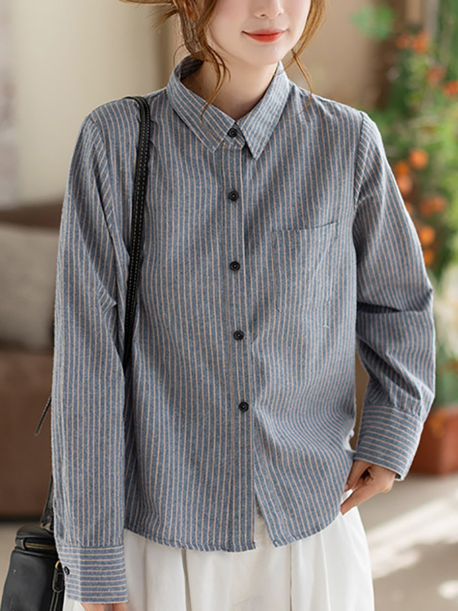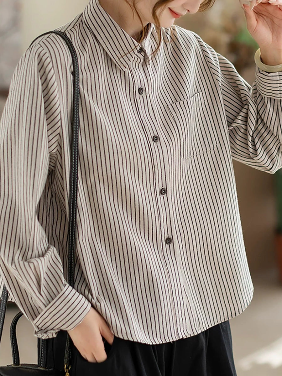 Camisa de algodón con rayas artísticas de primavera para mujer