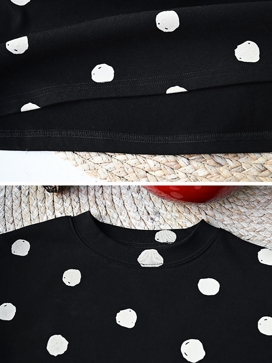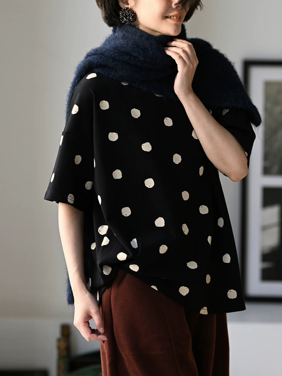 Blusa gruesa de cuello redondo con lunares vintage de primavera para mujer