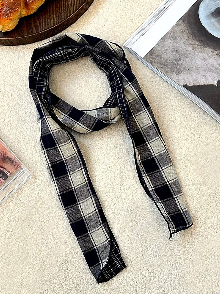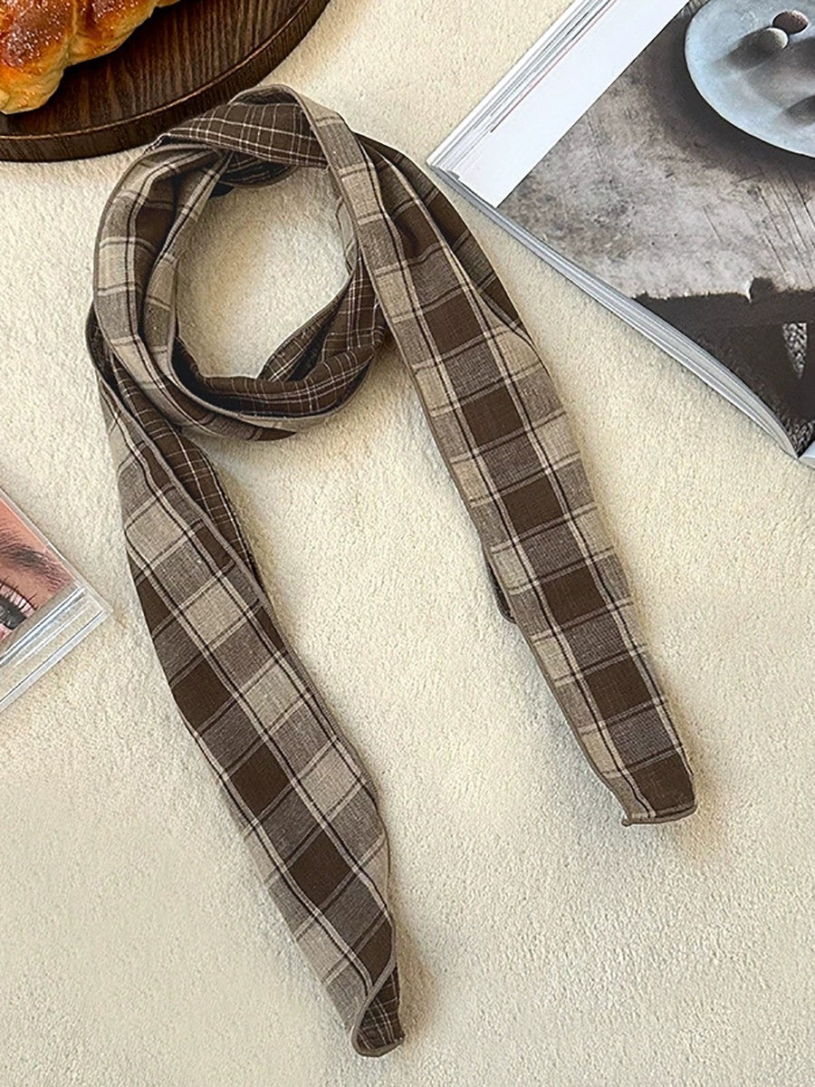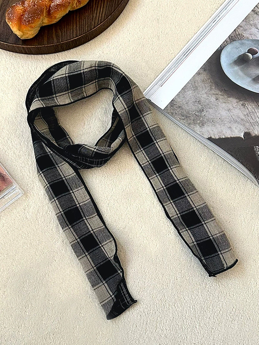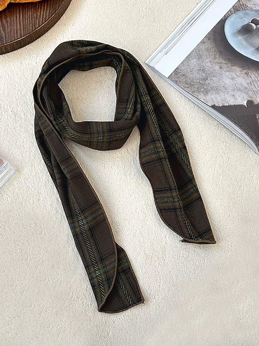 Bufanda vintage a cuadros fina, estrecha y versátil