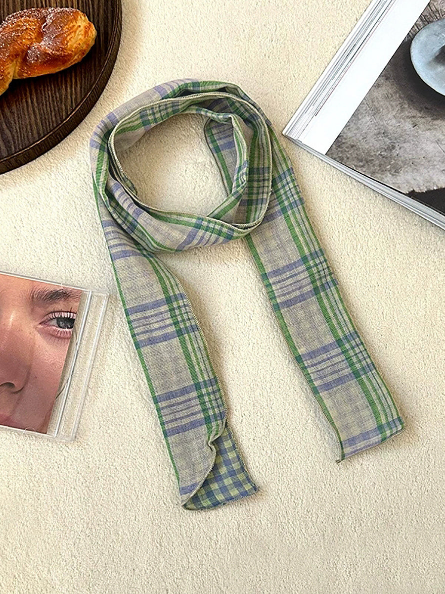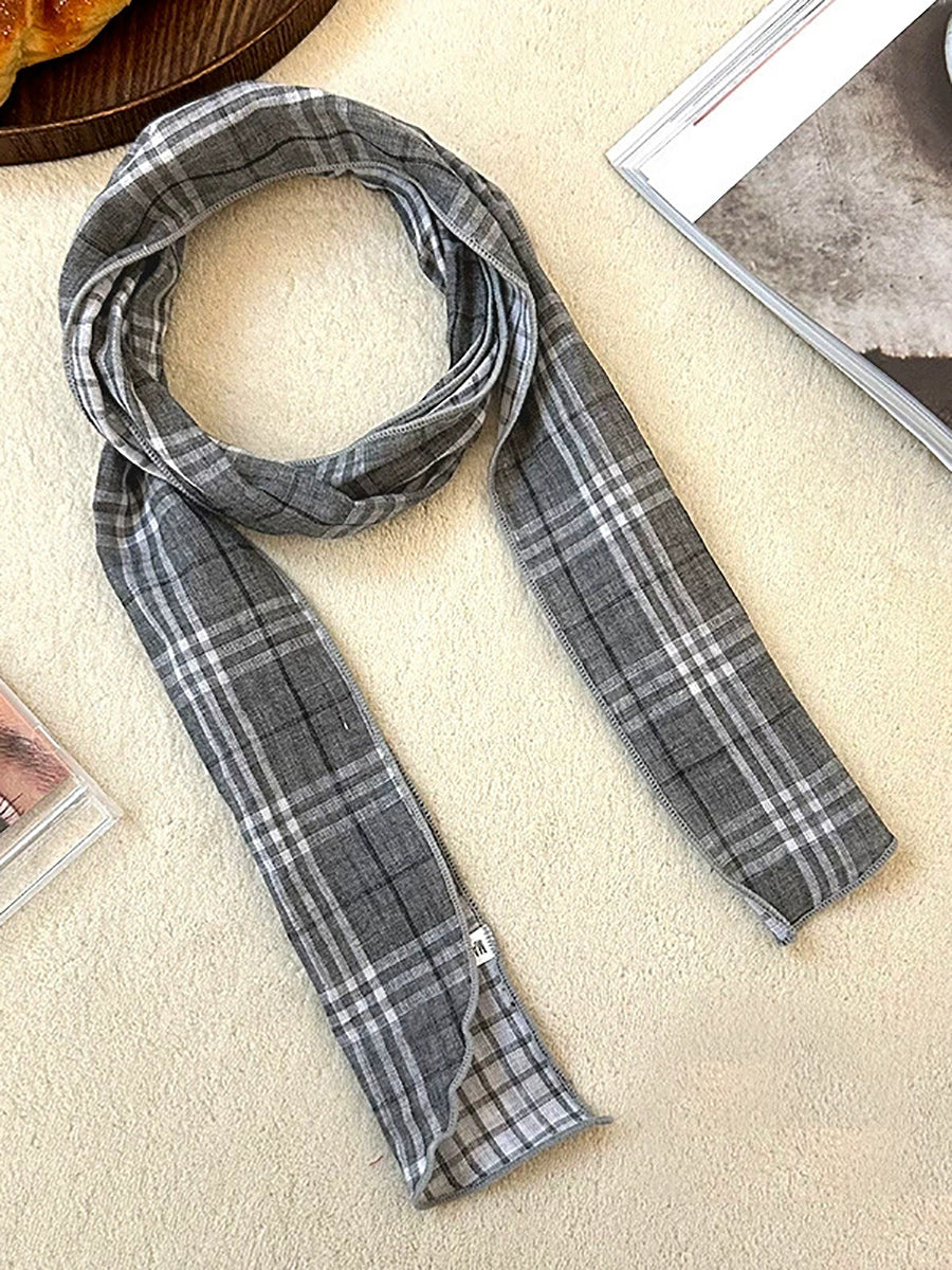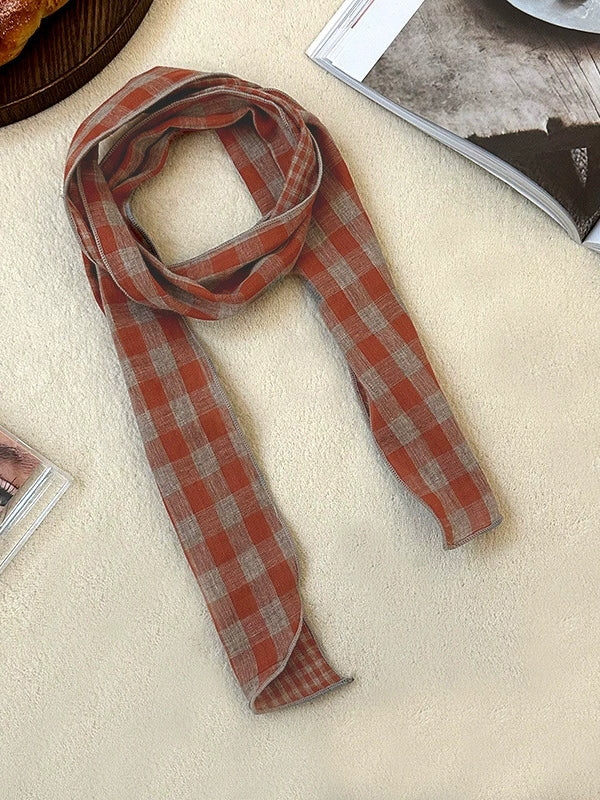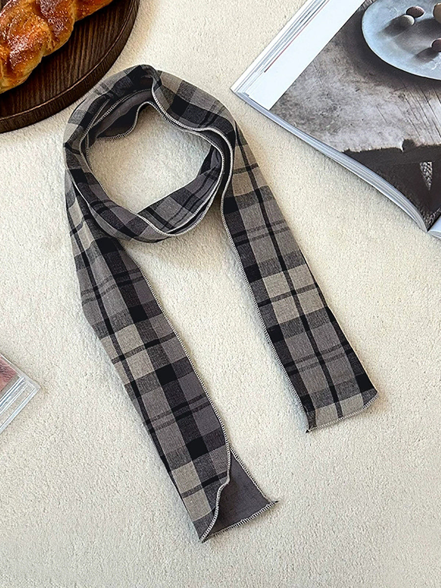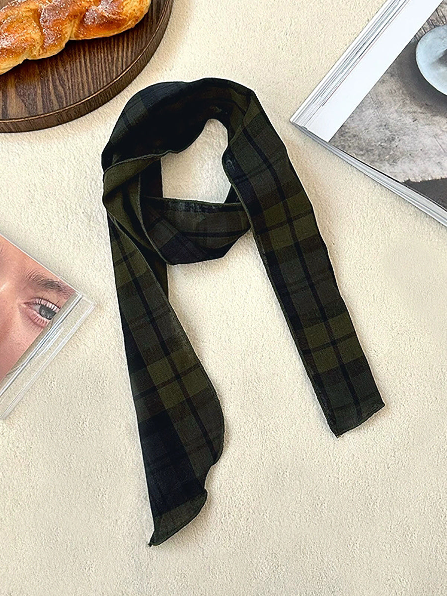 Bufanda vintage a cuadros fina, estrecha y versátil