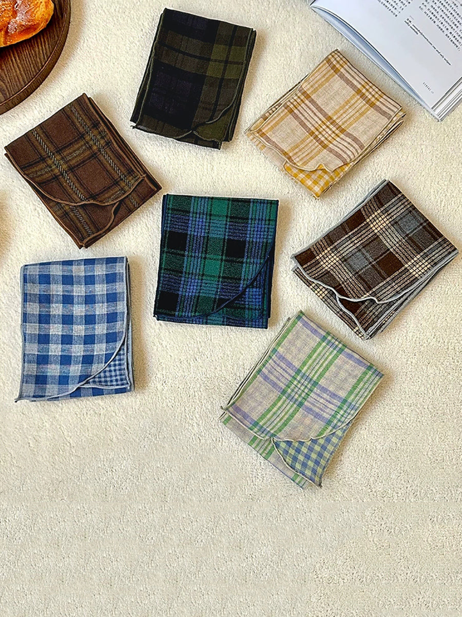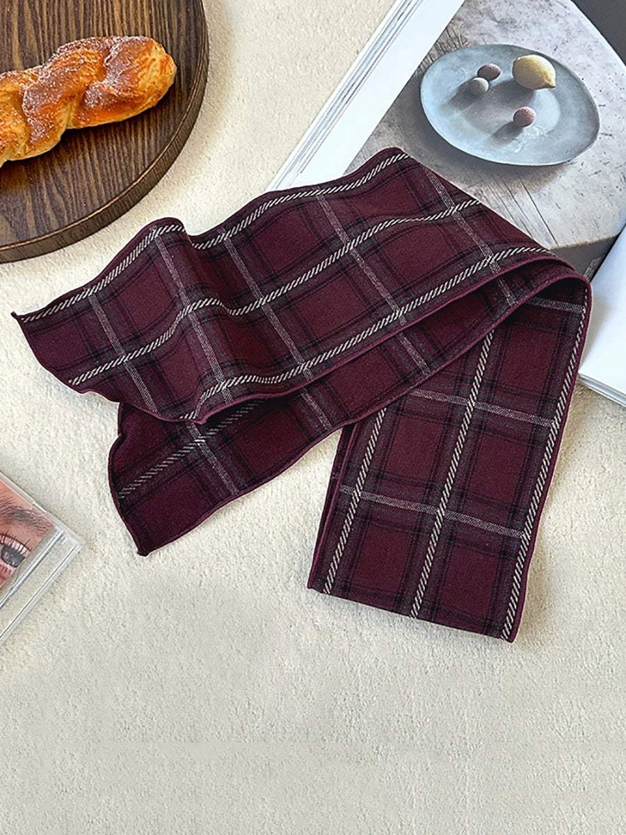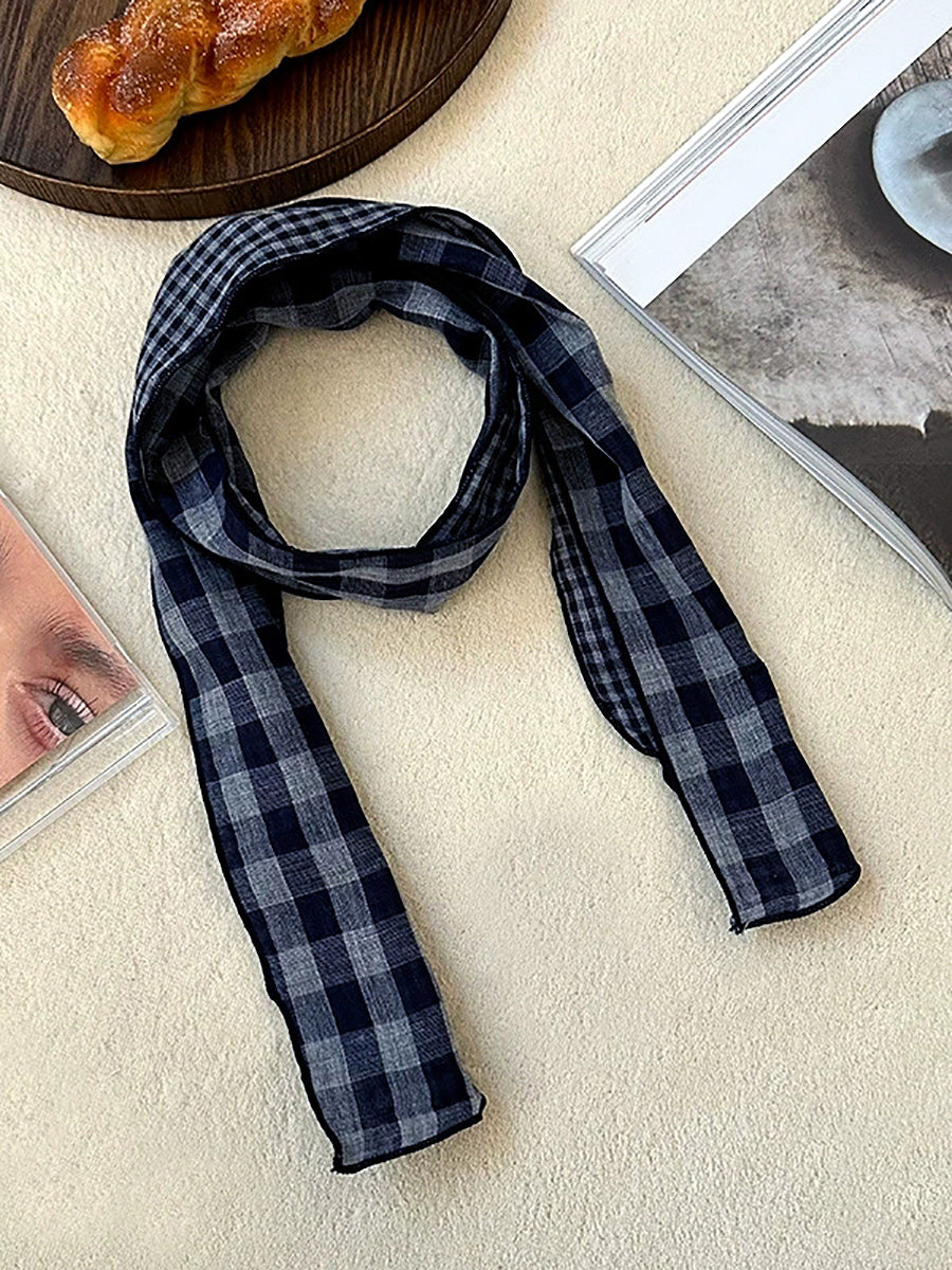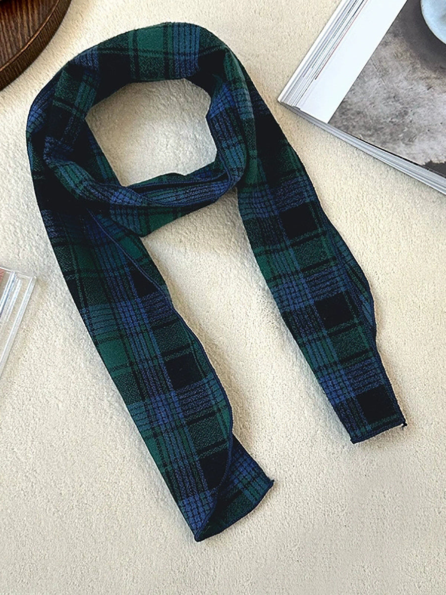 Bufanda vintage a cuadros fina, estrecha y versátil