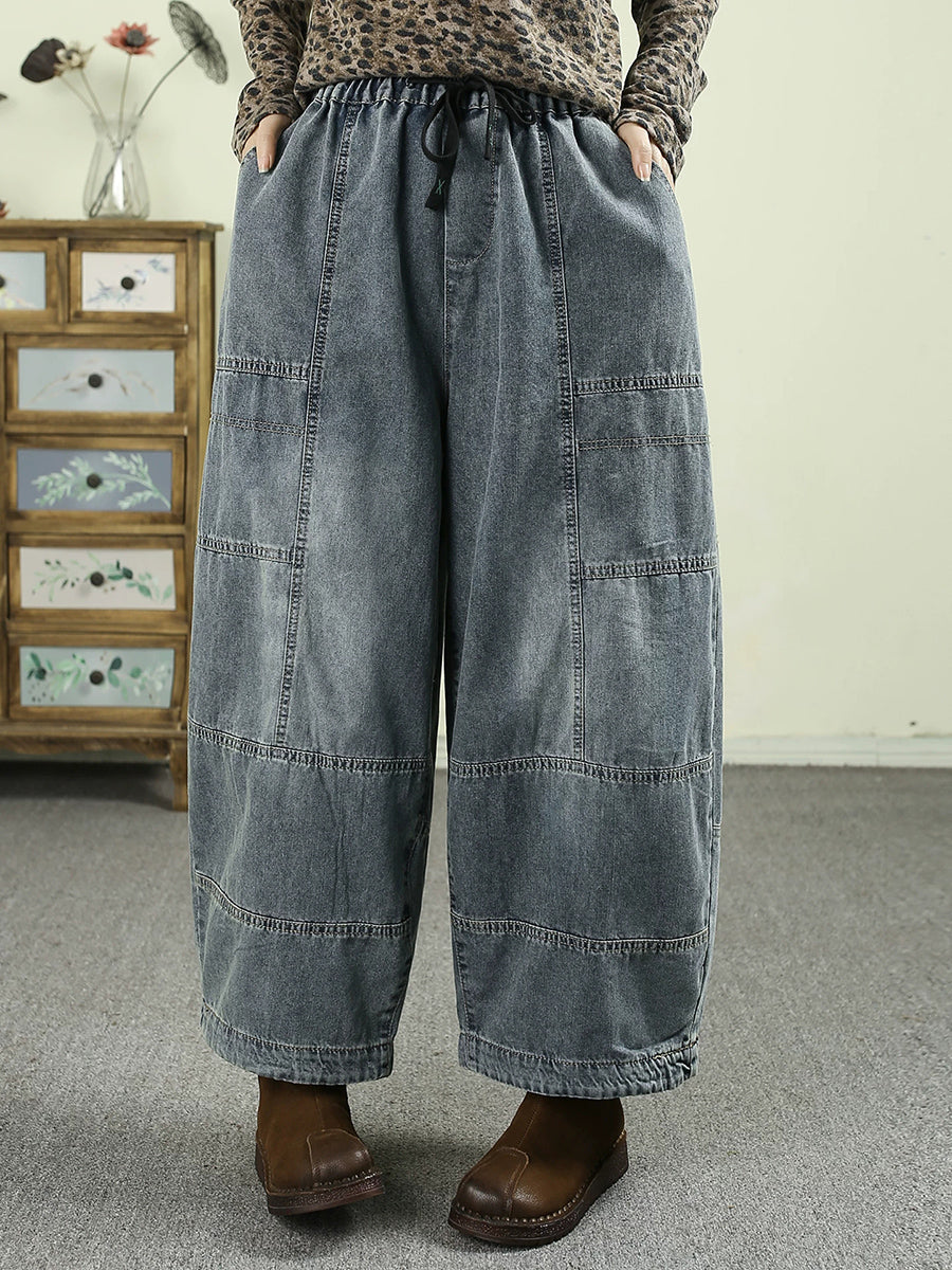 Pantalones vaqueros vintage de pierna ancha con empalmes para mujer de primavera