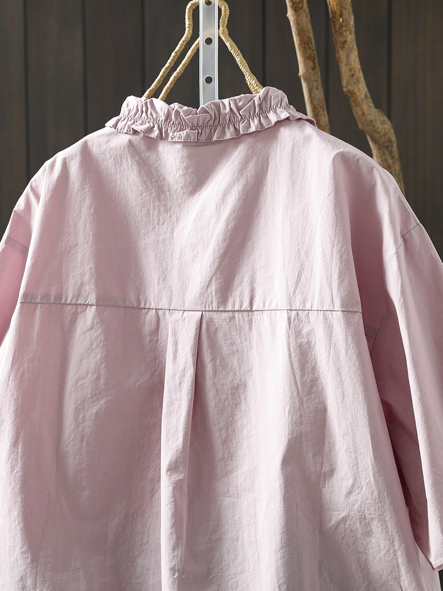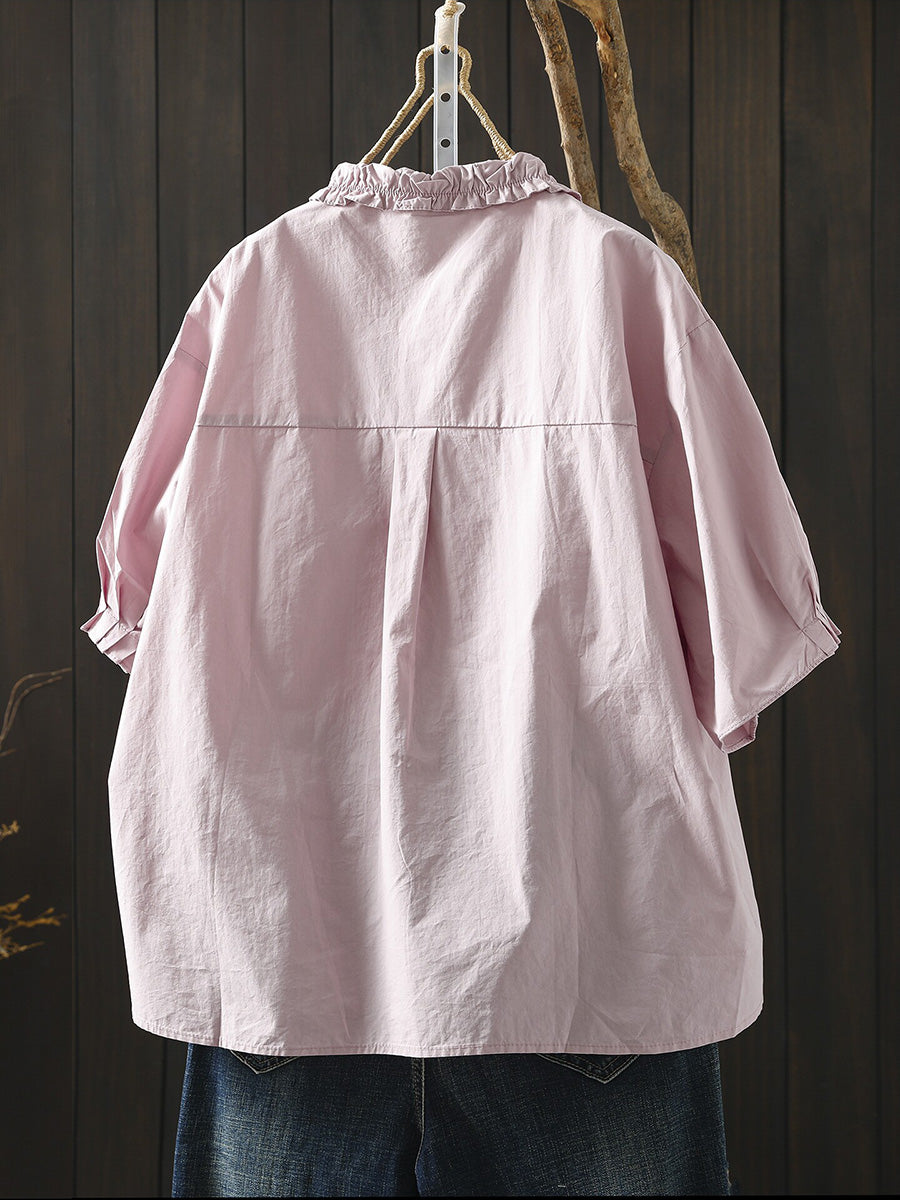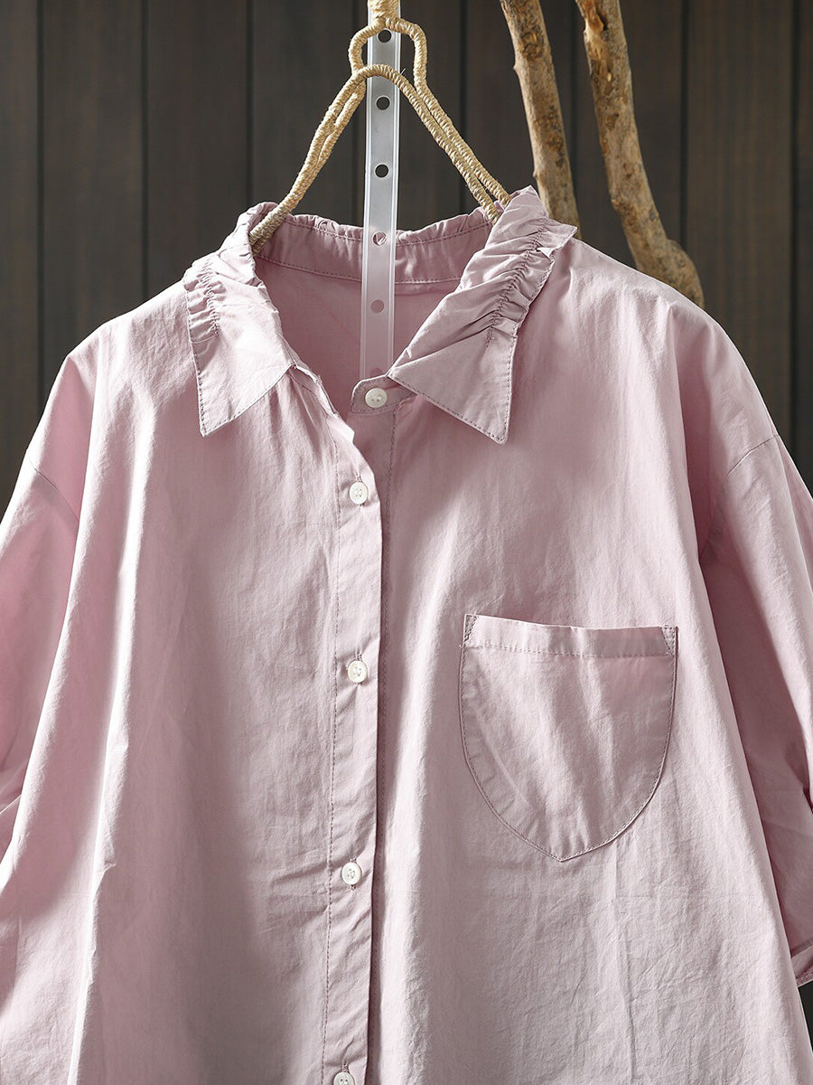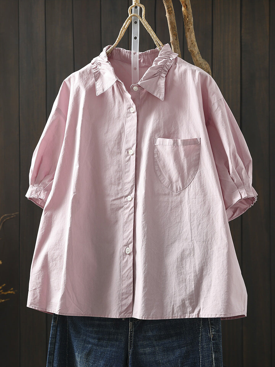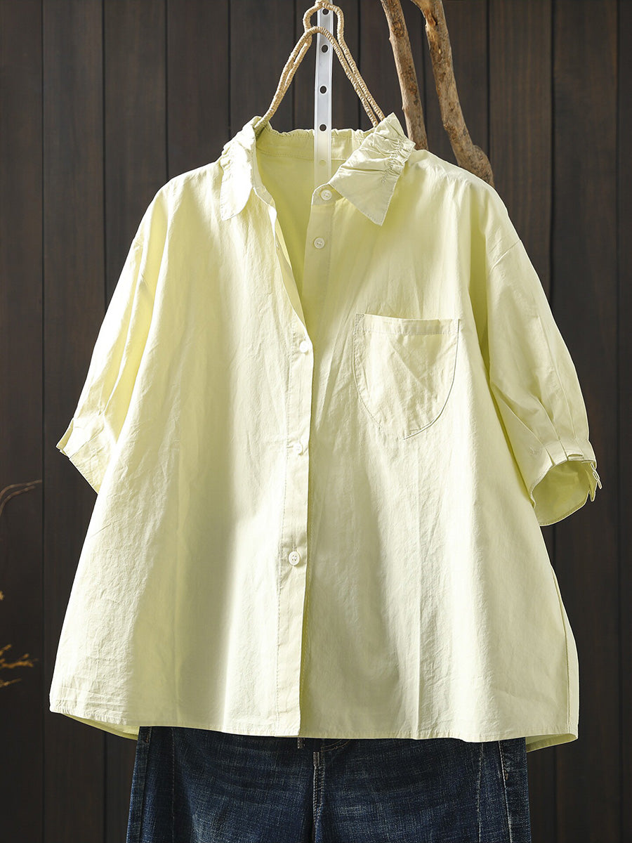 Camisa casual de verano para mujer, color liso, 100% algodón.