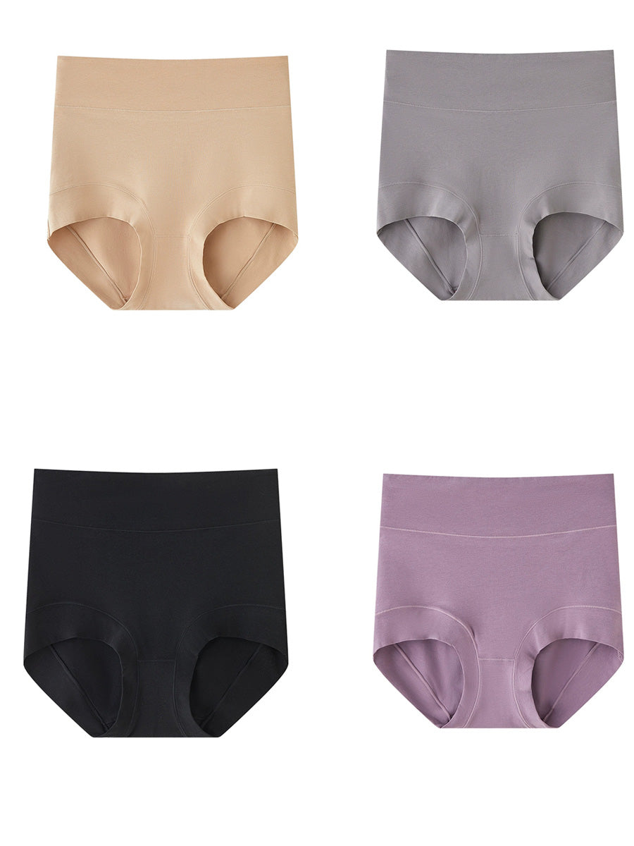 4 piezas de ropa interior de cintura alta de color puro y artístico para mujer