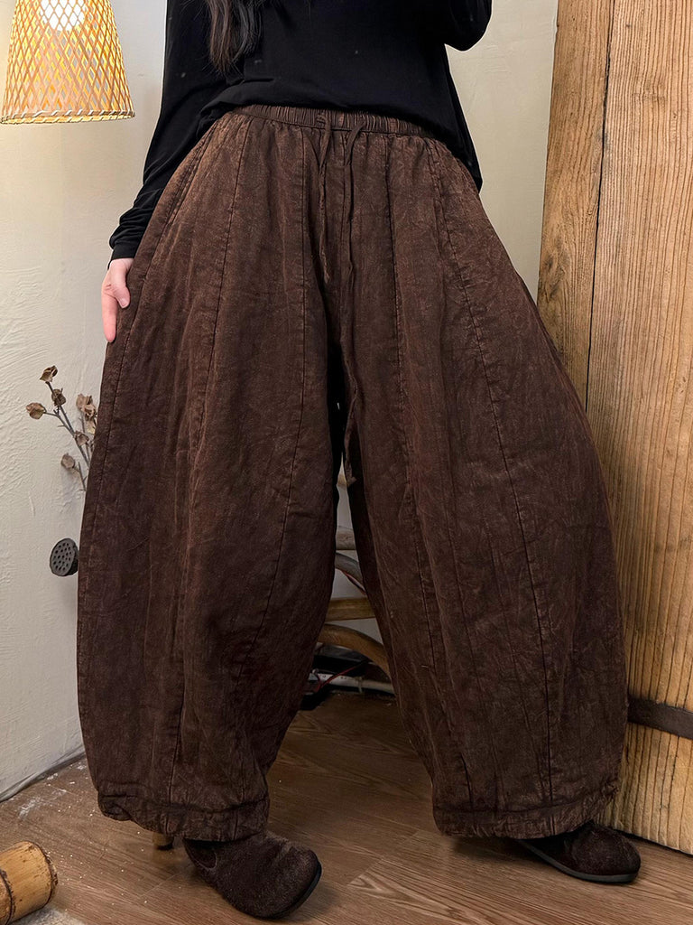 Women Autumn Retro Linen Spliced Harem Padded Pants