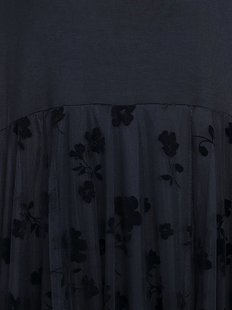Crafted from 95% viscose and 5% spandex, this sleeveless maxi pinafore dress features an O-neck design and delicate floral patterns. The ankle-length silhouette is enhanced by elegant lace detailing, making it an ideal choice for summer wear.