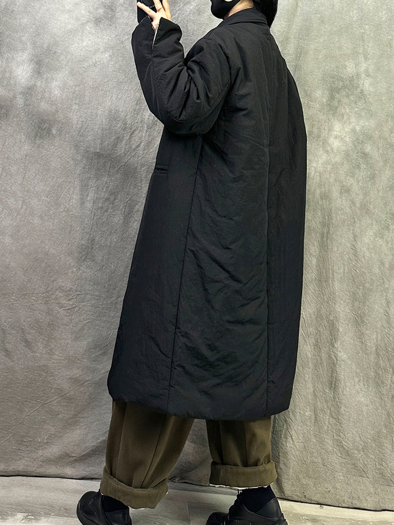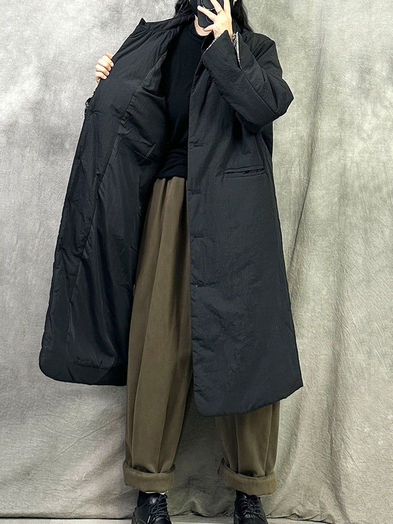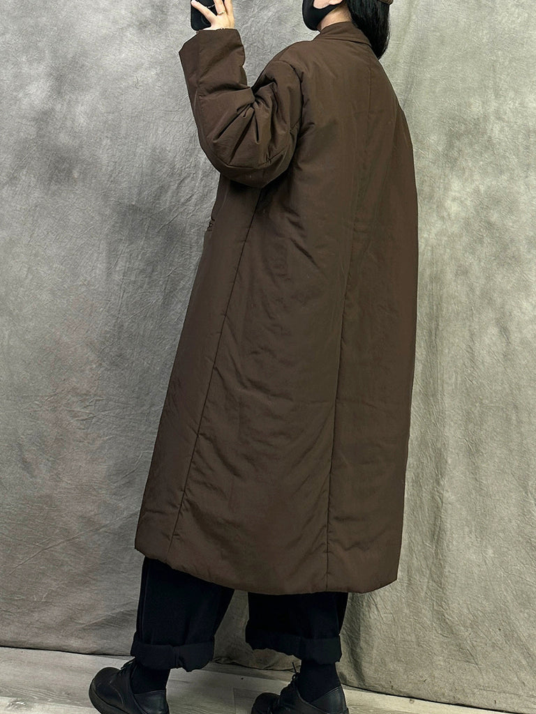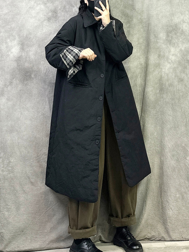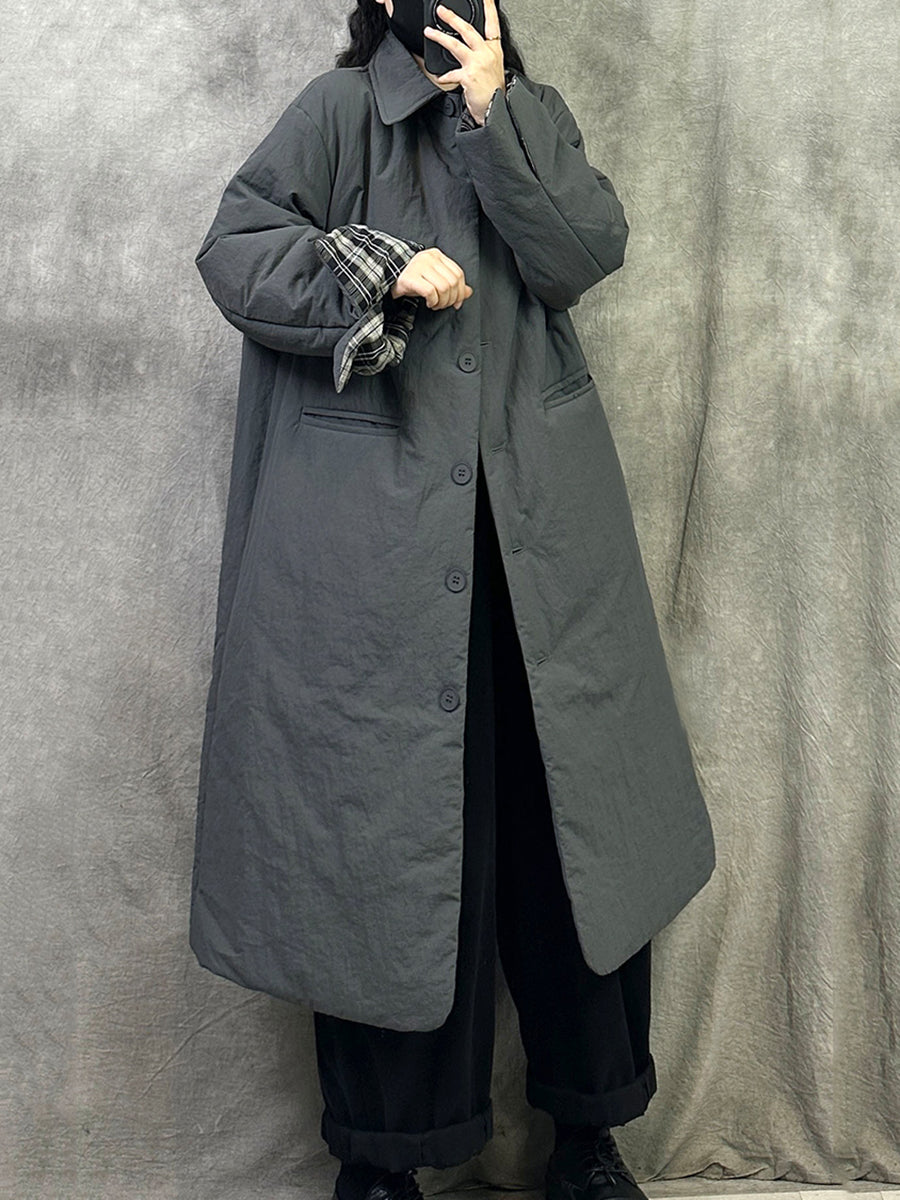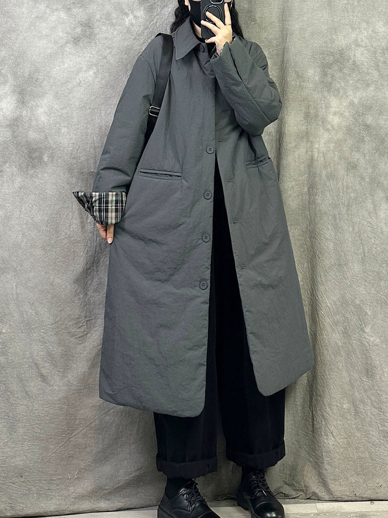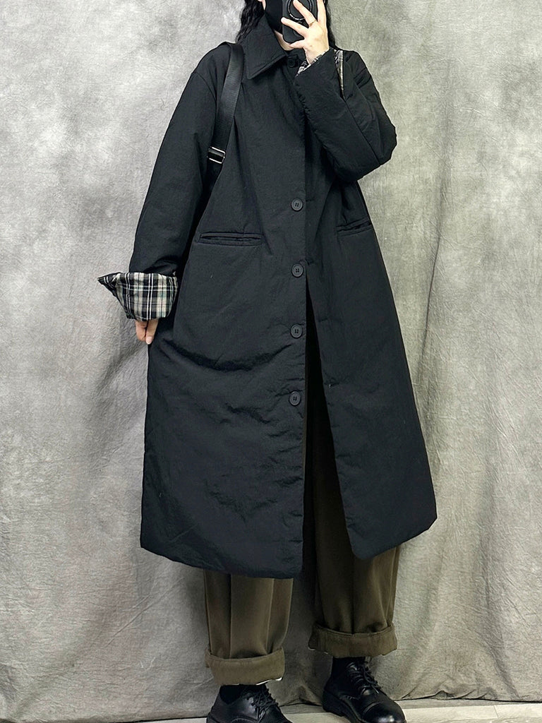 Crafted from cotton, this women's long coat features a solid color design and a classic turn-down collar. It offers full-length sleeves with a casual, regular fit, making it an ideal choice for autumn and winter seasons.