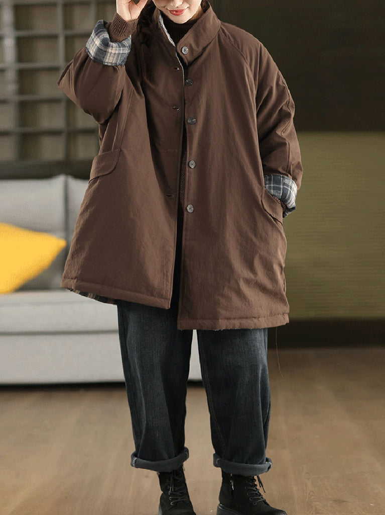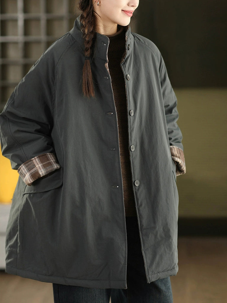 Women Winter Pure Color Dual-side Wearing Padded Coat