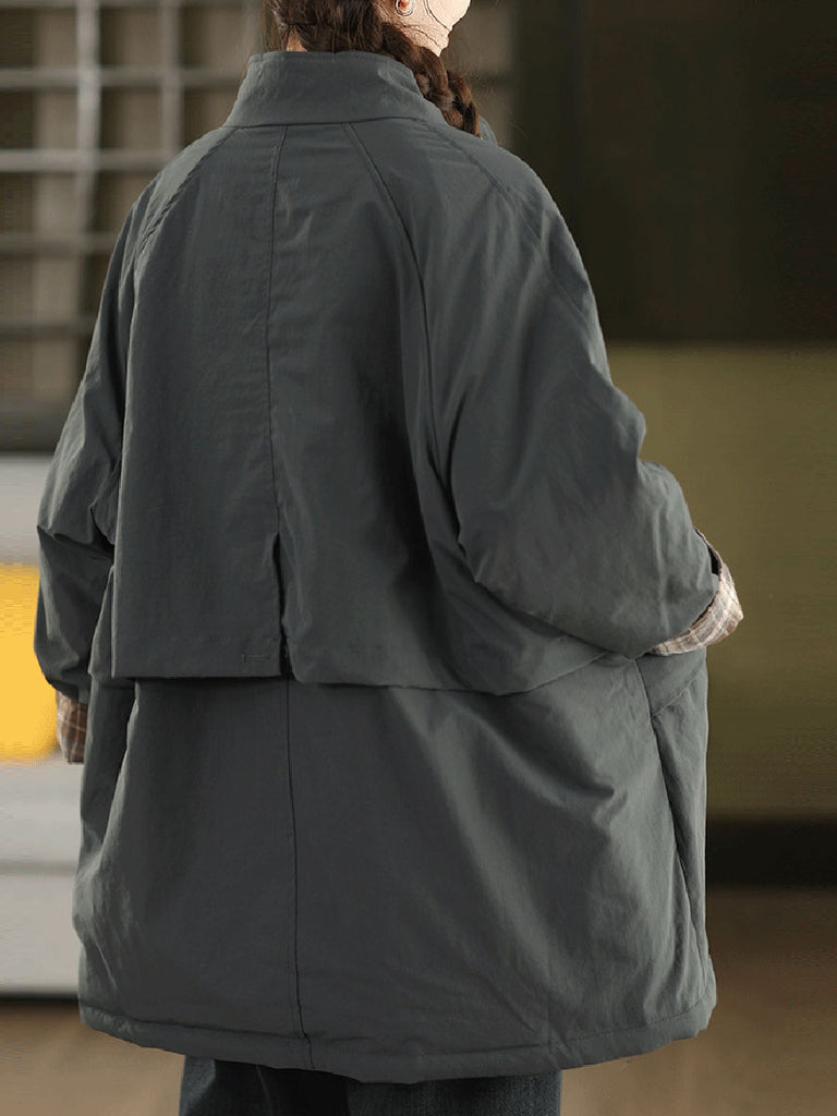 Crafted from cotton, this padded coat features a classic pure color design and a turn-down collar. Designed with full raglan sleeves offering a retro style, it is ideal for both