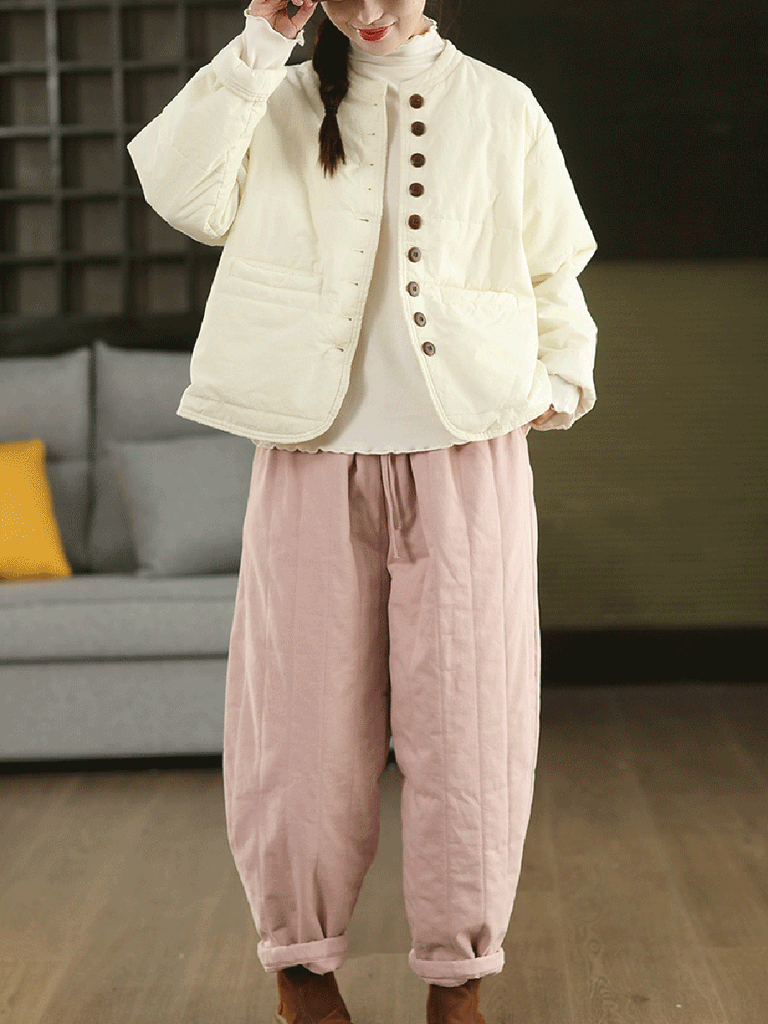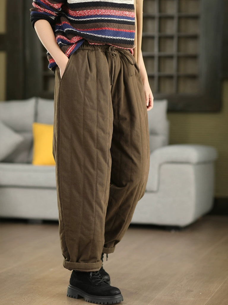 Women Winter Casual Pure Color 100%Cotton Padded Harem Pants