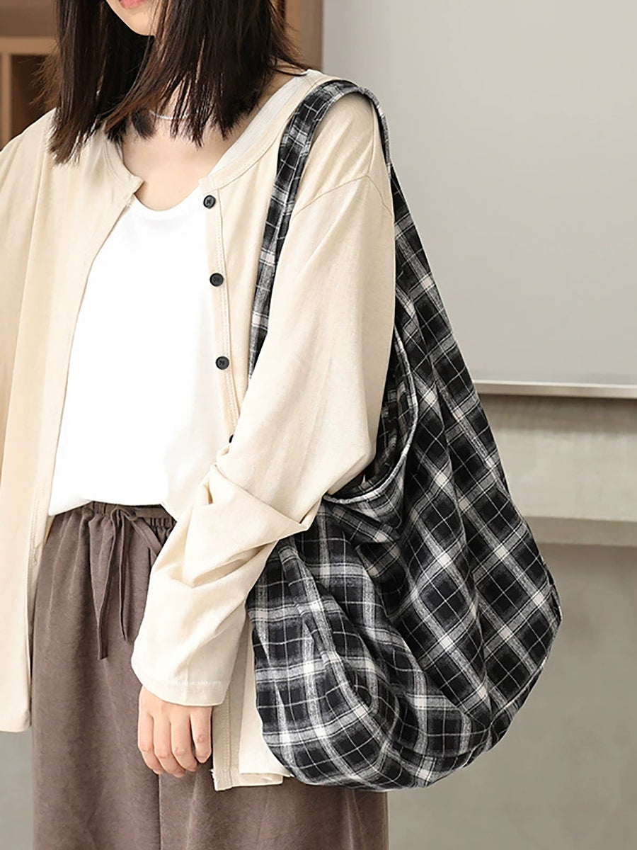 Artsy Plaid Commute Canvas Shoulder Bag