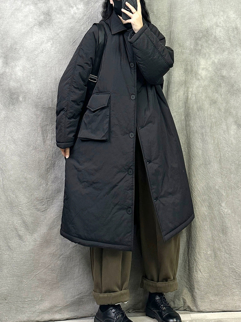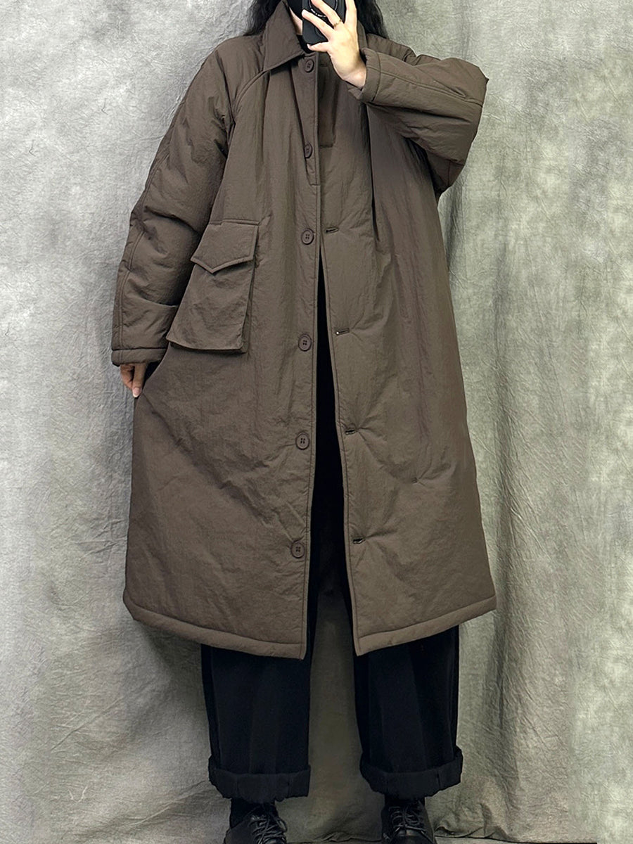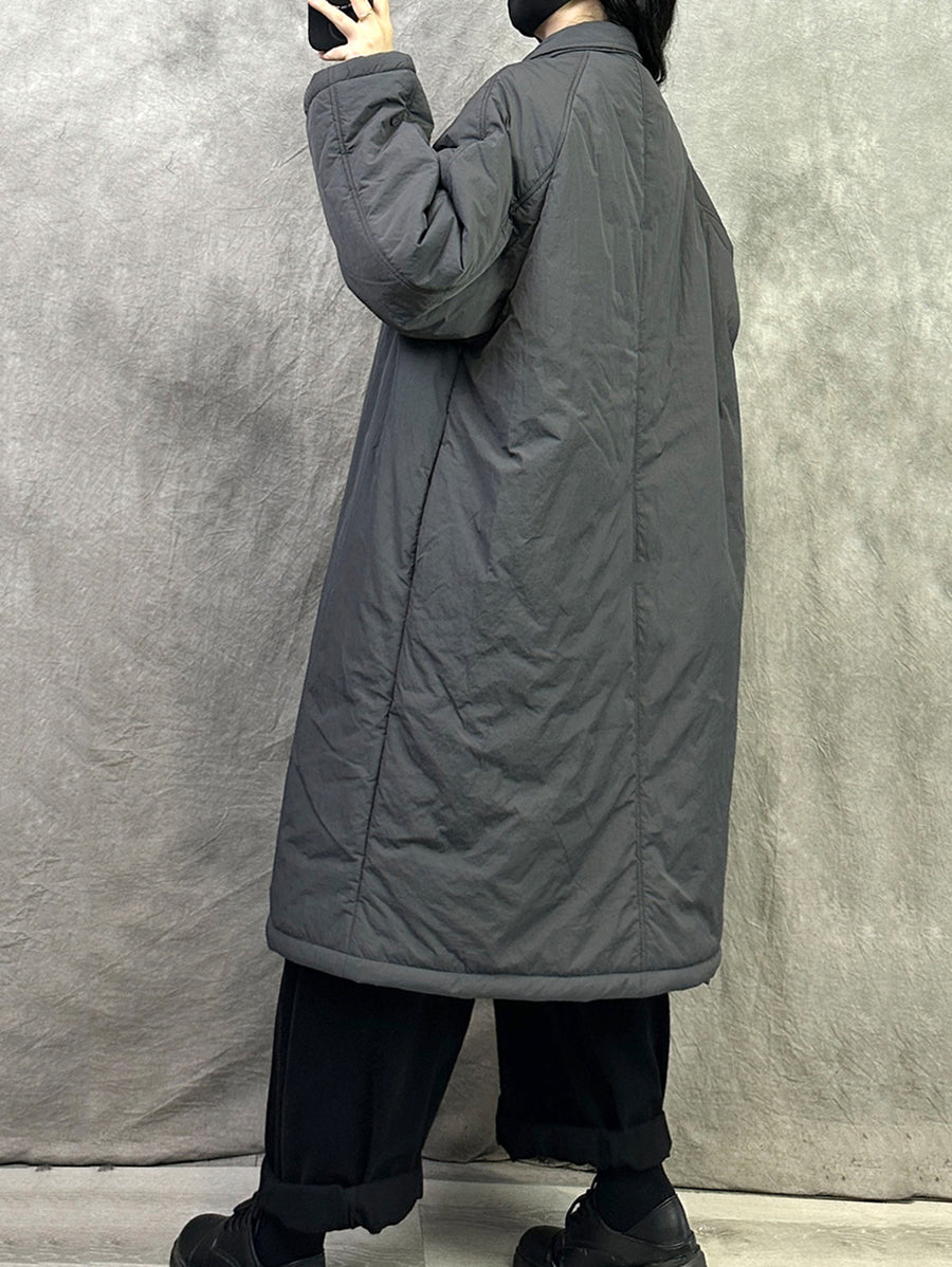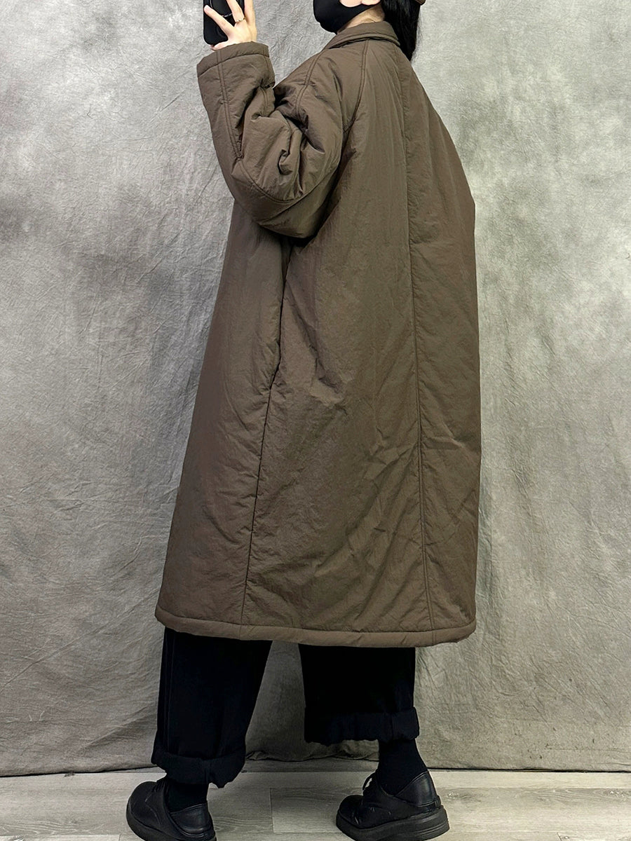 Women Winter Pure Color Turn-down Collar Padded Long Coat