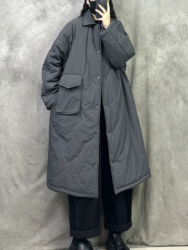 Crafted for cold-weather versatility, this women's padded long coat combines timeless design with practical functionality. The turn-down collar and full-length raglan sleeves deliver a refined silhouette, while the solid color palette ensures effortless coordination with any wardrobe. Retro-inspired styling meets modern comfort, making it an essential layering piece for winter and autumn transitions. The padded construction provides warmth without bulk, ideal for those seeking both elegance and performance in seasonal outerwear.