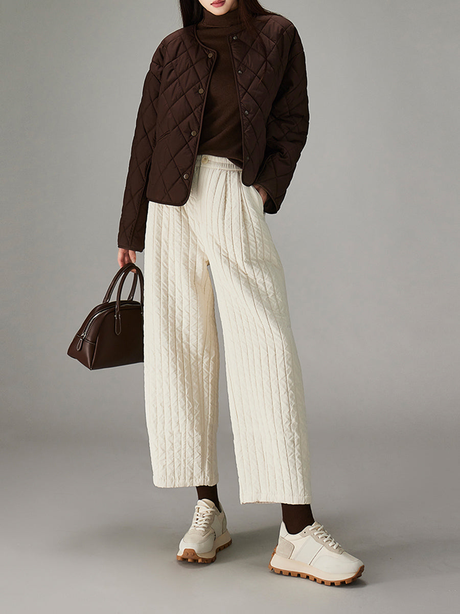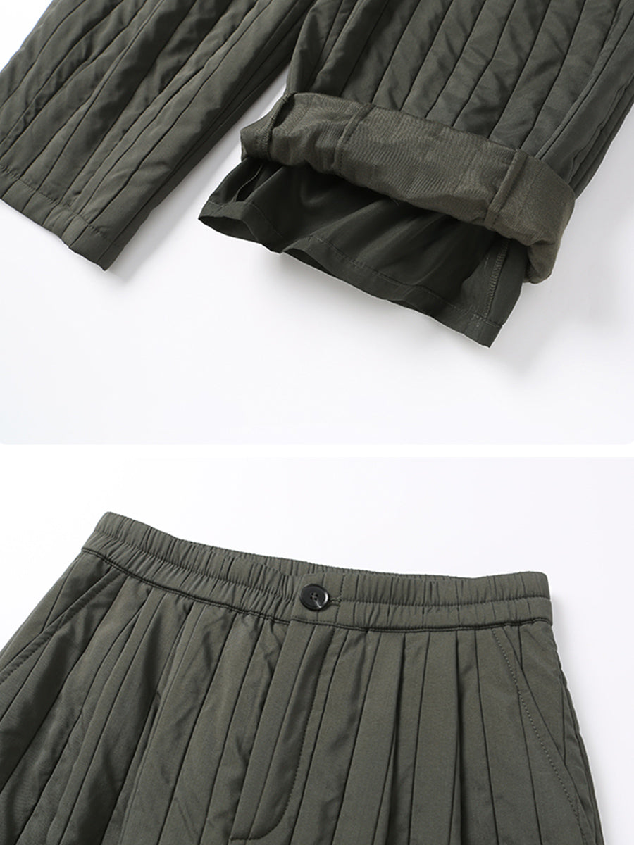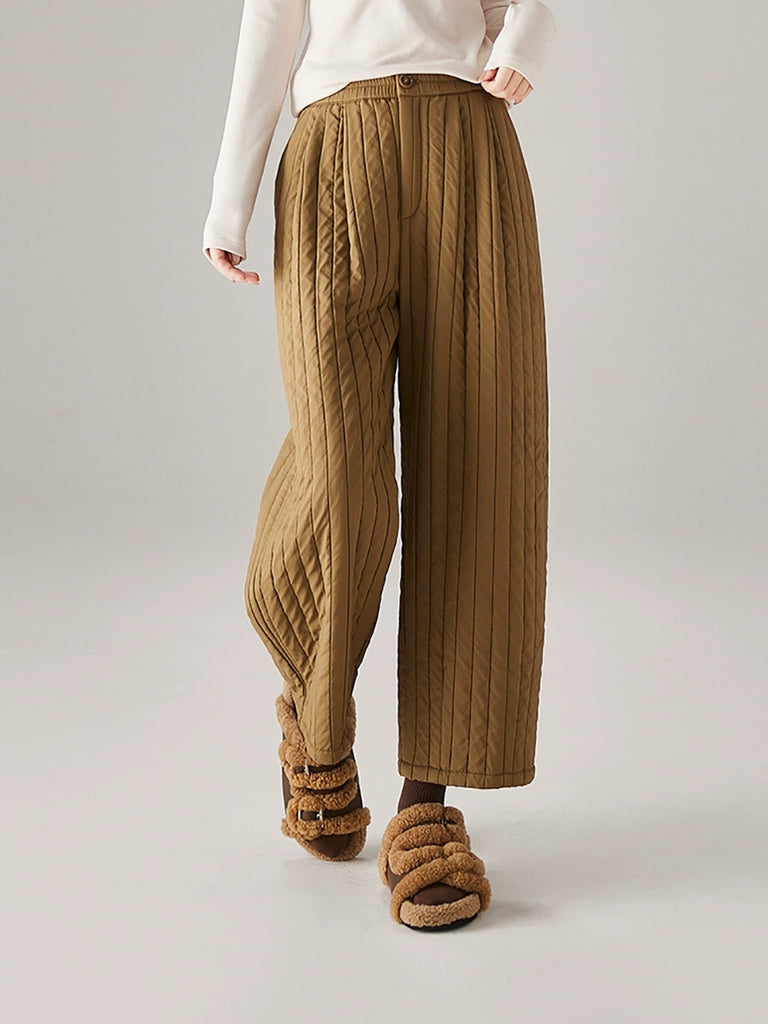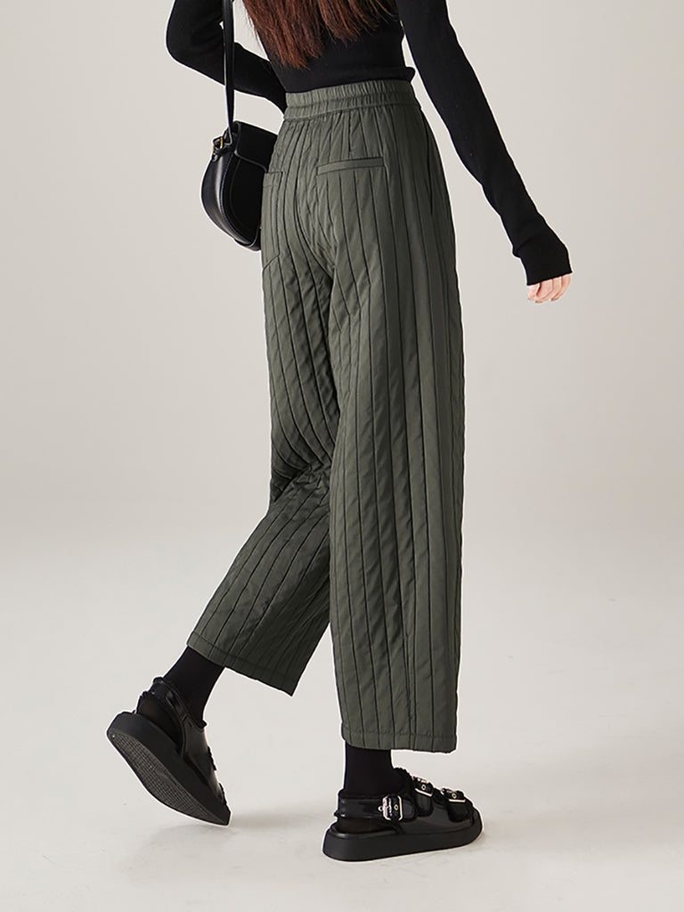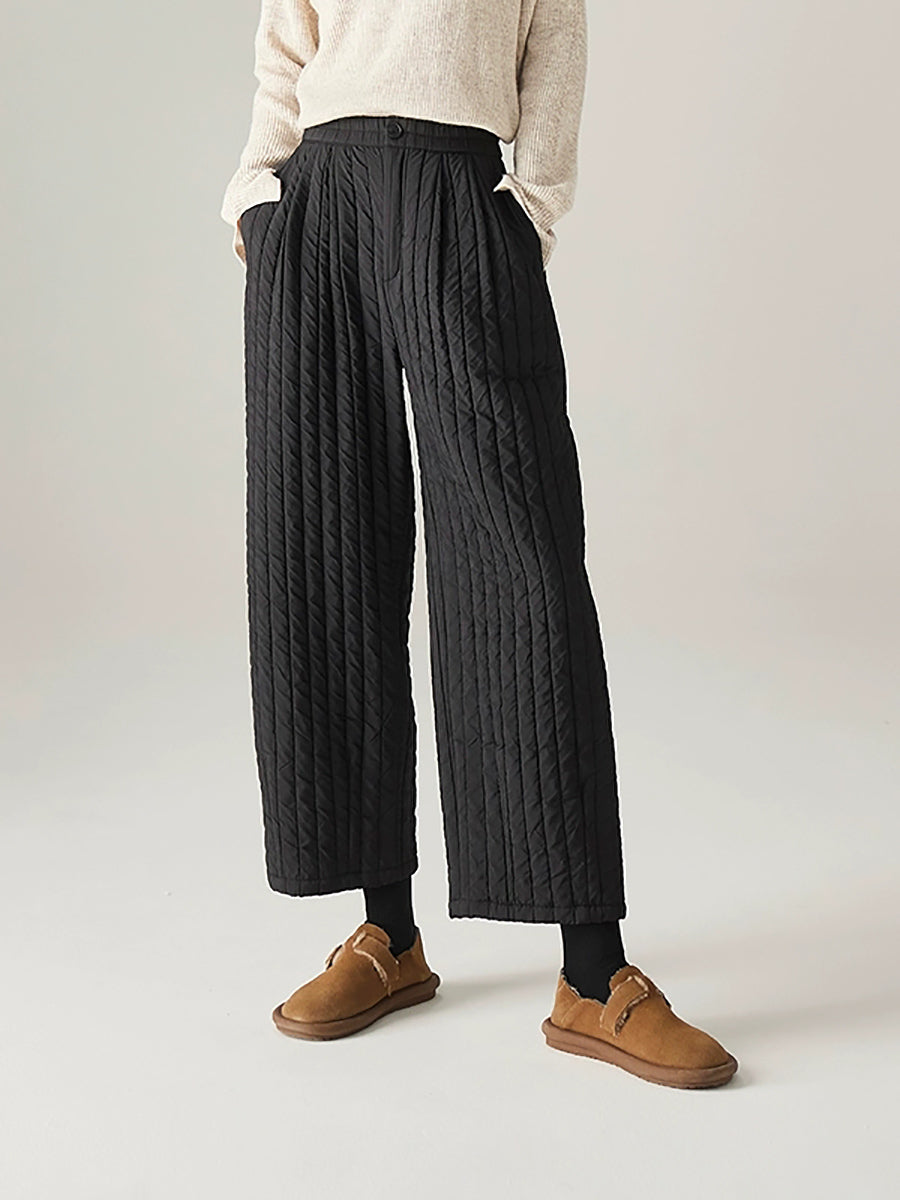 Women Winter Casual Pure Color Padded Wide-leg Pants