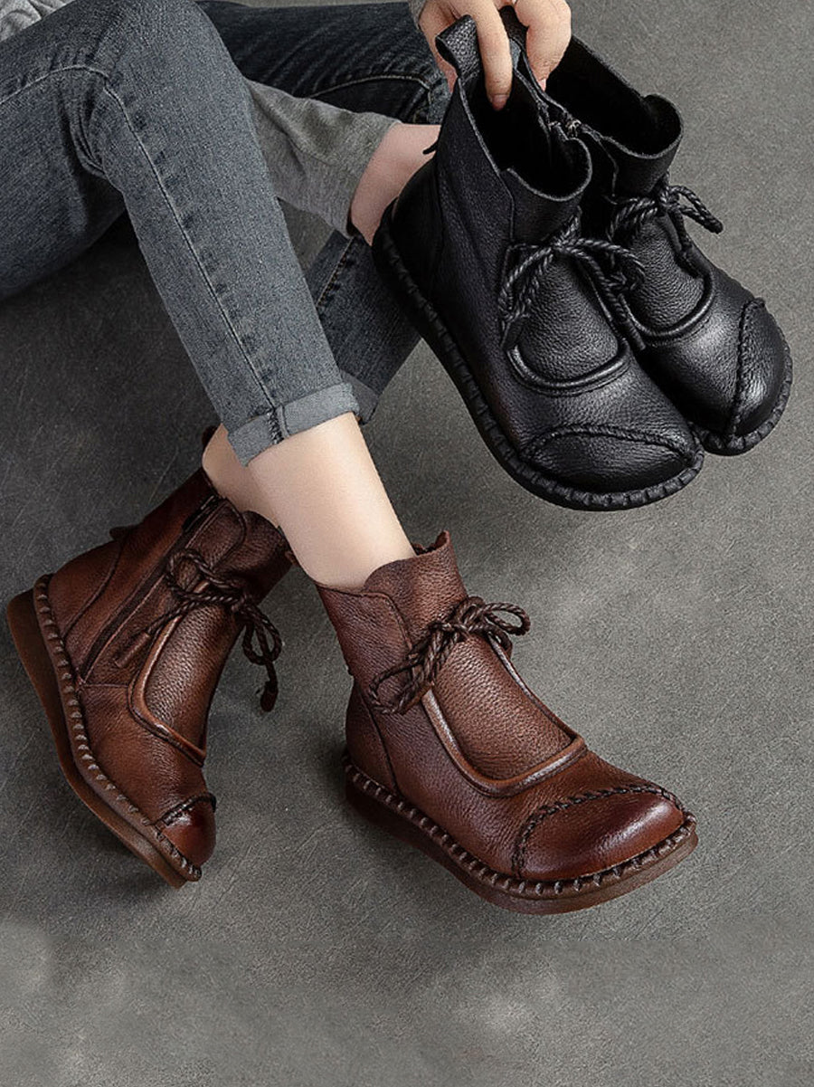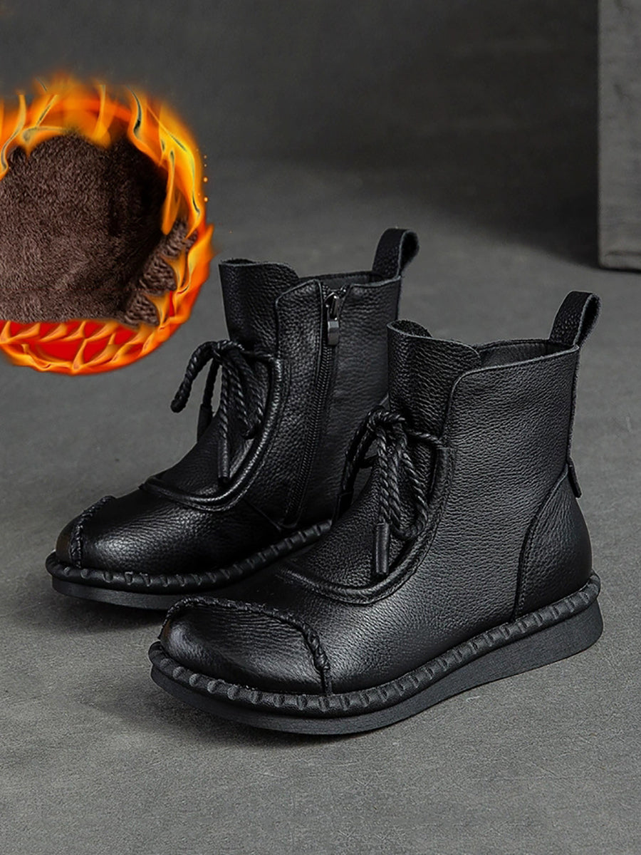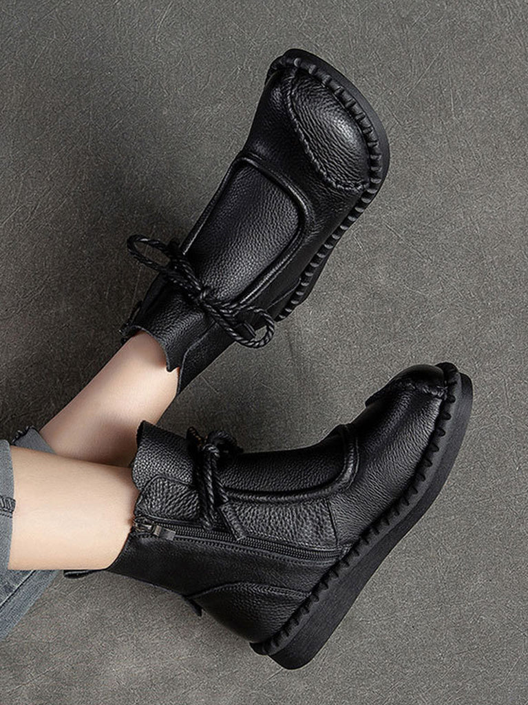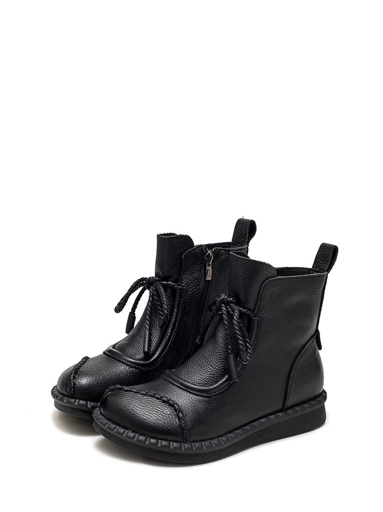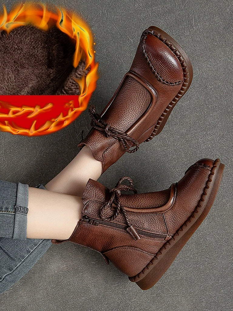 Women Winter Retro Leather Spliced Ankle Boots