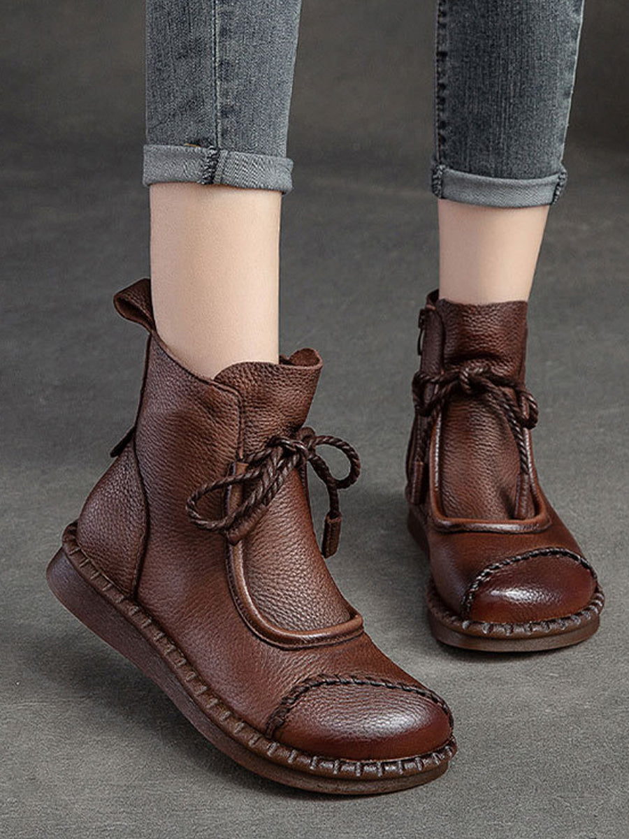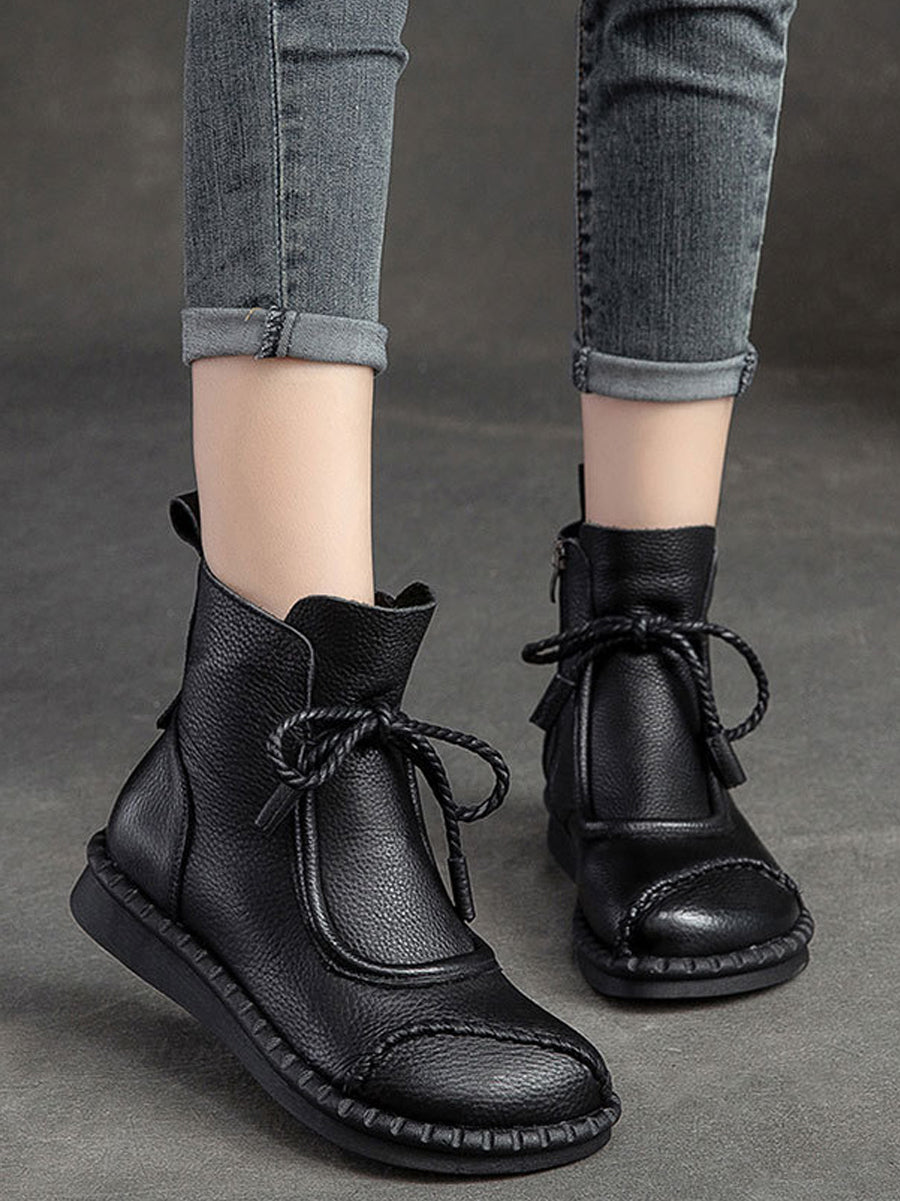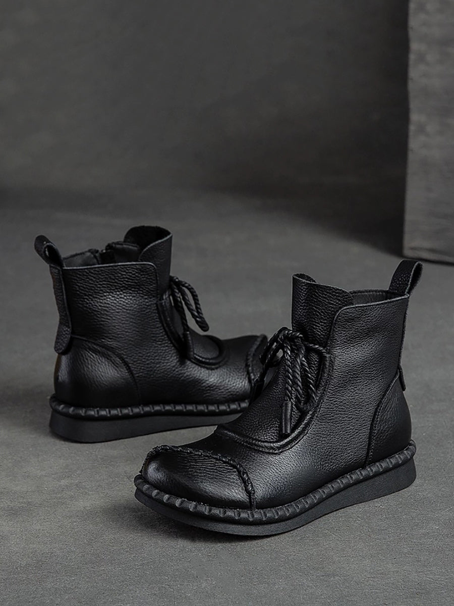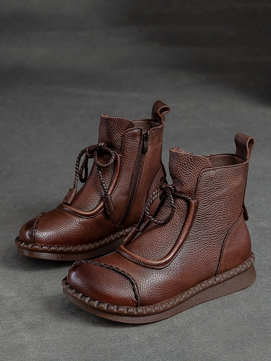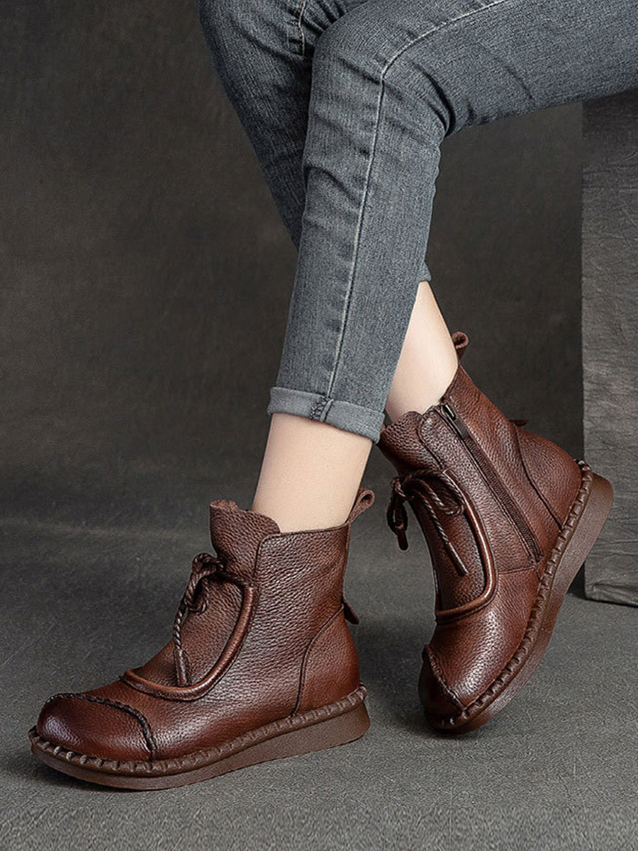 Women Winter Retro Leather Spliced Ankle Boots