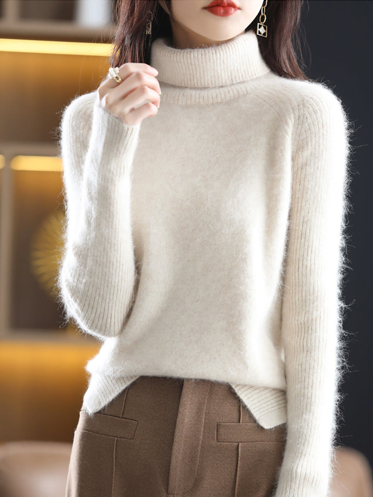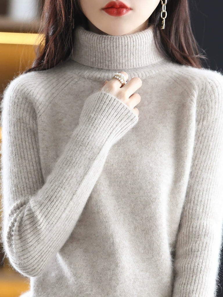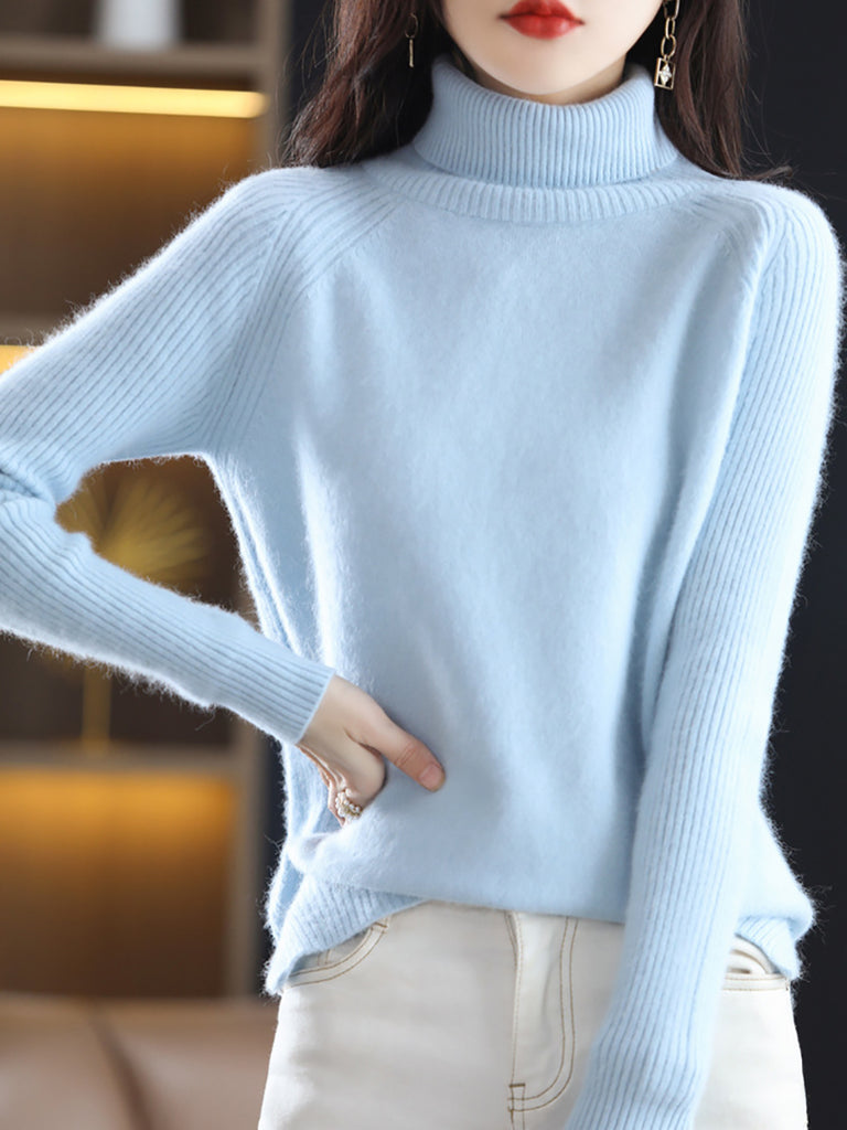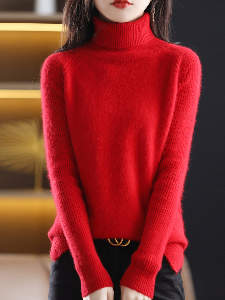 Women Winter Pure Color Turtleneck Sweater