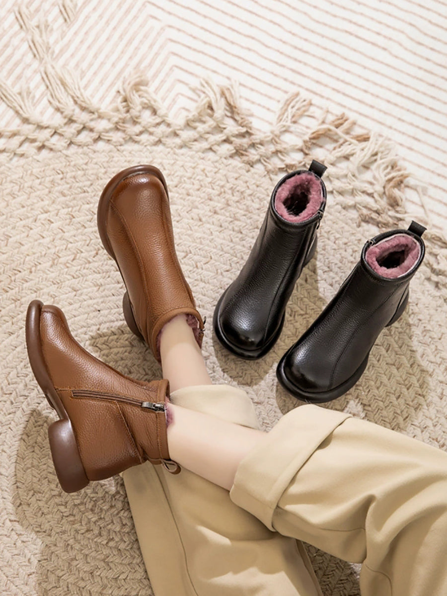 Women Winter Pure Color Fleece-lined Ankle Boots