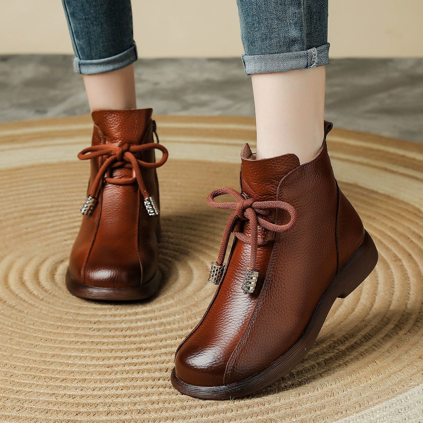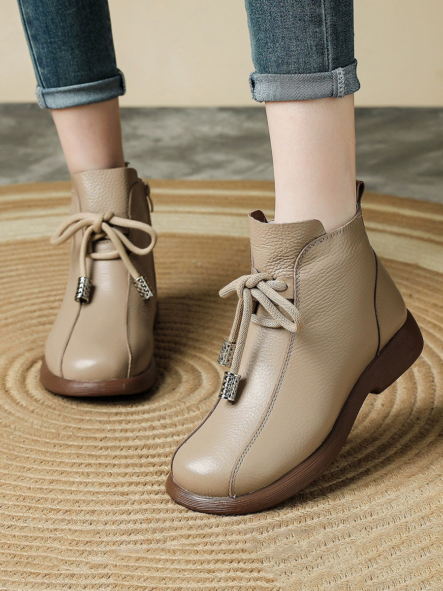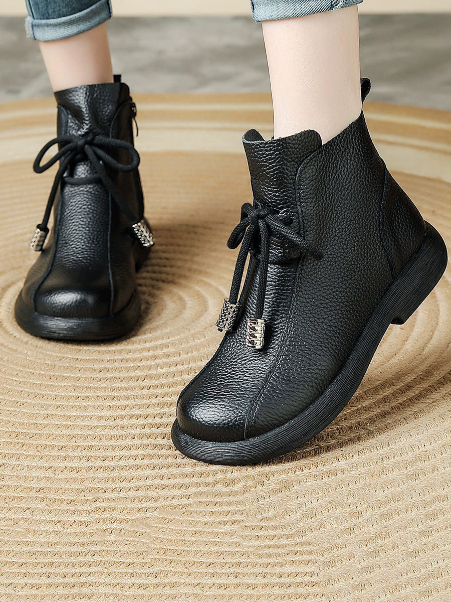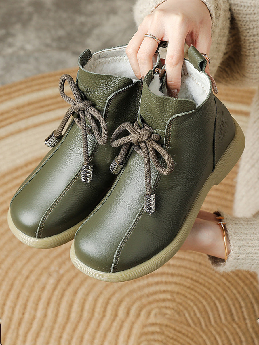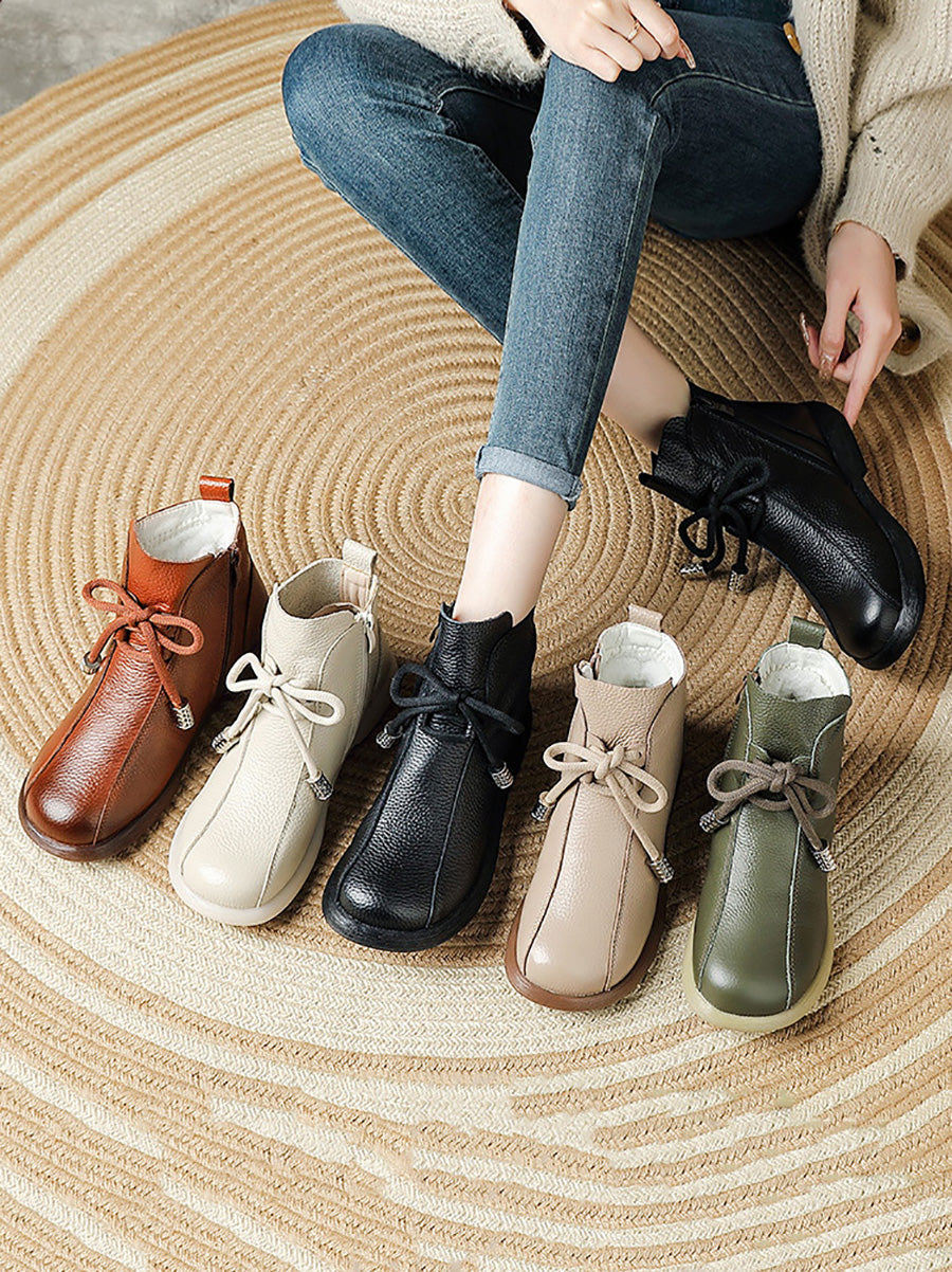 Women Retro Winter Genuine Leather Low Heel Ankle Boots