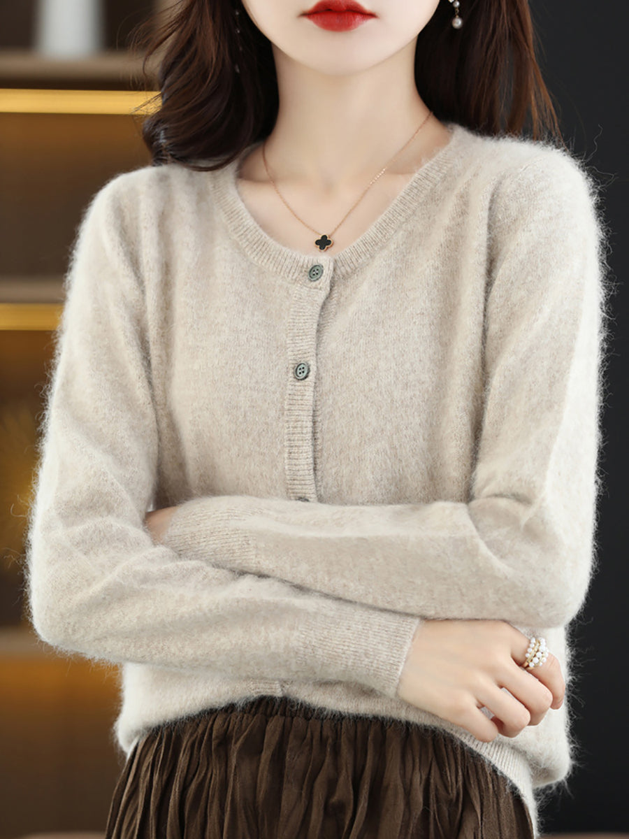 Women Autumn Artsy Pure Color O-Neck Cardigan Sweater