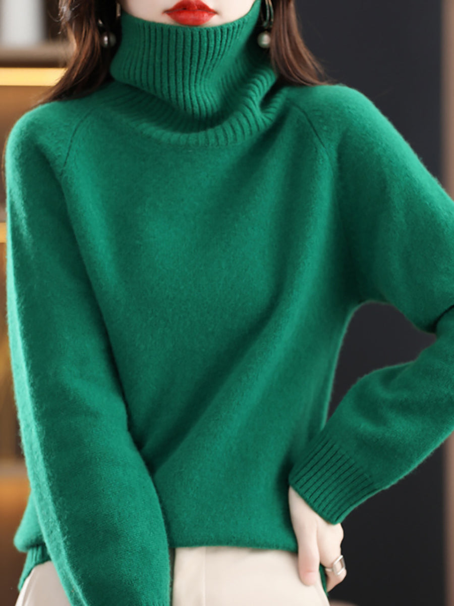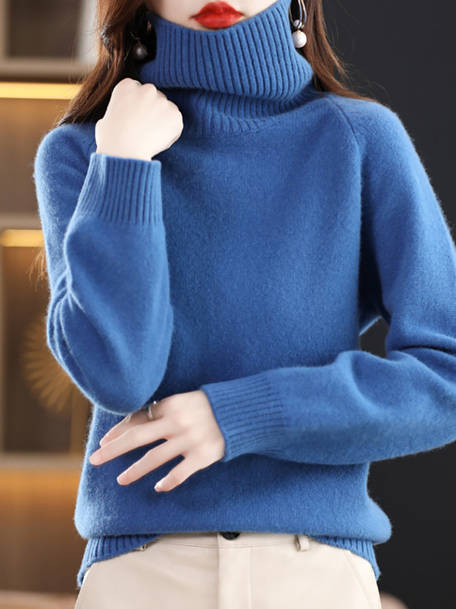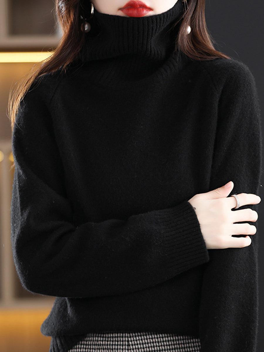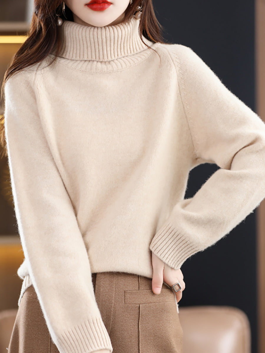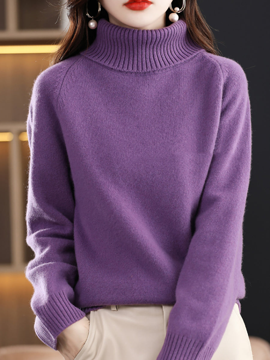 Women Autumn Artsy Pure Color Turtleneck Sweater