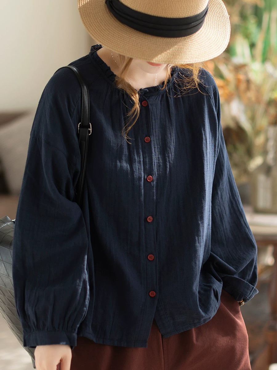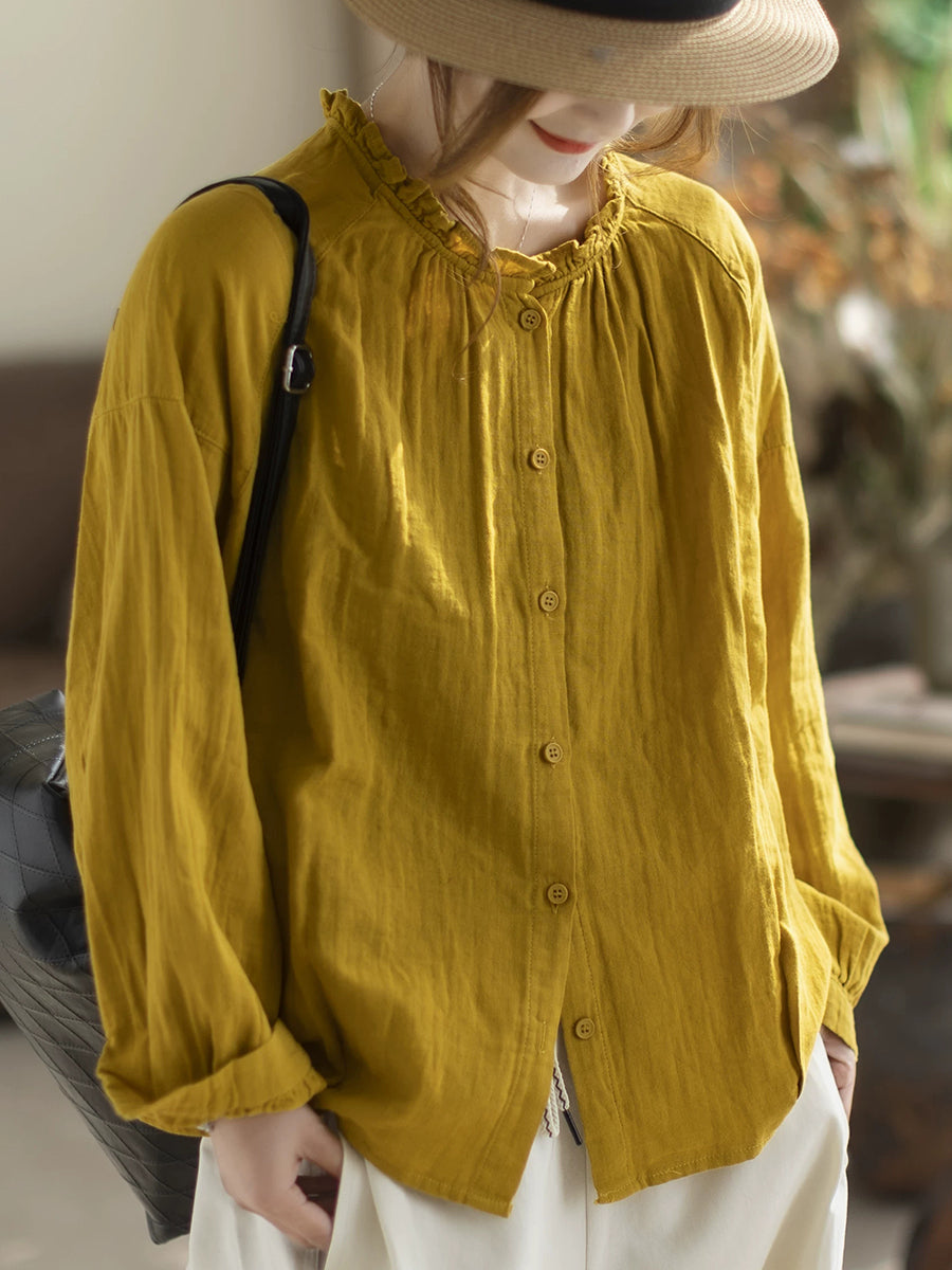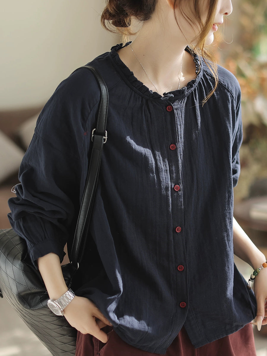 Women Spring Artsy Pure Color Blouse