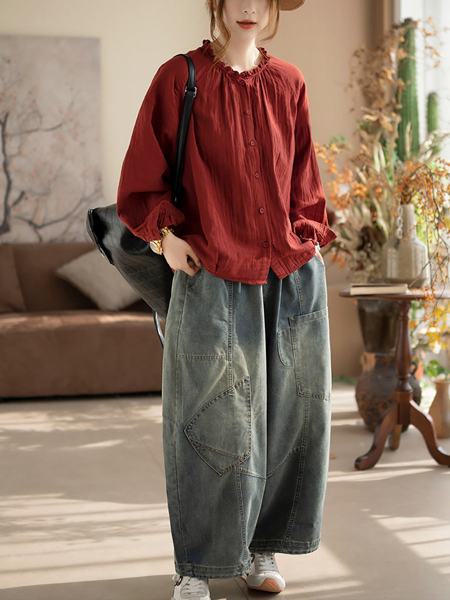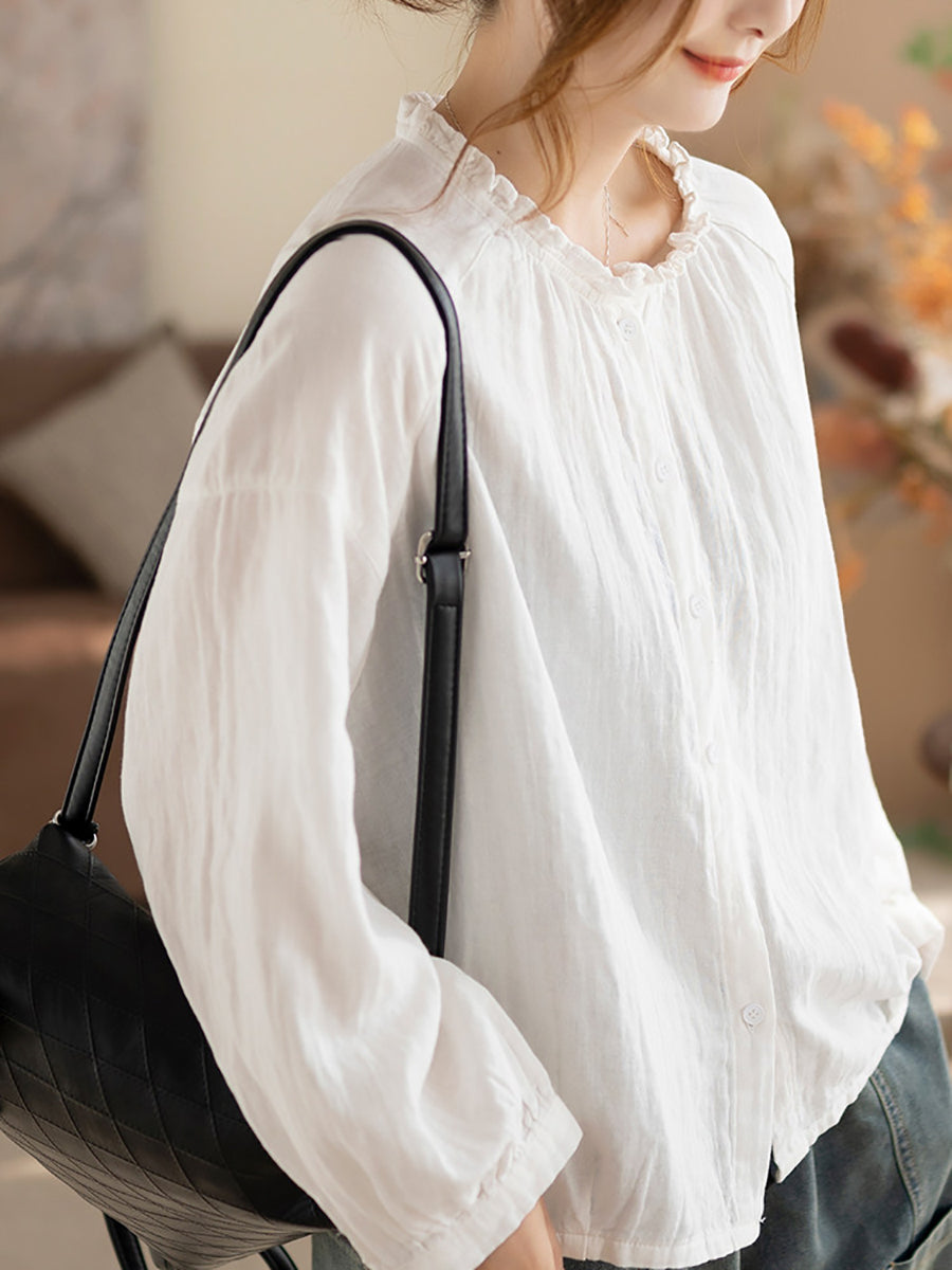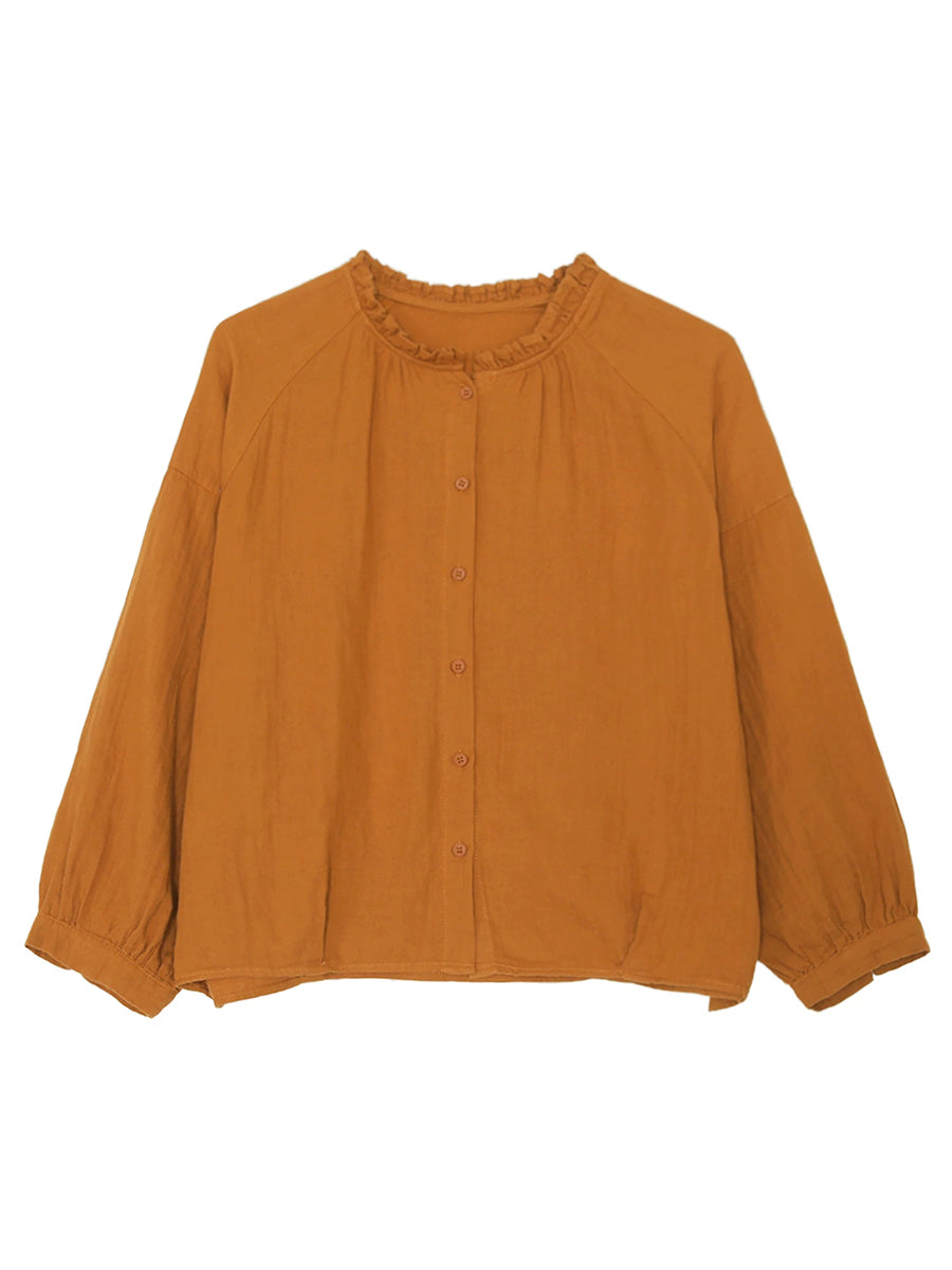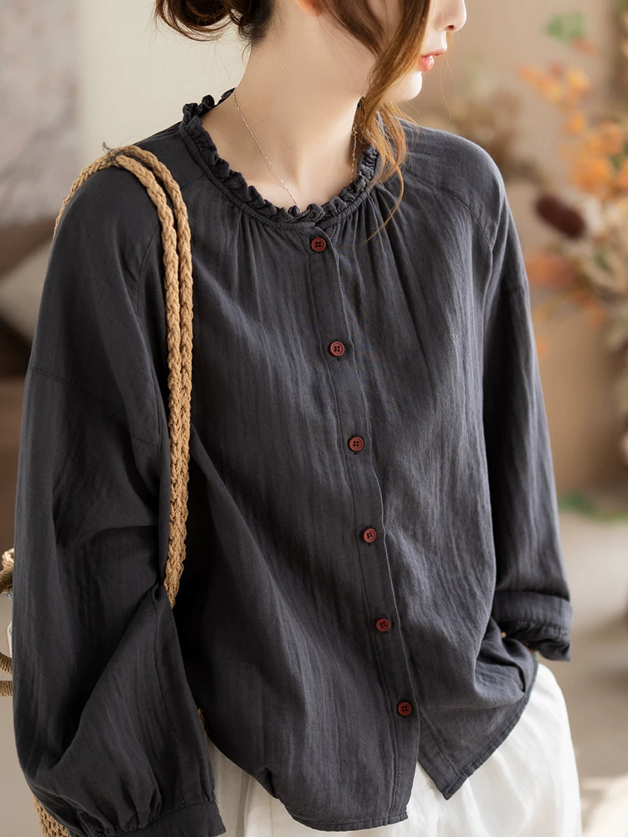 Women Spring Artsy Pure Color Blouse