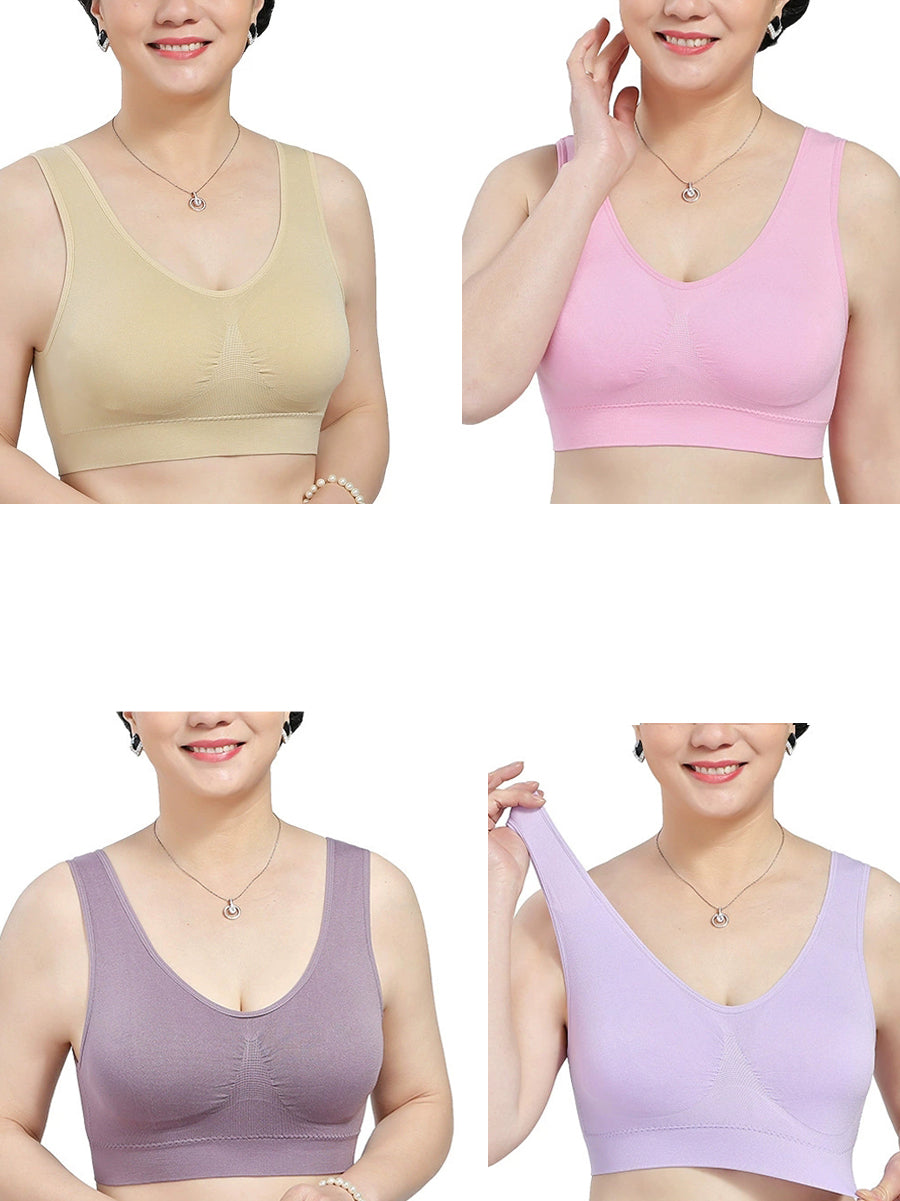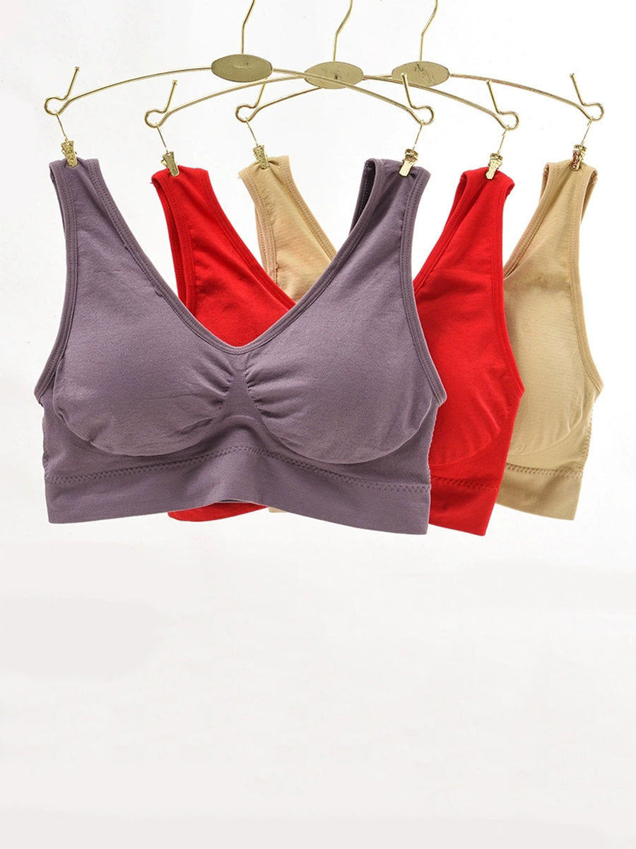 4 Pieces Women Casual Pure Color One-piece Wireless Bra
