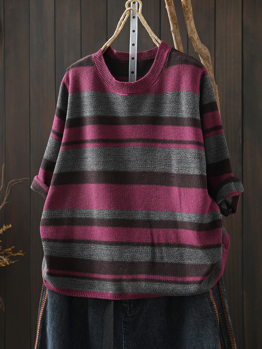 Women Summer Artsy Stripe Knitted O-Neck Blouse