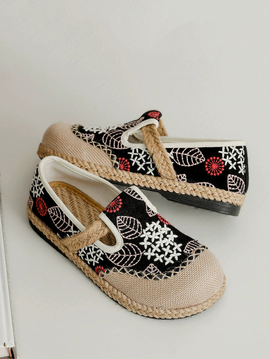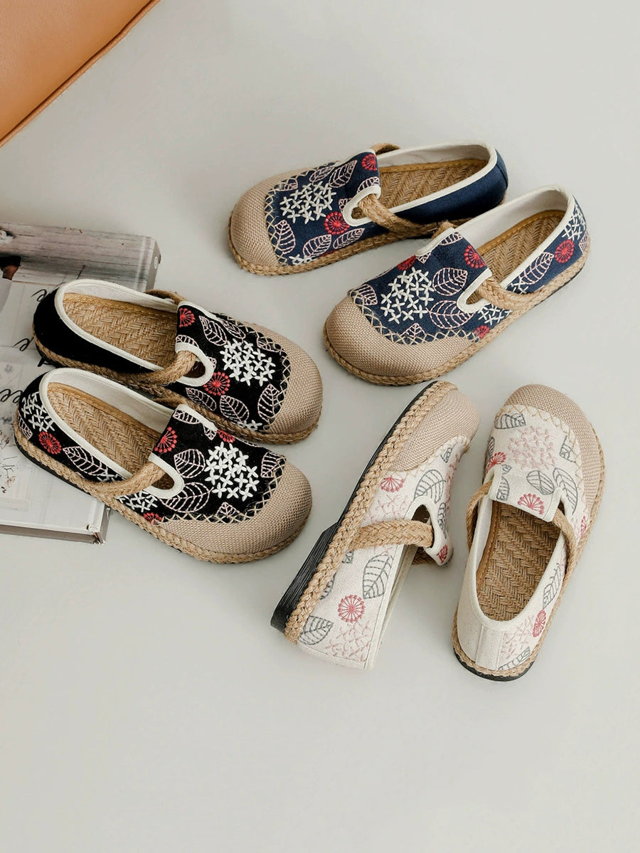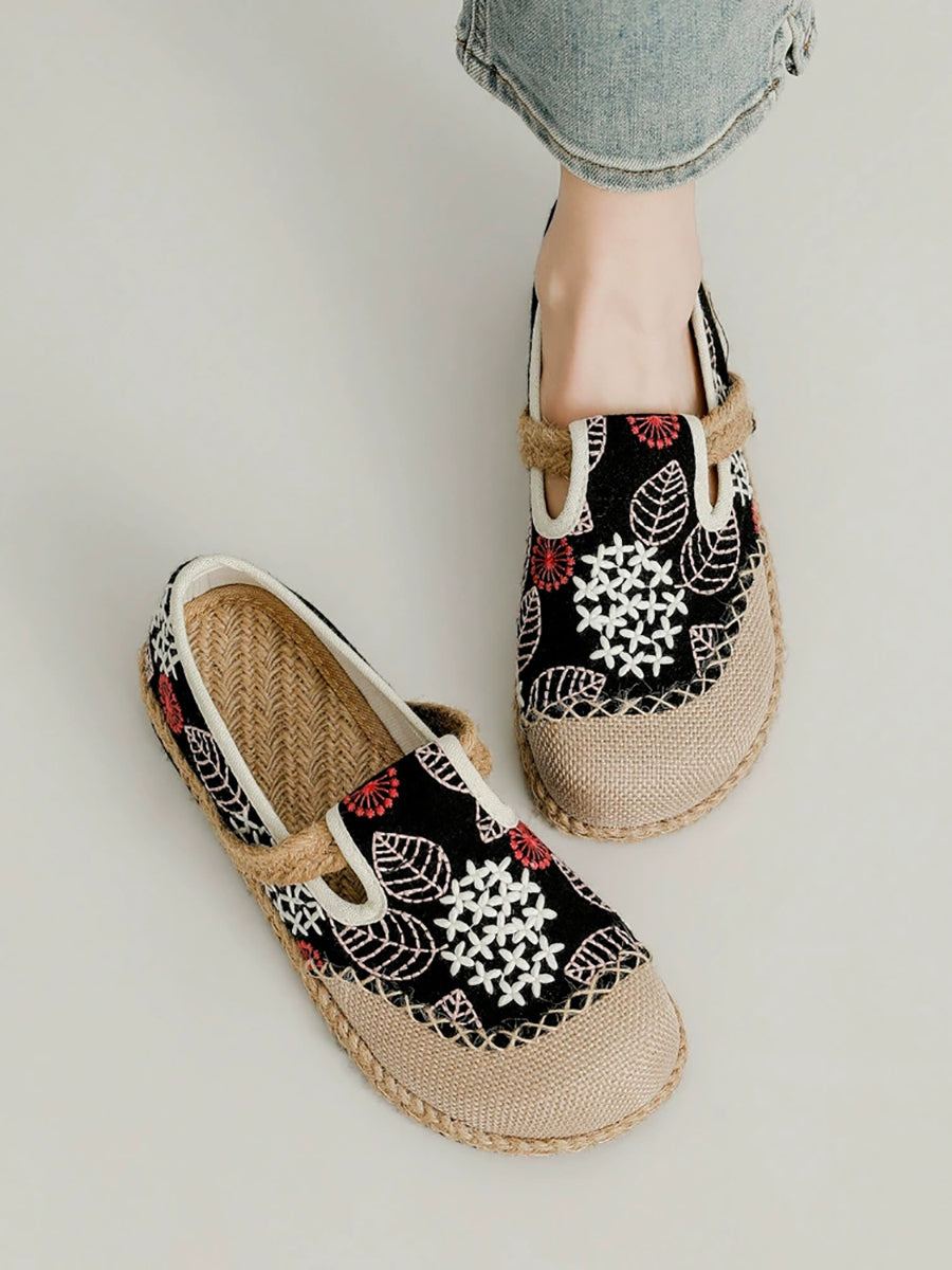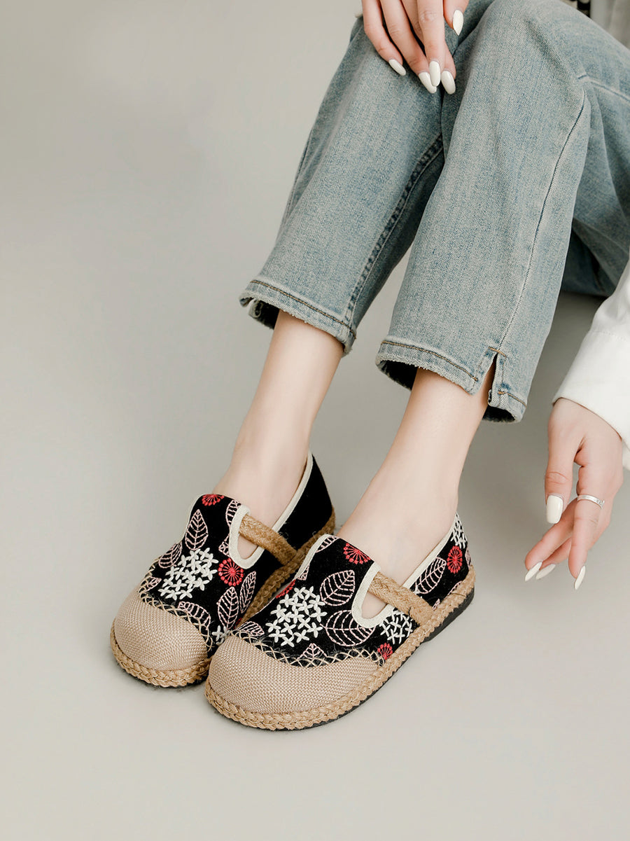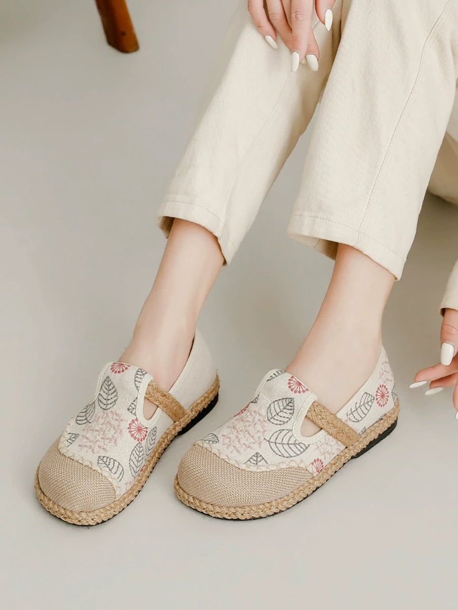 Women Spring Embroidery Canvas Linen Flat Shoes