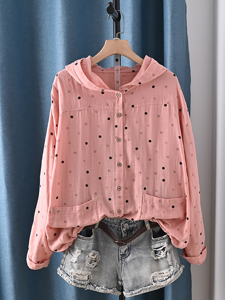 Women Summer Artsy Dot 100%Cotton Hoodie