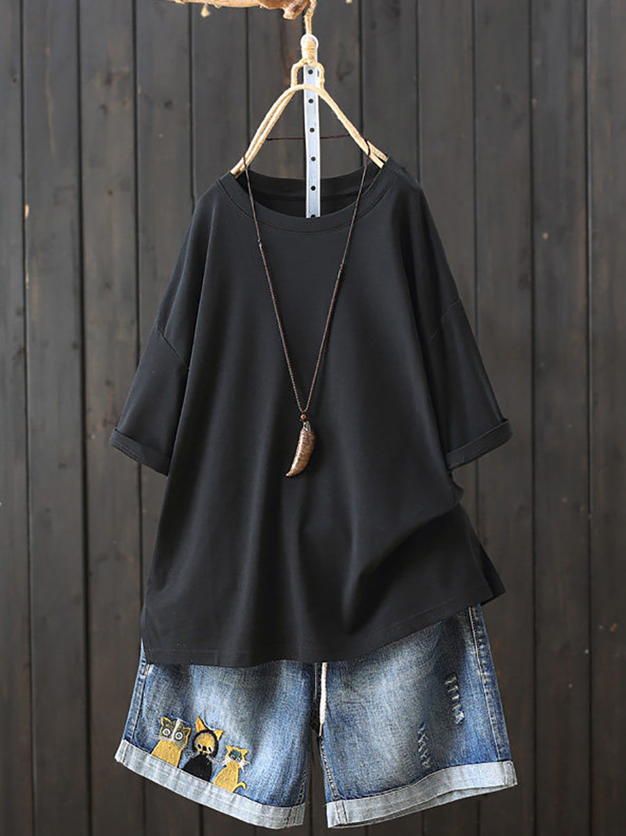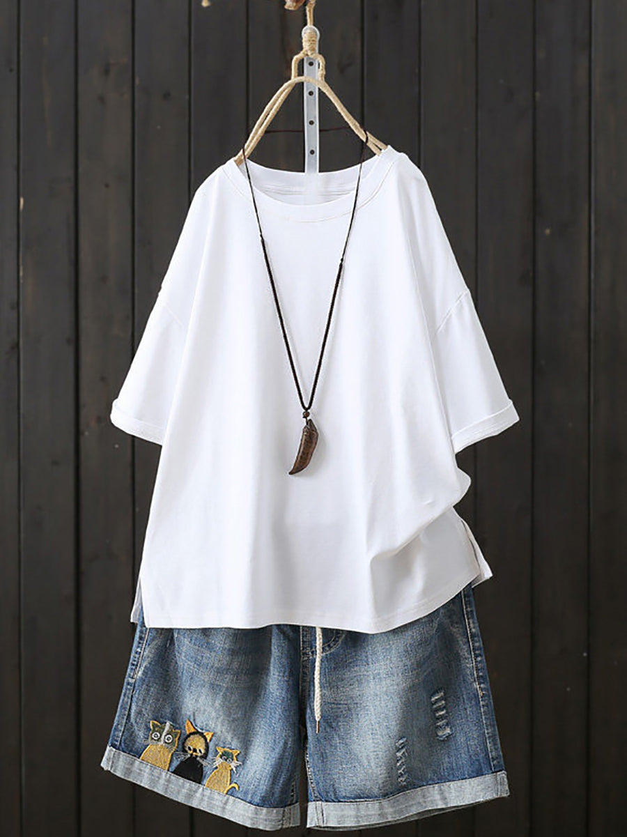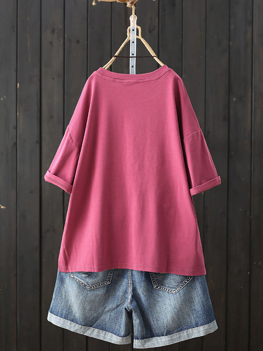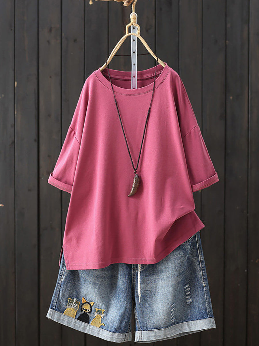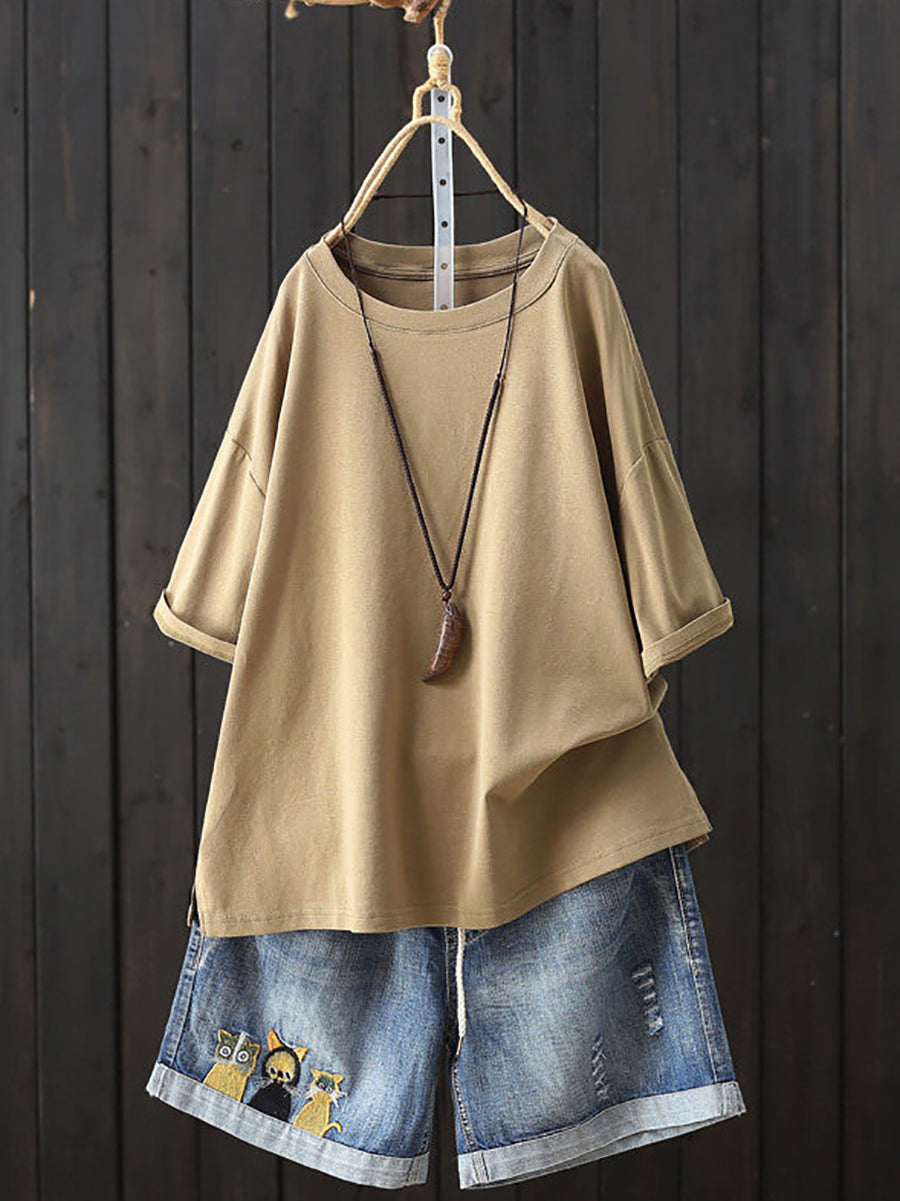 Women Summer Casual Pure Color O-Neck T-Shirt