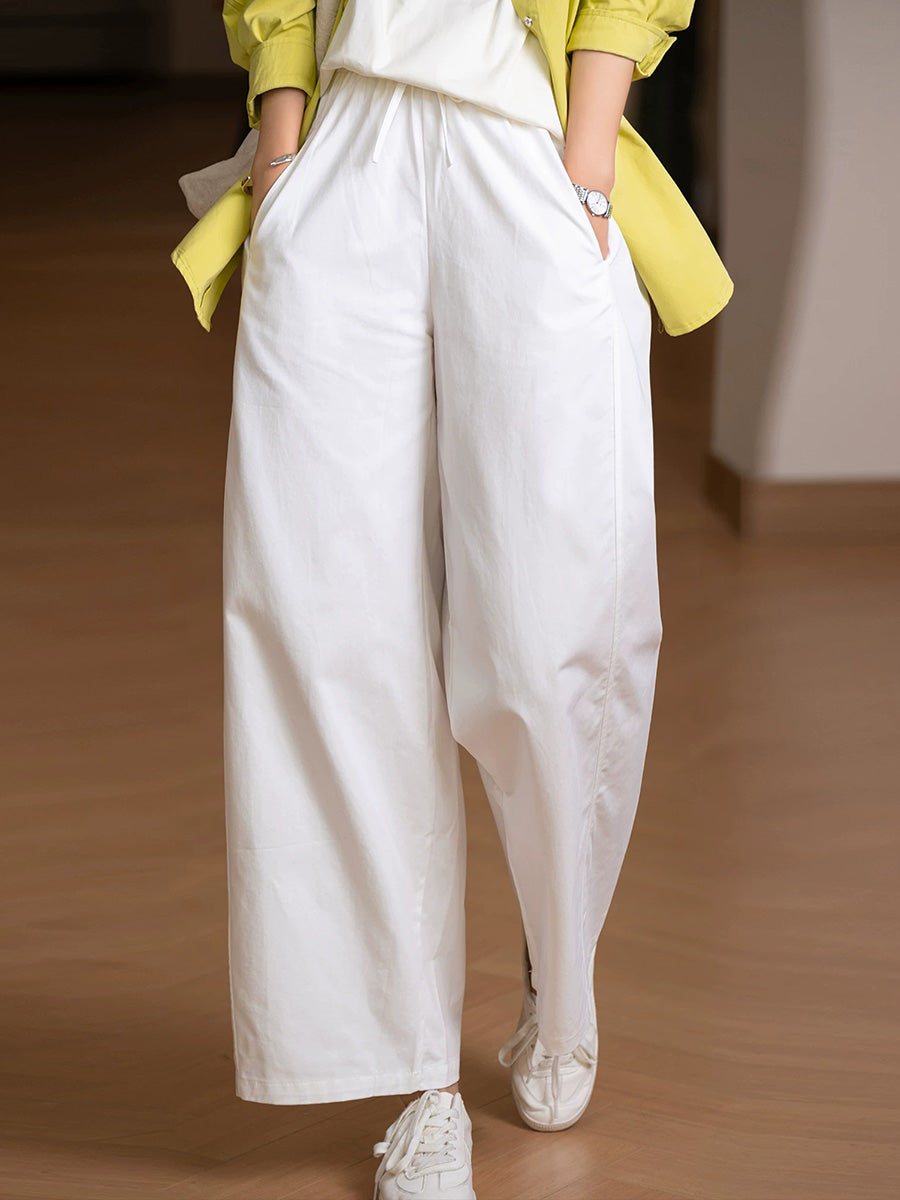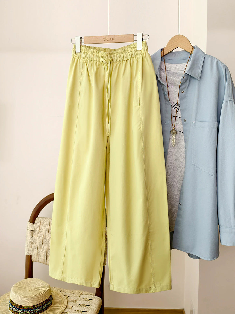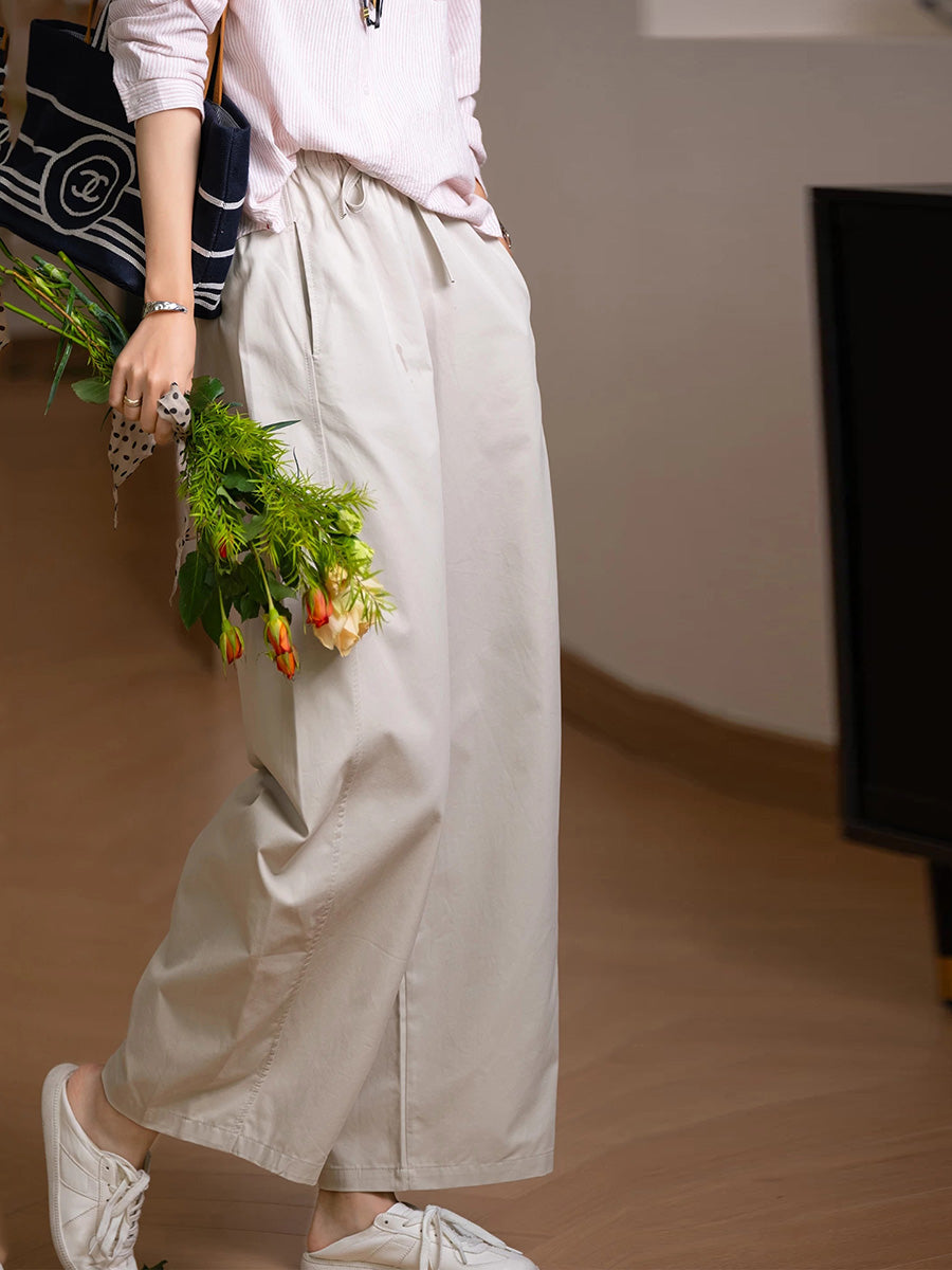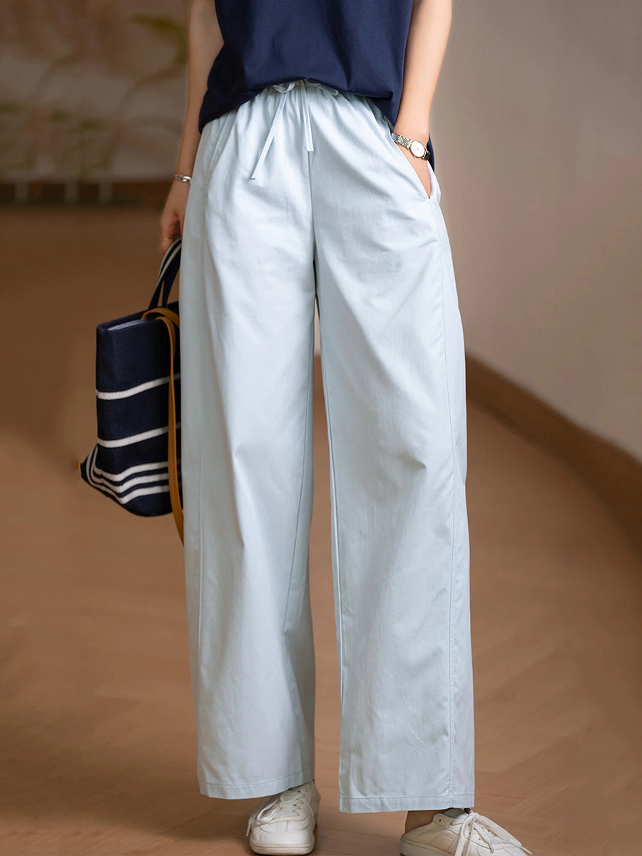 Women Summer Casual Pure Color 100%Cotton Straight Pants