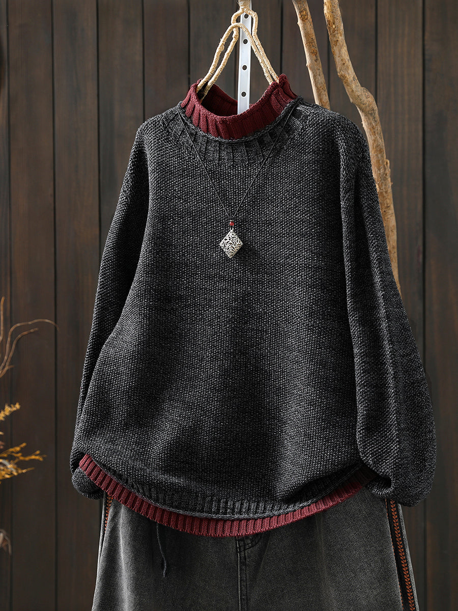 Women Autumn Artsy Colorblock Half-Turtleneck Sweater