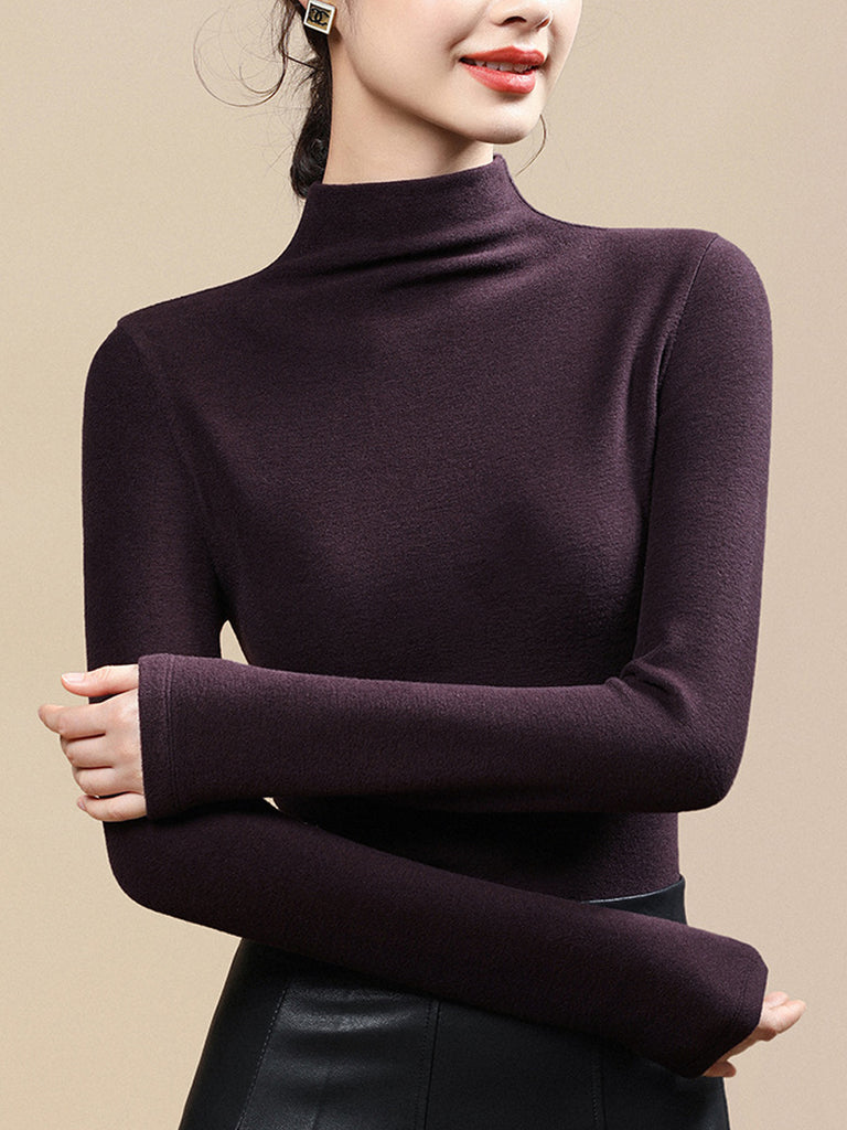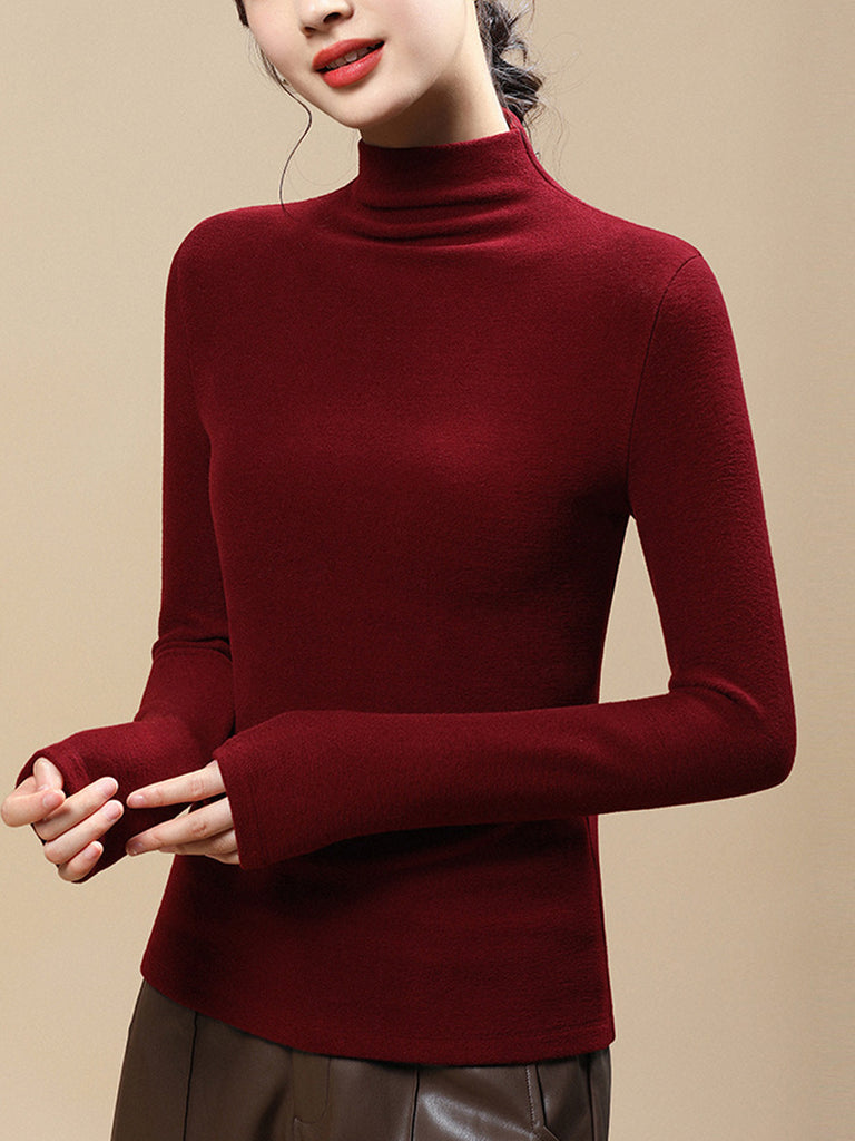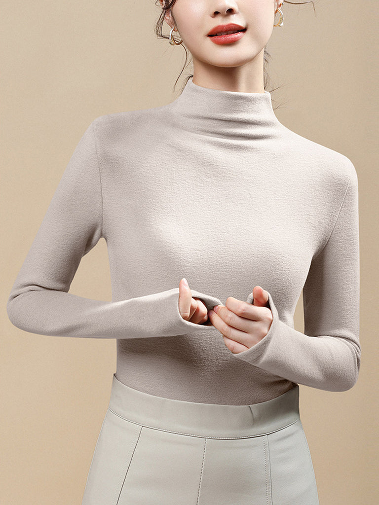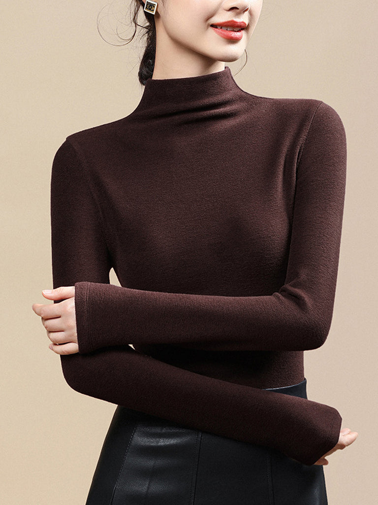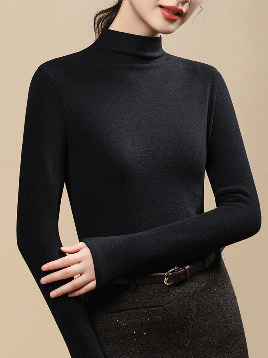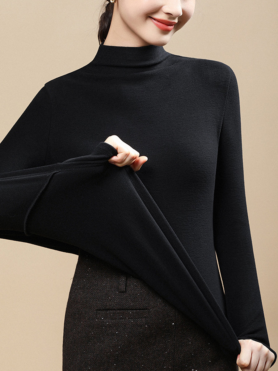 Women Casual Autumn Pure Color Half-Turtleneck Blouse