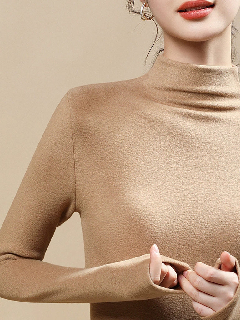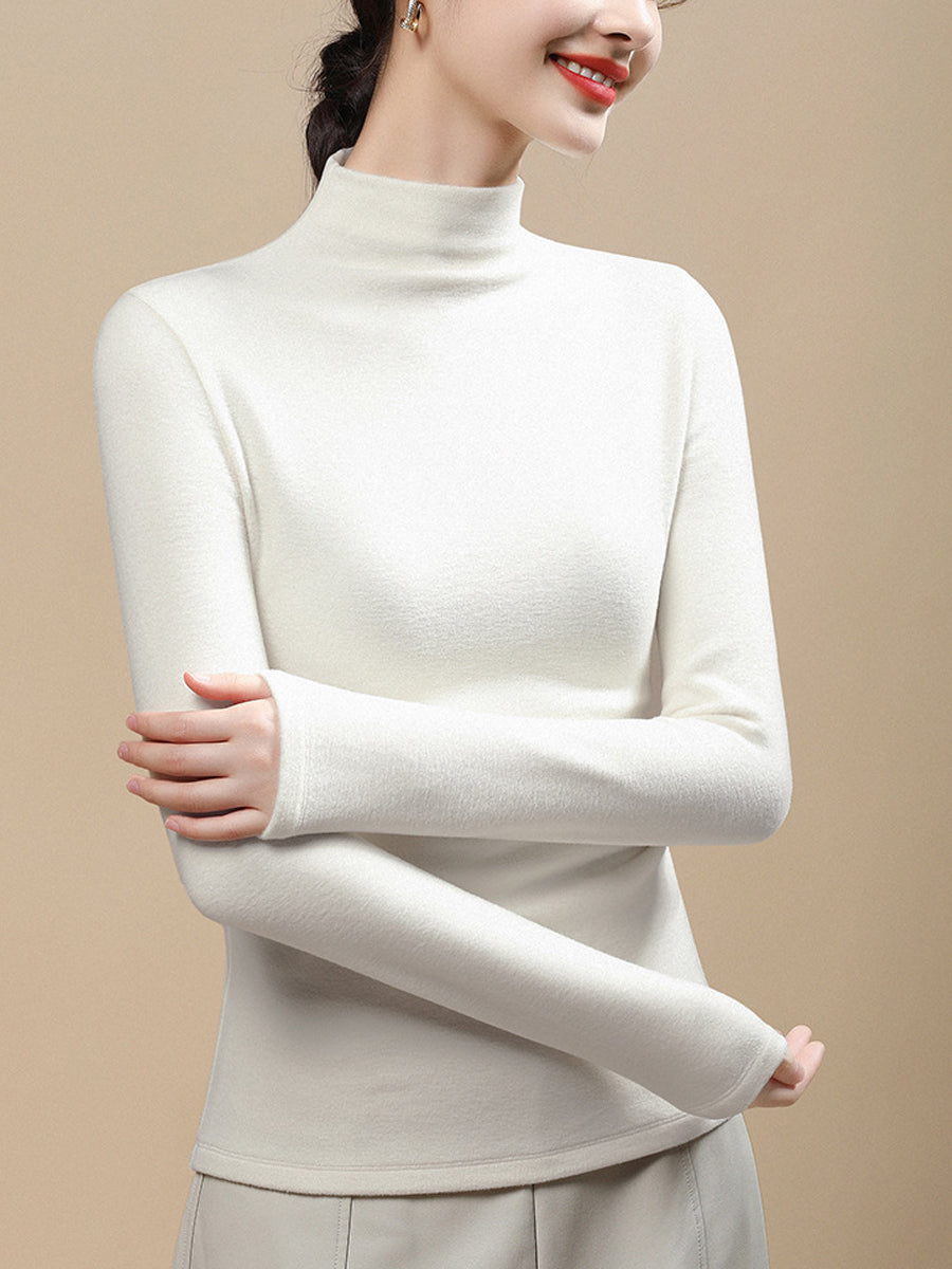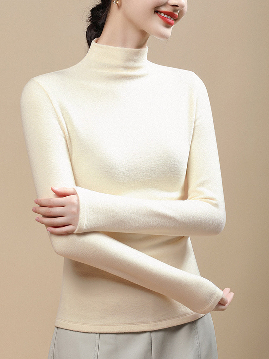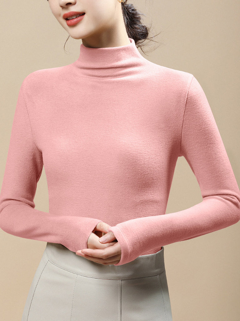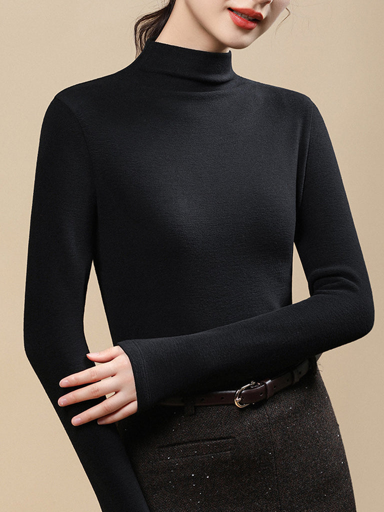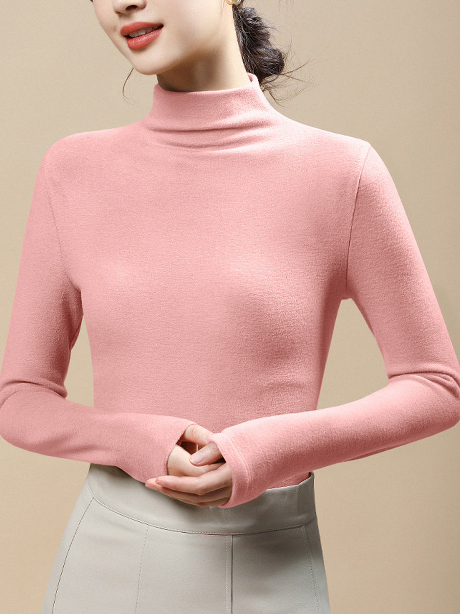 Women Casual Autumn Pure Color Half-Turtleneck Blouse
