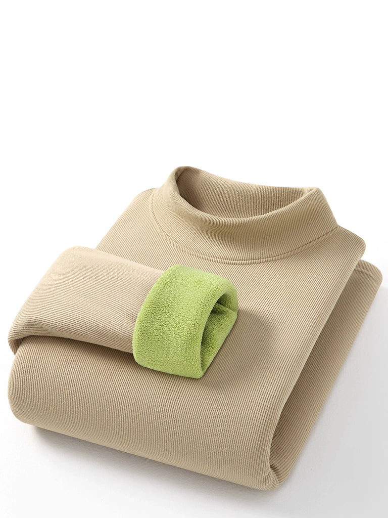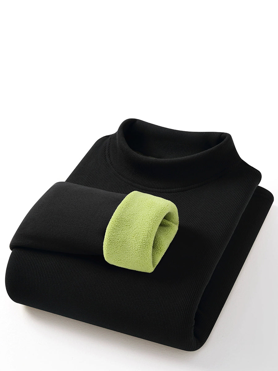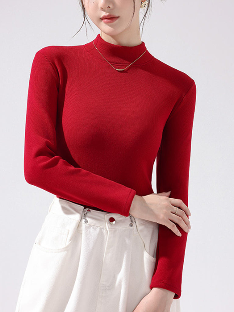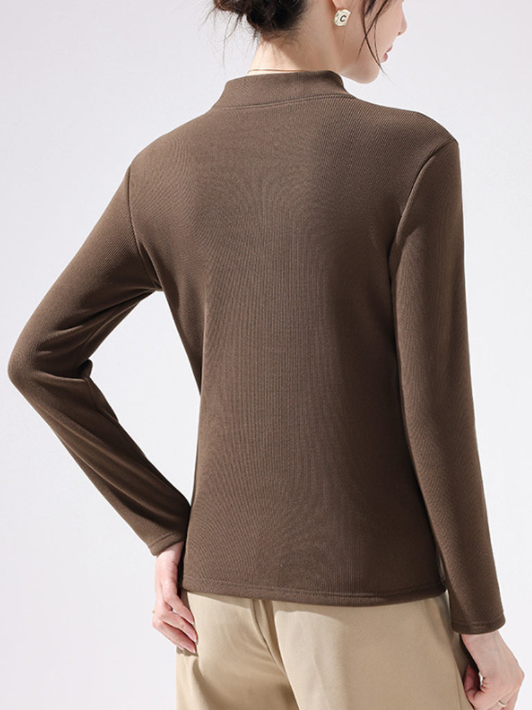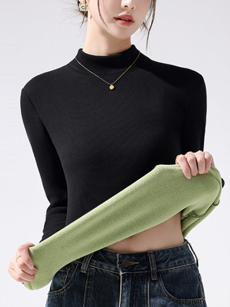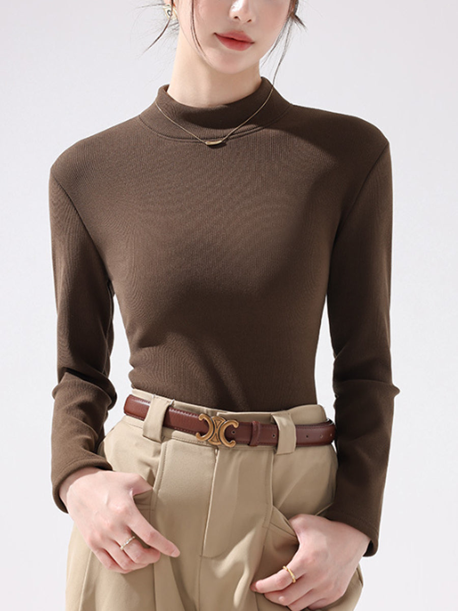Women Autumn Pure Color Fleece-lined Half-Turtleneck Blouse