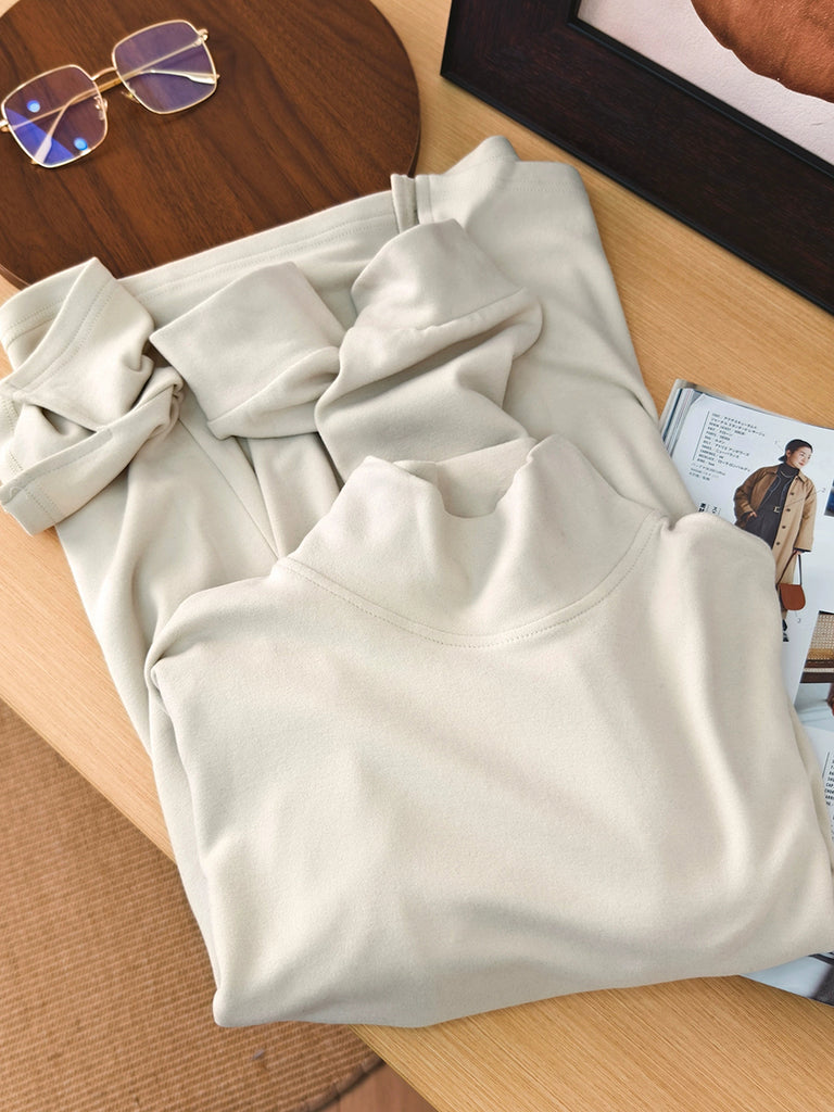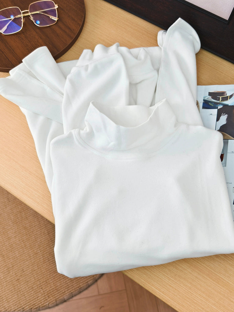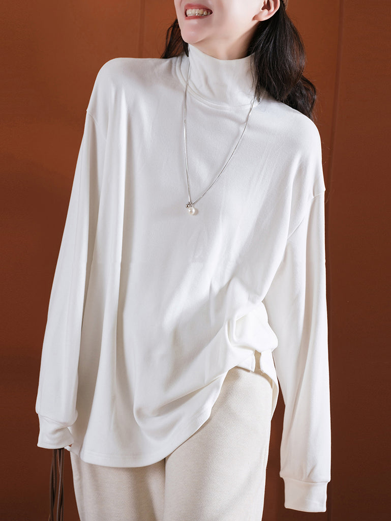 Women Casual Autumn Pure Color Turtleneck Blouse