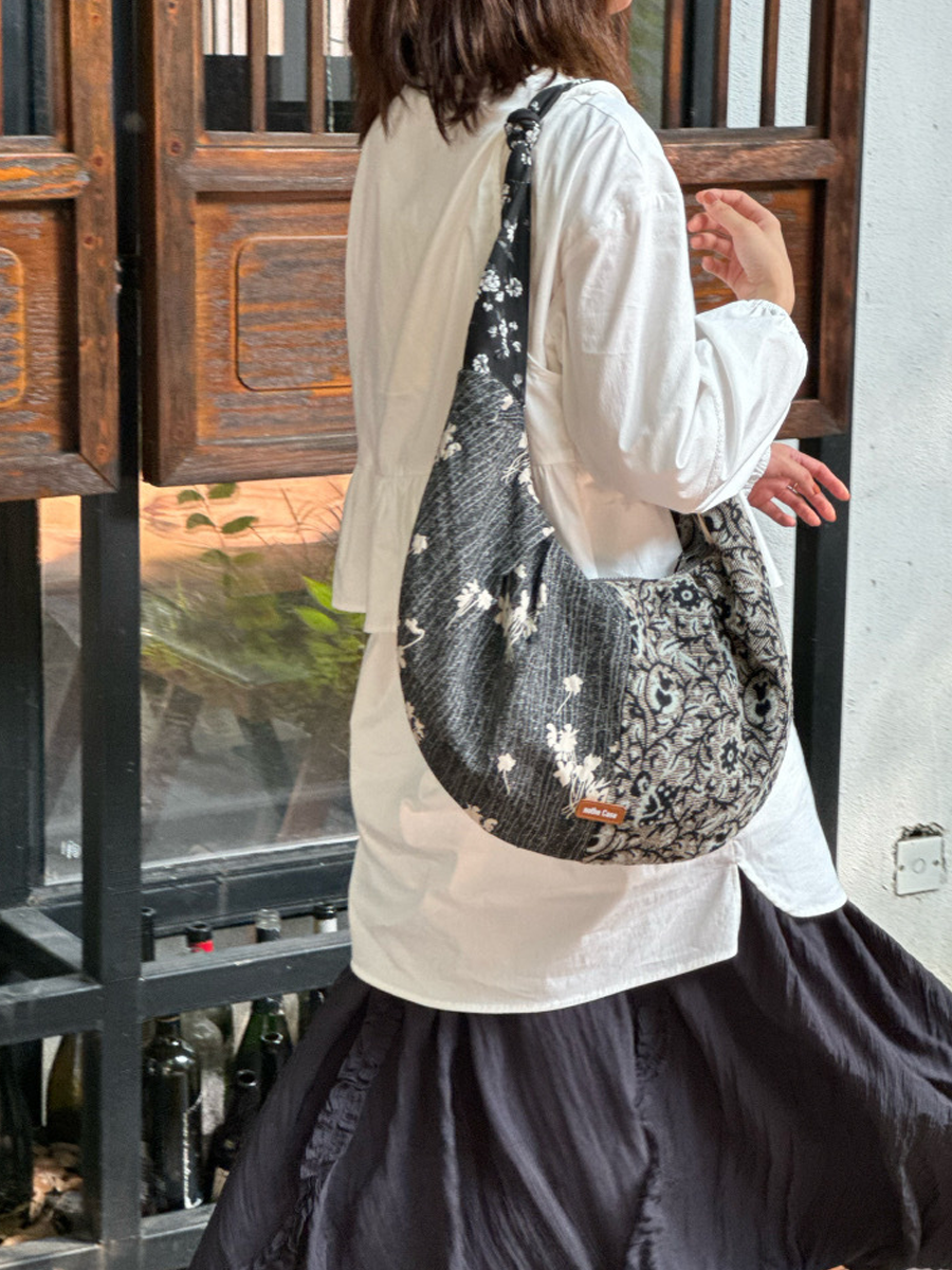 Retro Floral Jacquard Spliced Croissant Shoulder Bag