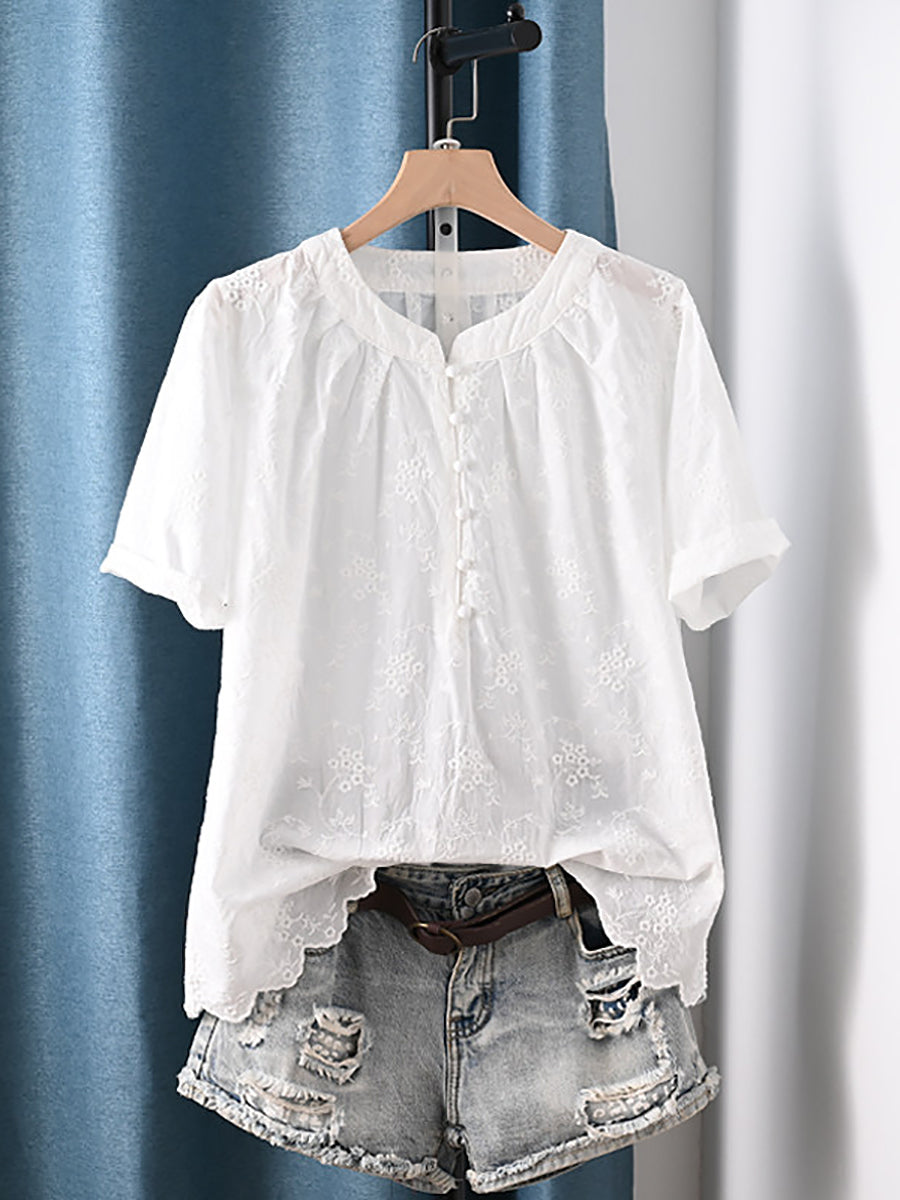 Women Summer Artsy Embroidery 100%Cotton Blouse