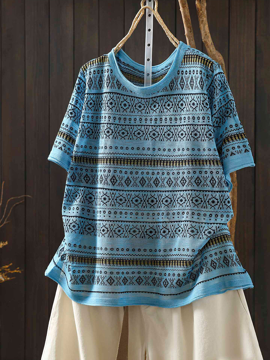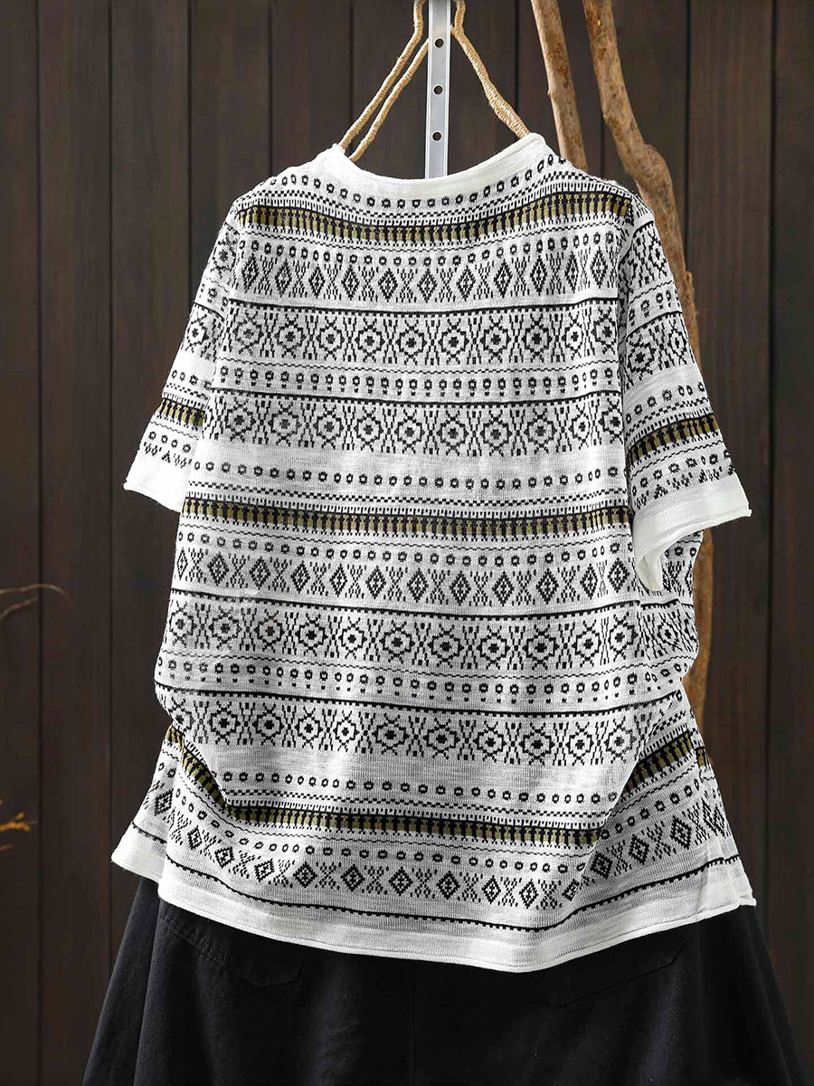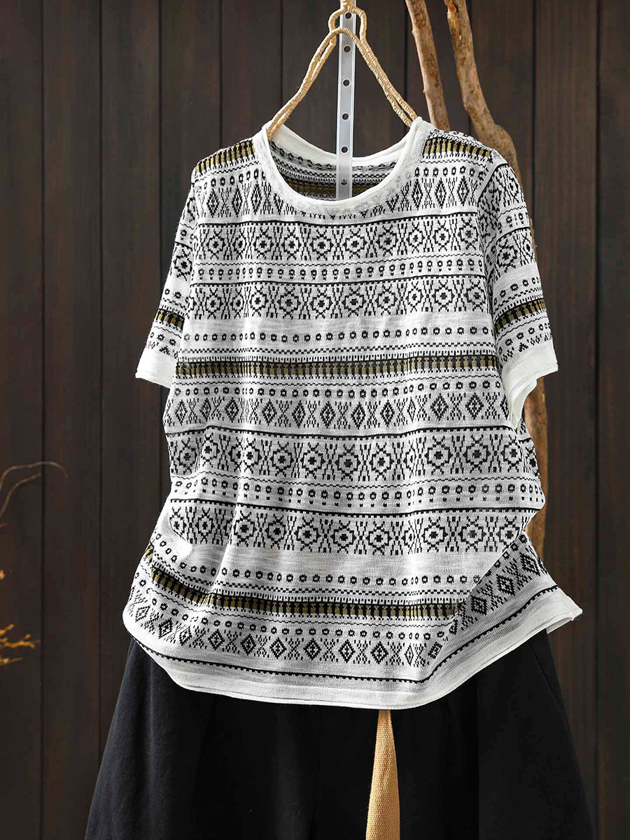 Women Summer Artsy Jacquard O-Neck T-Shirt